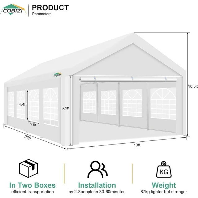 COBIZI 13x26 Heavy Duty Canopy Tent, Party Wedding Tent with Removable Sidewalls, 100% Waterproof
