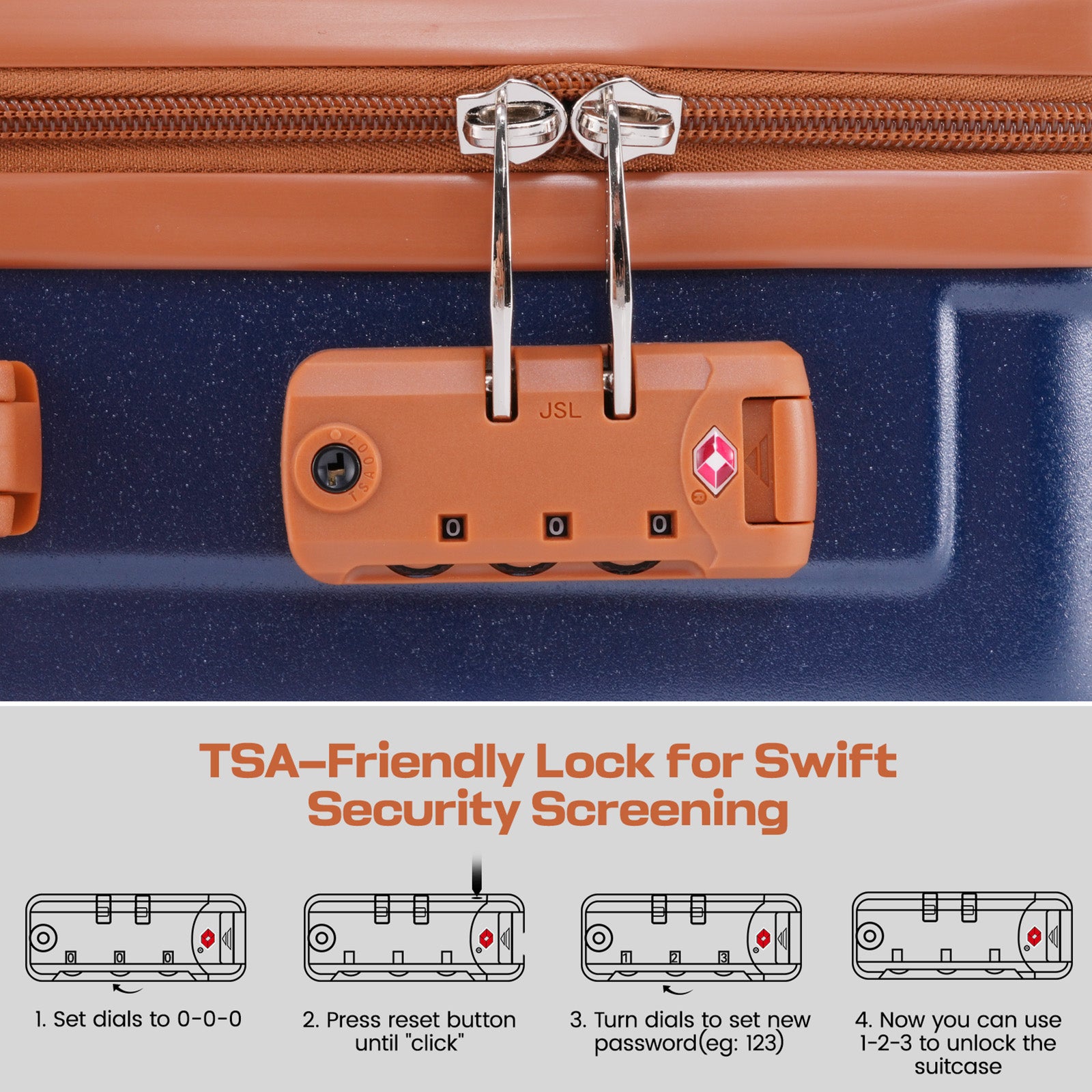 • Organized Interior (TSA Approved): The 3-piece luggage sets updated to a U-shaped mesh pocket for simple organization; plus a full-zip divider, mesh zip pocket, and elastic compression straps. TSA-approved combination lock for hassle-free screening.