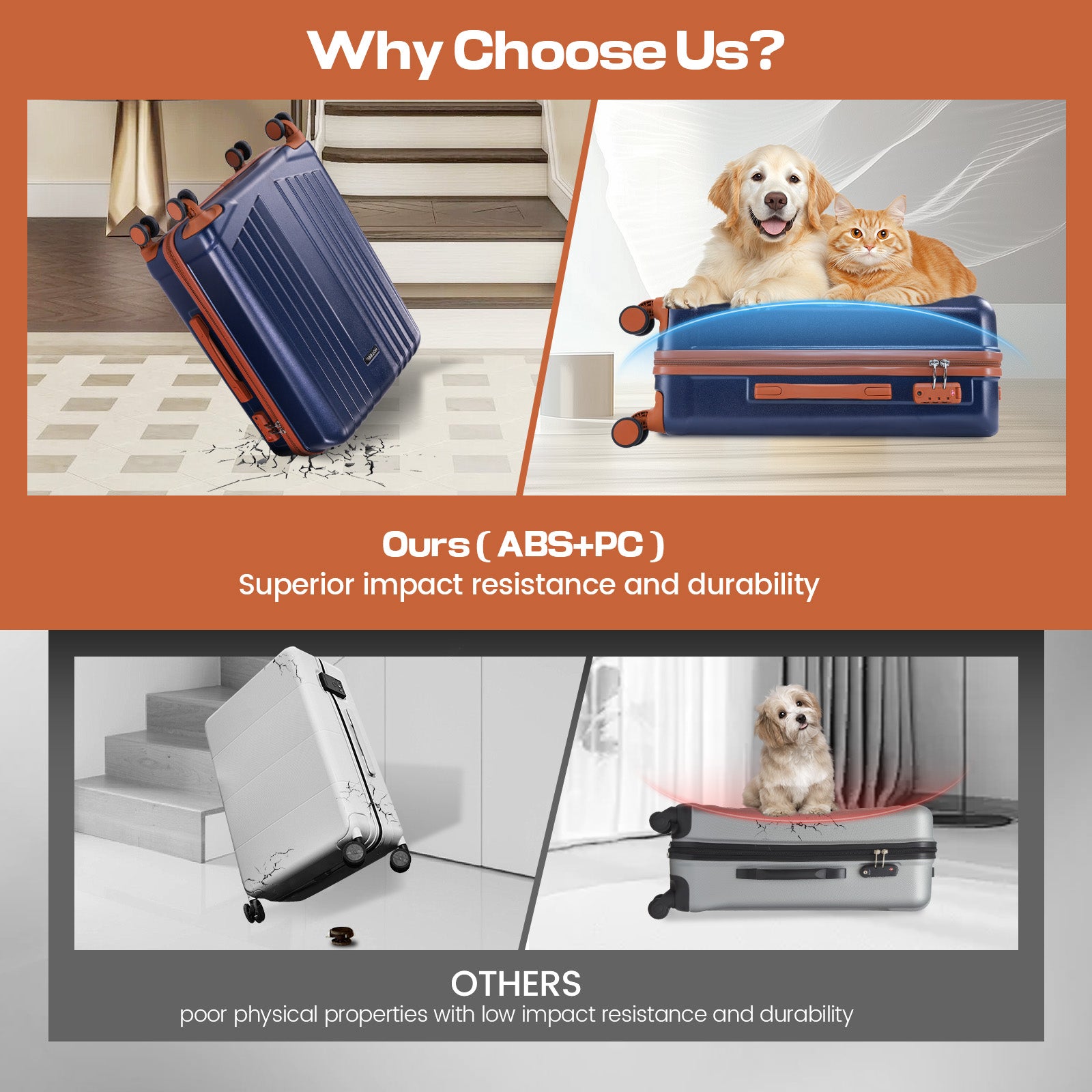 • ABS+PC Hardshell Luggage: Balanced blend delivers solid impact resistance with improved crack/scratch durability over ABS while staying lightweight. Textured finish helps hide scuffs for a cleaner look trip after trip.