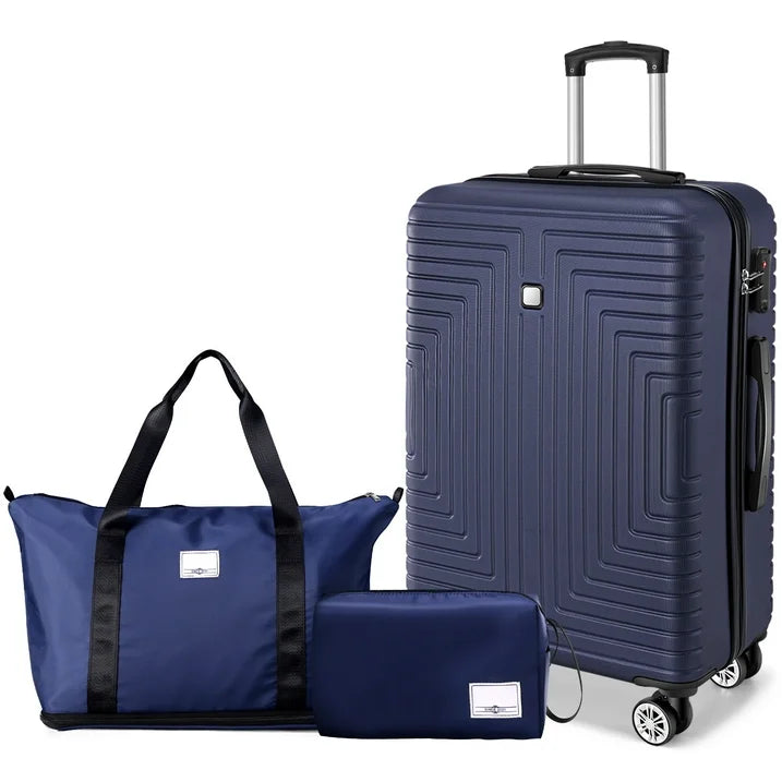 - 1.Three Piece Set Luggage: 28 IN large luggage is the L size for luggages. The suitcase is 3 piece set which include 1pcs 28 inch luggage,1pcs travel bag and 1pcs toiletry bag.