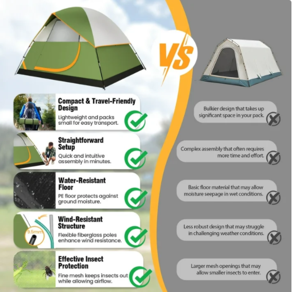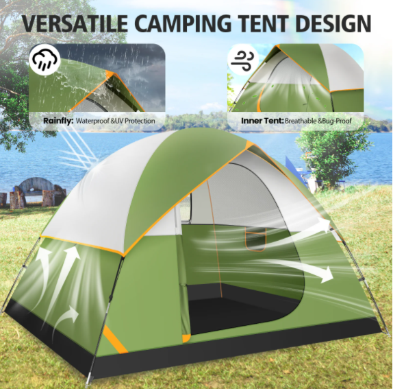 Breathe Easy with Smart Ventilation: Enjoy the outdoors without feeling stuffy. Our camping tent with high-quality mesh windows provide excellent airflow while keeping bugs out. Wake up to stunning views and fresh air, making every camping trip a breath of fresh air.
