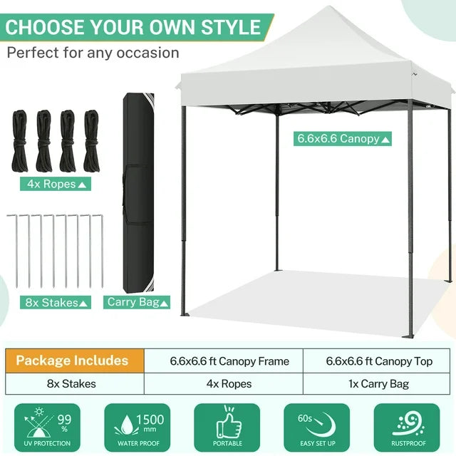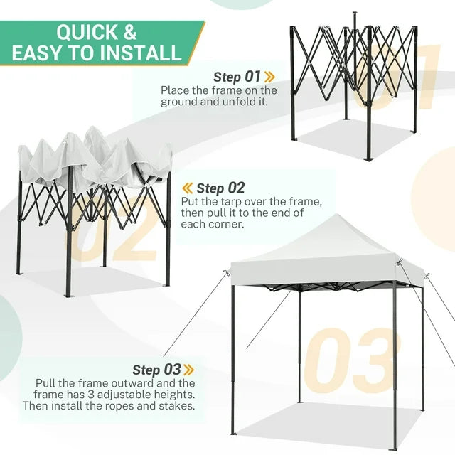 - 【EZ Set up and Adjustable Height】 Pop-up design makes the canopy easy to set up. You can set up it in minutes by only one person.The outdoor canopy provides 3 adjustable heights, 6.9ft/7.2ft/7.5ft. You can adjust the height of the gazebo according to your needs.
