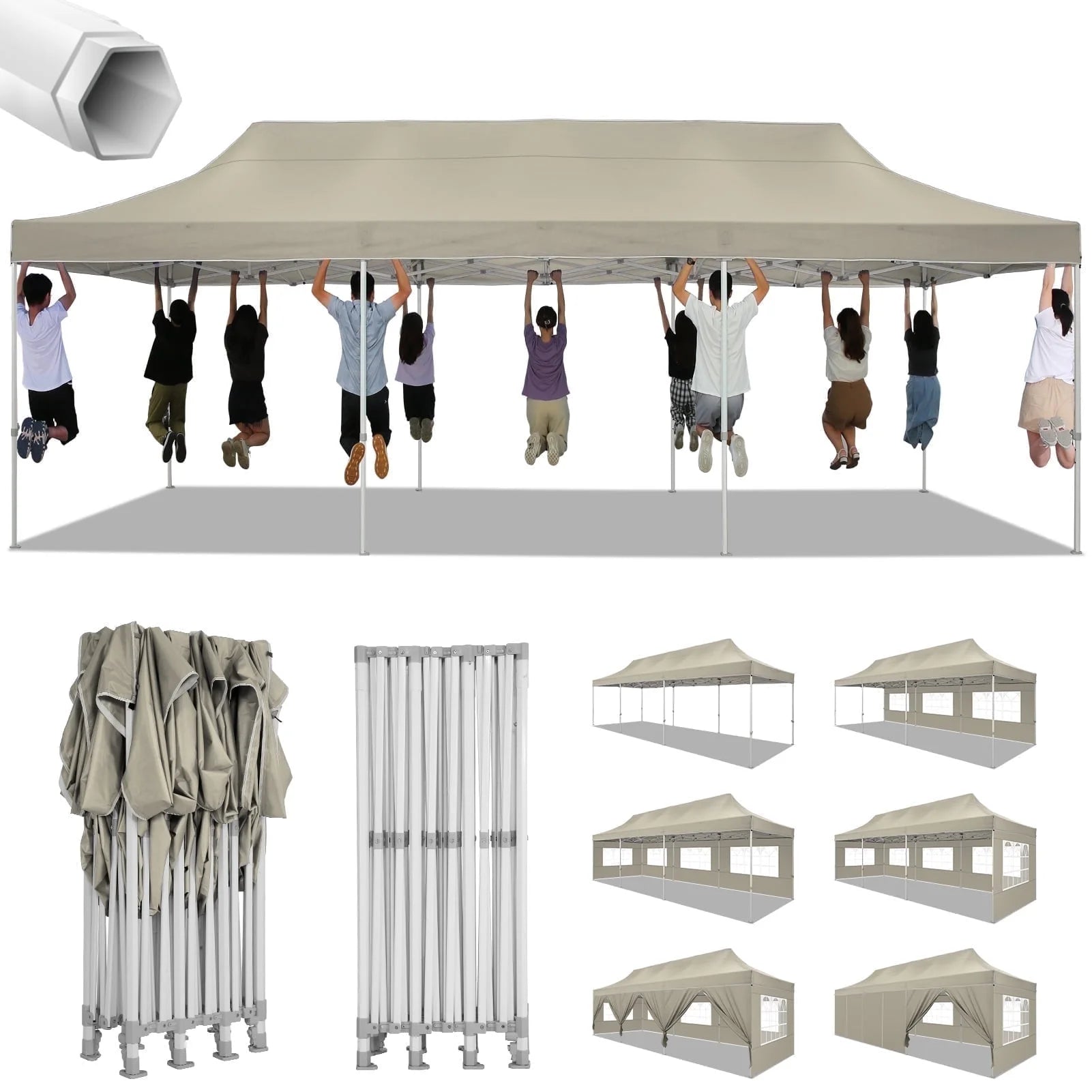 【Upgrade Thick Hexagonal Pipe Heavy Duty Canopy Frame】 COBIZI 10x30 canopy tent with walls is made of a commercial-grade full truss from powder-coated stainless steel, durable and rustproof. Upgrade hexagonal pipe, more stable than square pipe.COBIZI 10x30 pop up tent can withstand up to level 5 wind/28-38 mph.