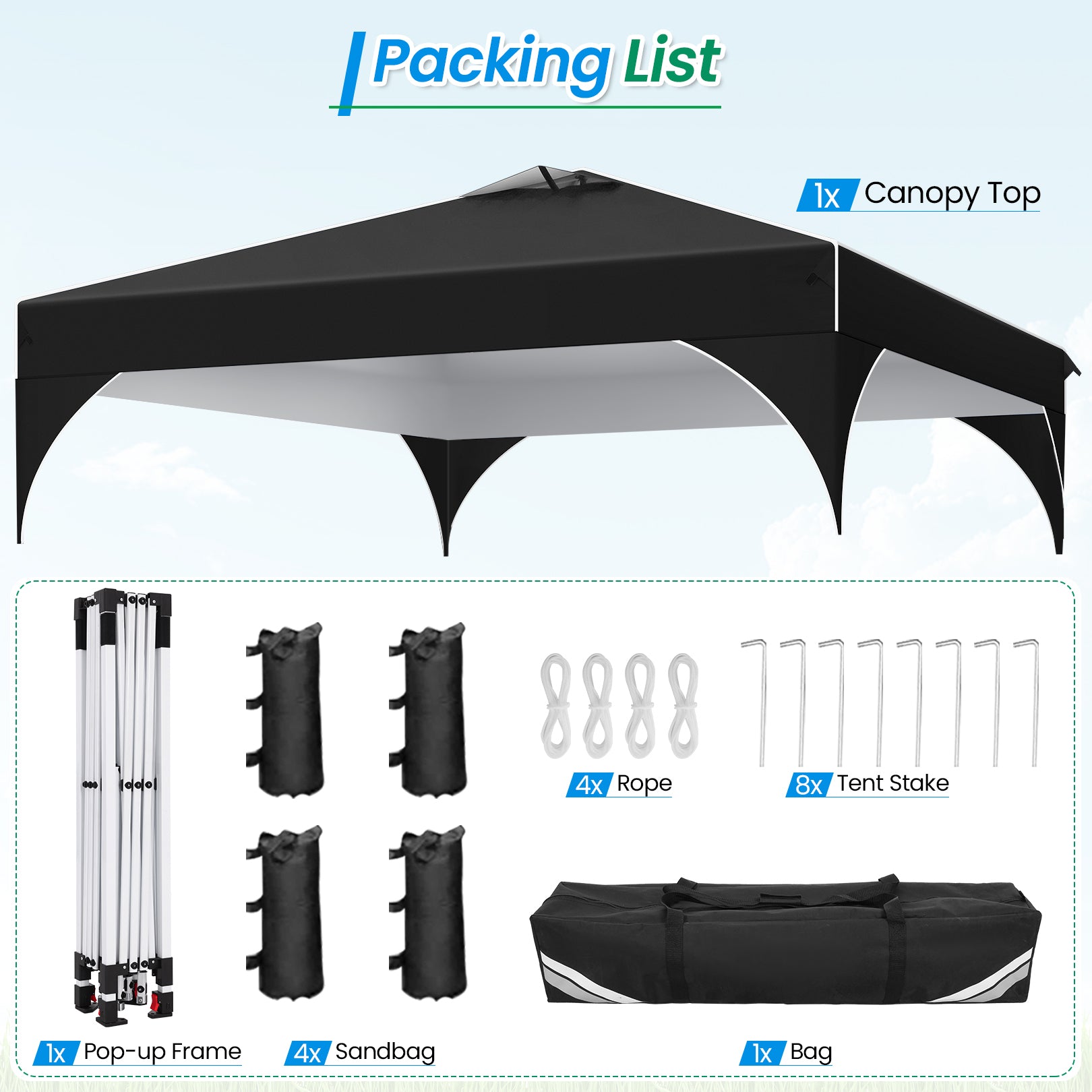 • Canopy Color: Black/White/Gray/Khaki/Blue/Dark Blue