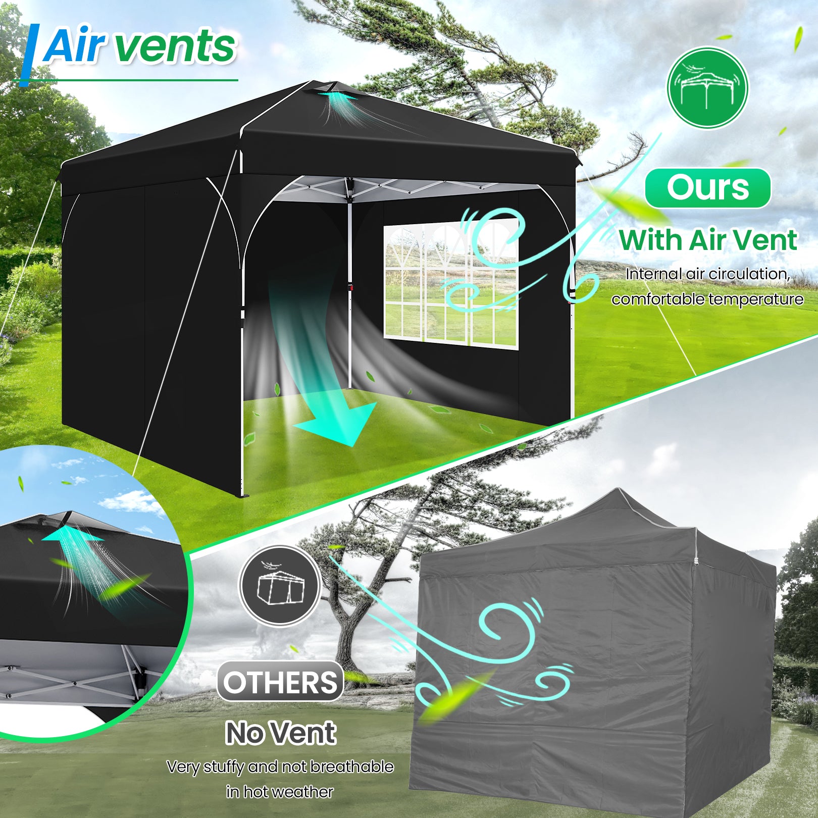 🔍Versatile and Breathable: The pop up canopy includes a unique ventilated top and removable sidewalls, providing both sun protection and ventilation based on your needs. This versatile 10x10 canopy is perfect for camping, parties, event and beach outings, ensuring comfort in various settings.