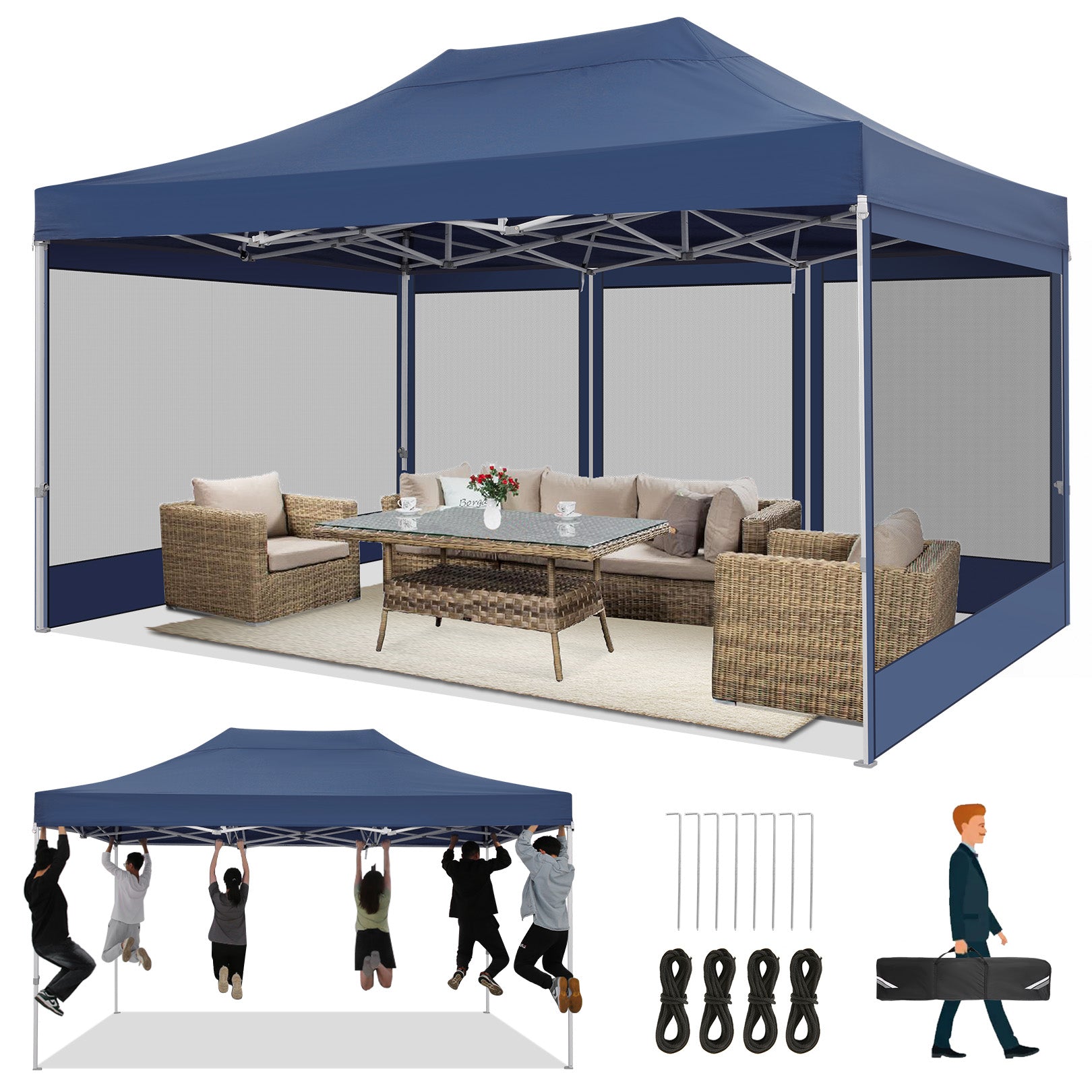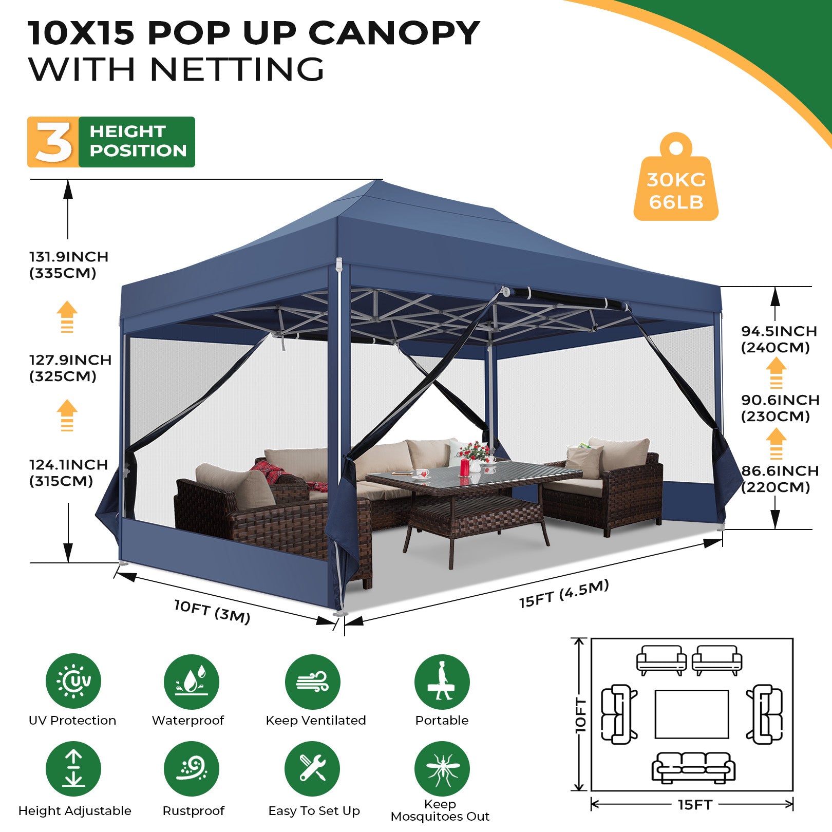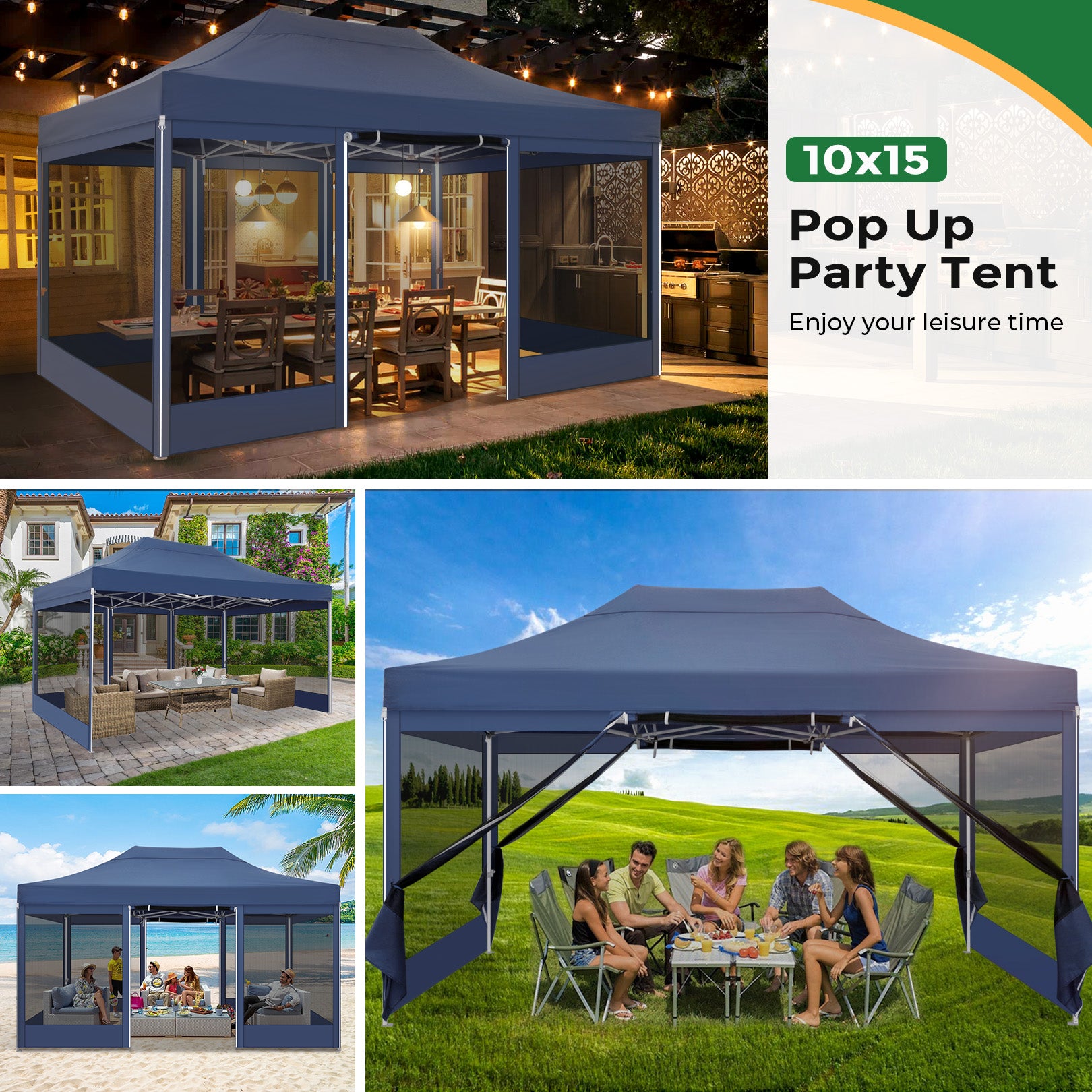 COBIZI Canopy Tent 10x15 Heavy Duty,Pop Up Canopy Gazebo with Netting Screened ,Waterproof Ez up Canopy with Sidewalls,Outdoor Instant Party Tent for Backyard,Wedding, Birthday,BBQ,Dark Blue
