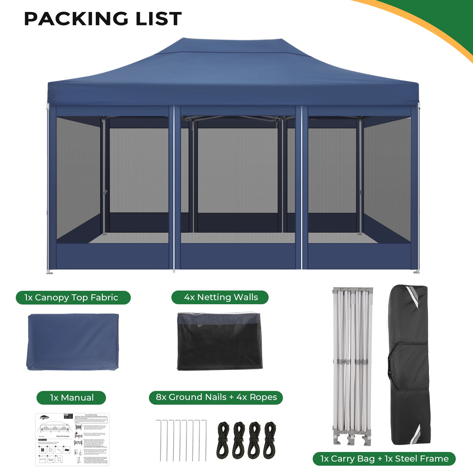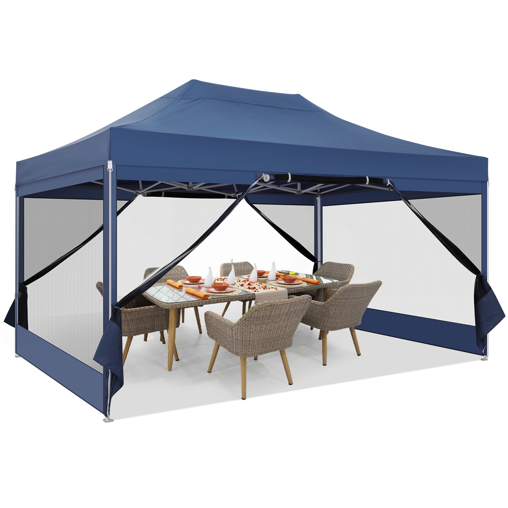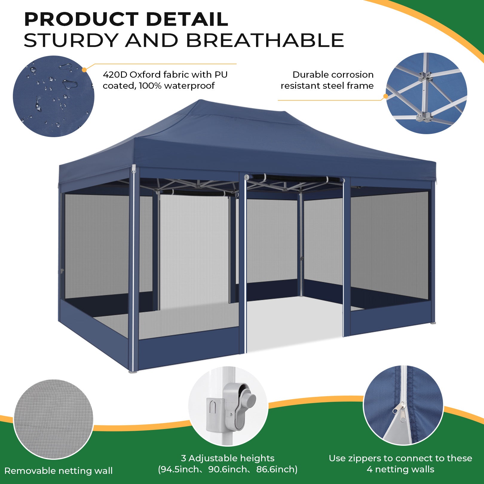 COBIZI Canopy Tent 10x15 Heavy Duty,Pop Up Canopy Gazebo with Netting Screened ,Waterproof Ez up Canopy with Sidewalls,Outdoor Instant Party Tent for Backyard,Wedding, Birthday,BBQ,Dark Blue