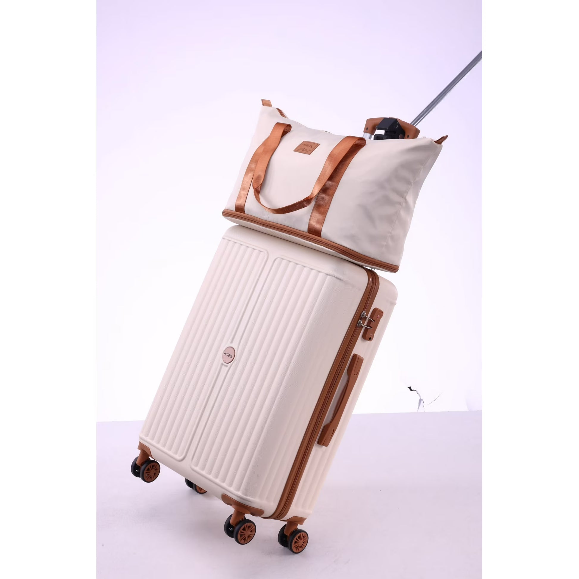 3Piece Set (20" CarryOn + Duffel Bag+ Toiletry Bag): Meet your effortless travel trio— a lightweight ABS+PC hardside carryon with TSAapproved lock and butterysmooth 360° wheels, plus an expandable weekender that slides over the handle and a matching toiletry bag. Pack quick, move fast, arrive polished.