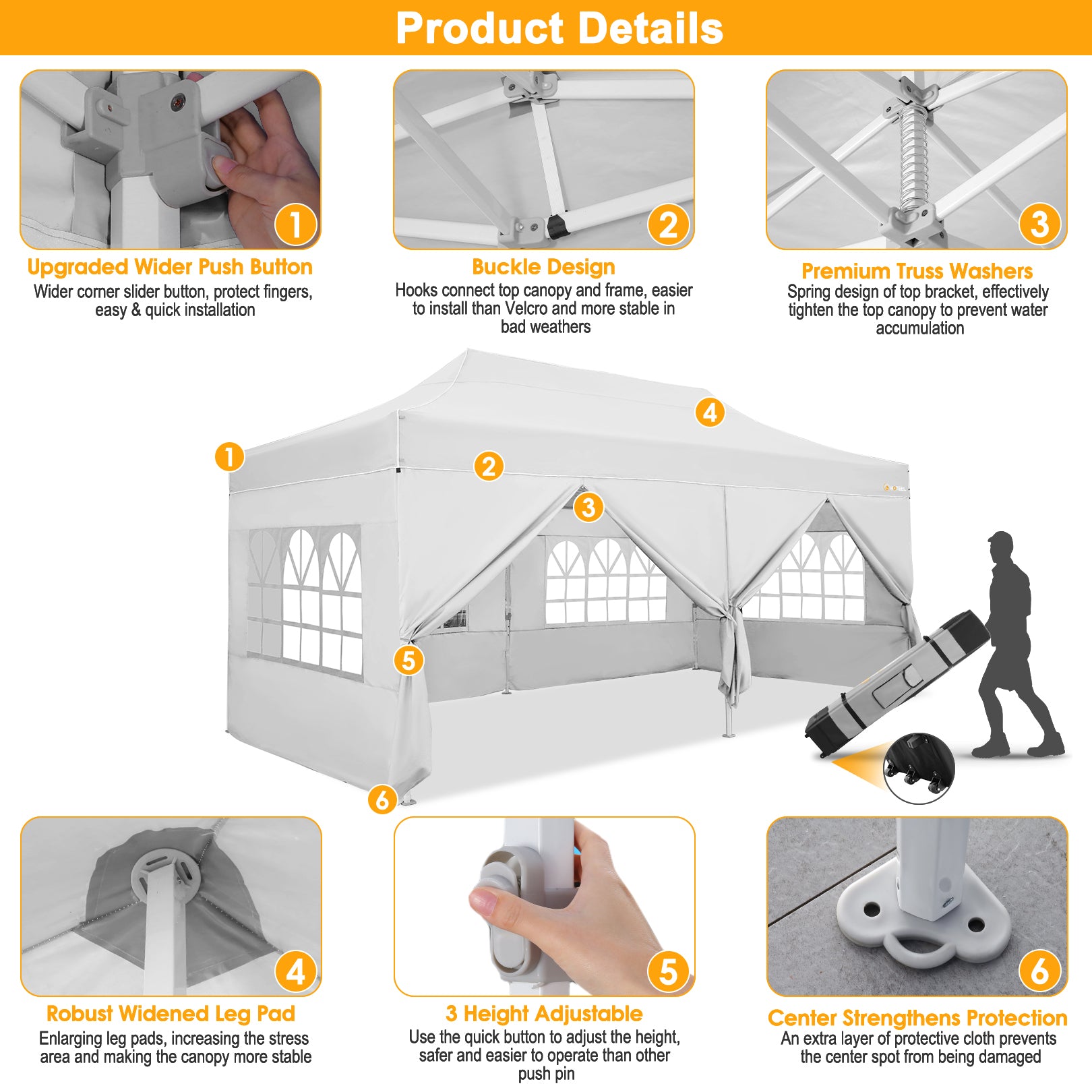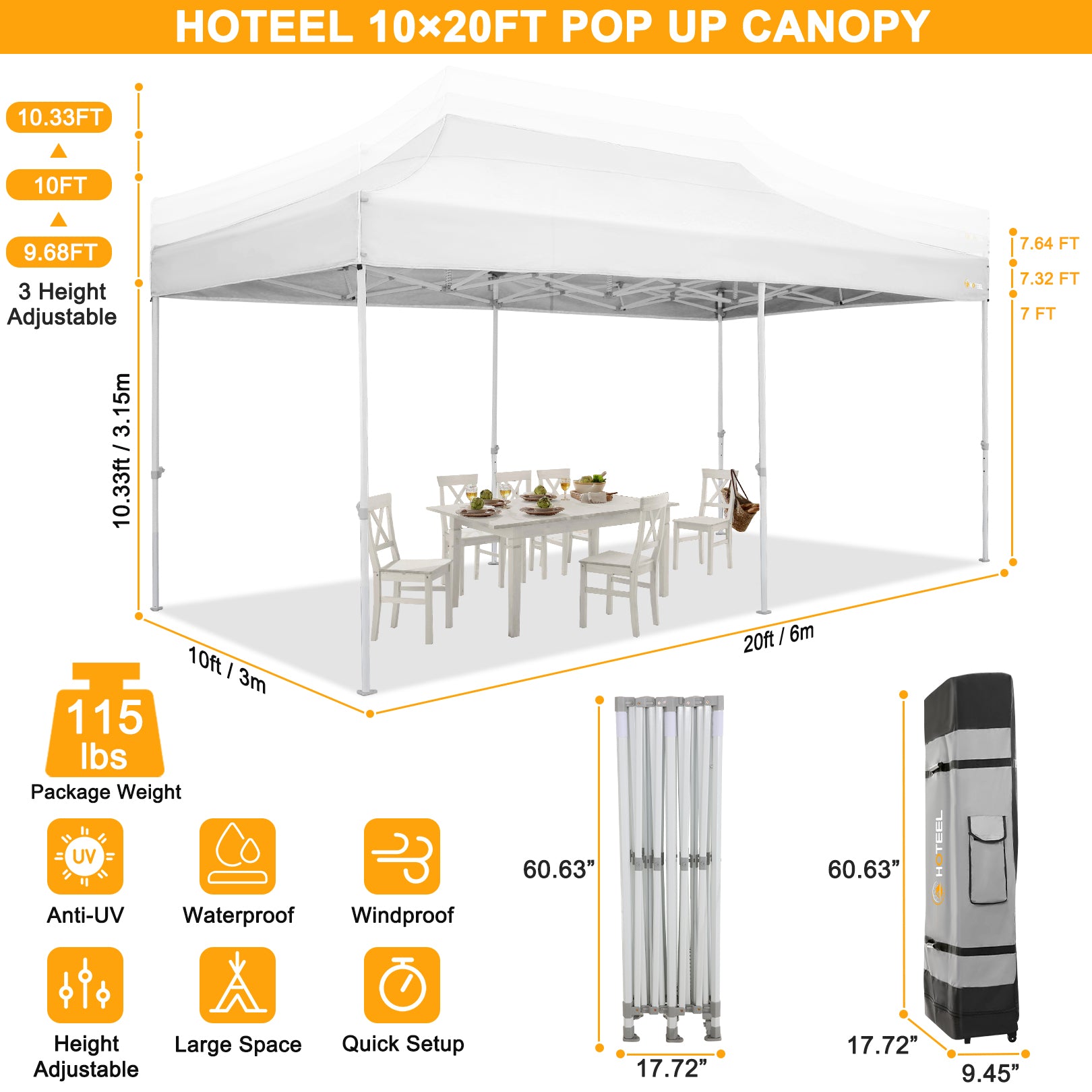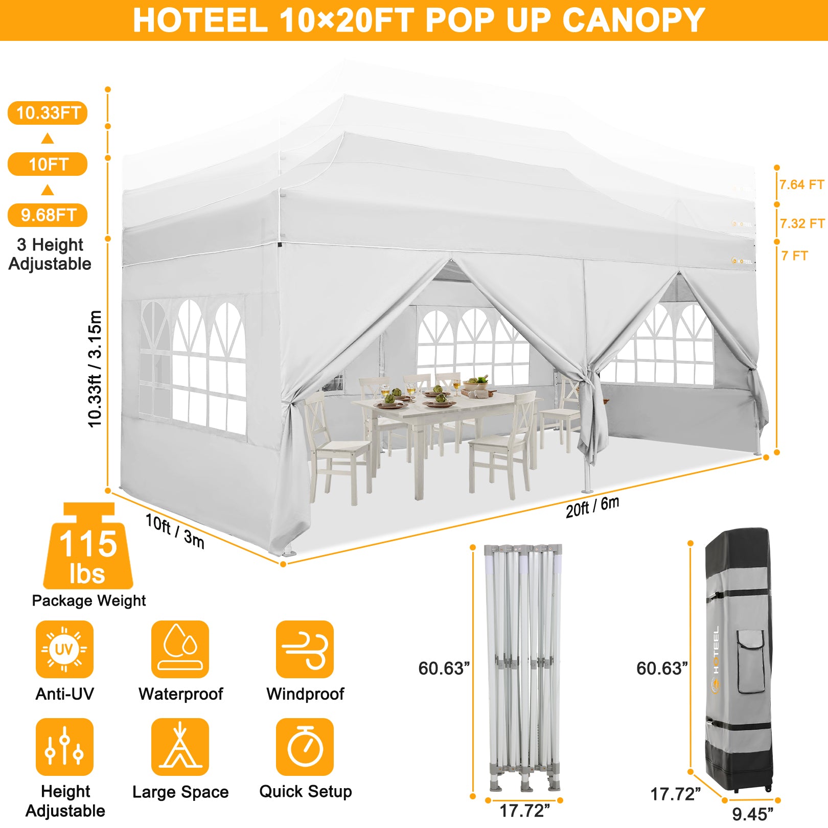 HOTEEL Canopy Tent 10x20 Pop Up Heavy Duty Canopy Tent with 6 Removable Sidewalls,Party Tent for Weddings,Beaches,Outdoor Events,Commercial Seasonal Wind UV 50+& Waterproof&Sunburn Protection,White