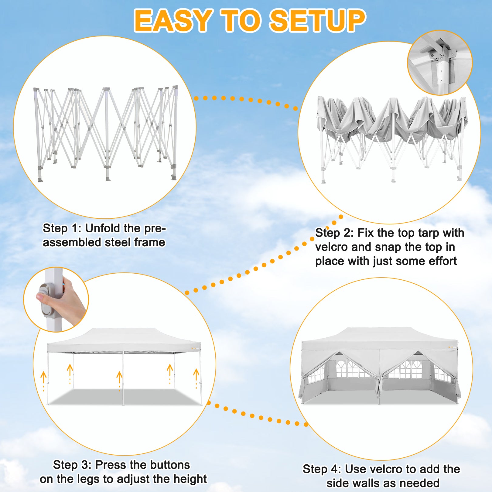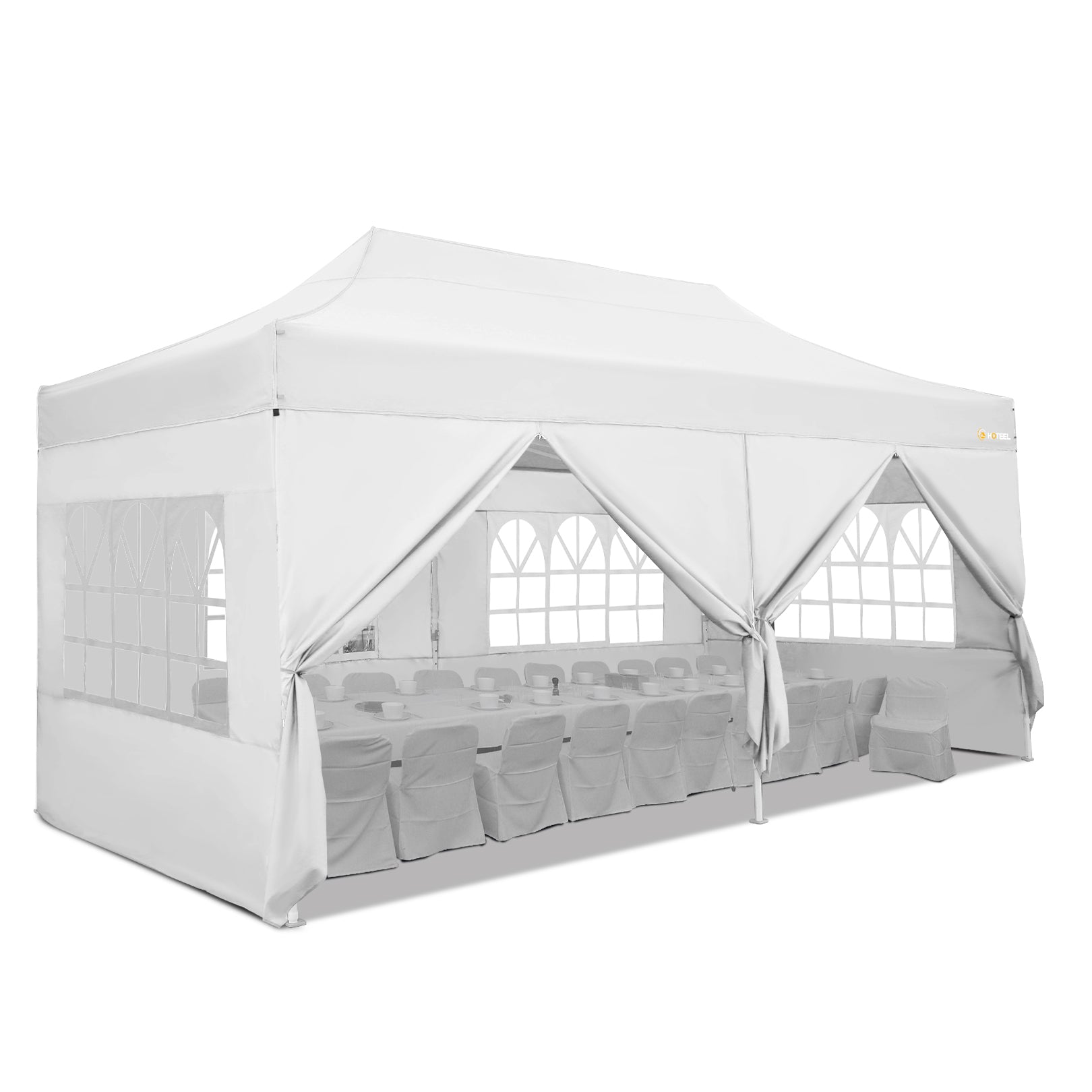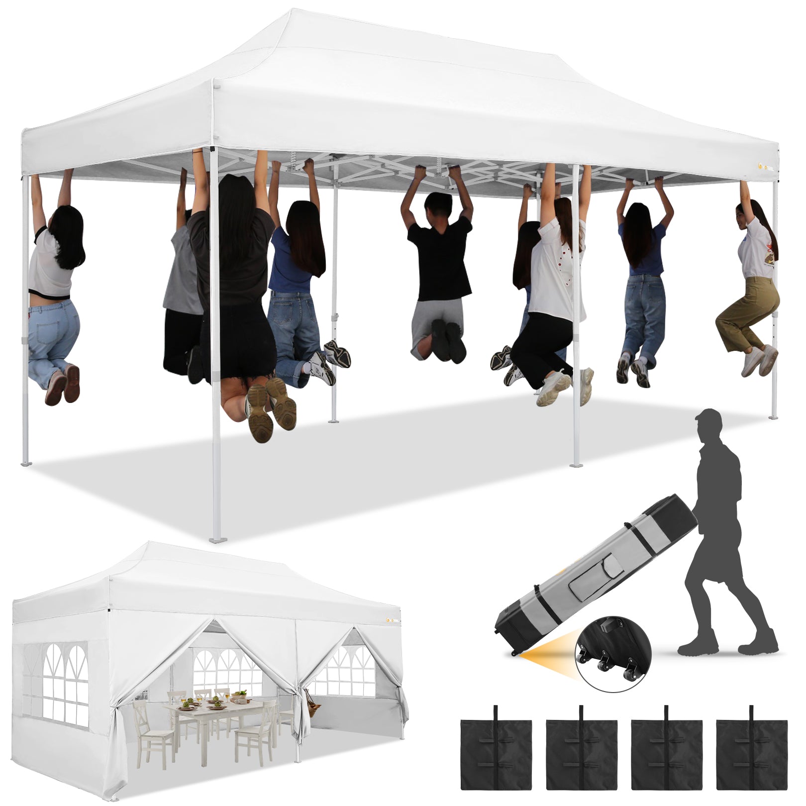 HOTEEL Canopy Tent 10x20 Pop Up Heavy Duty Canopy Tent with 6 Removable Sidewalls,Party Tent for Weddings,Beaches,Outdoor Events,Commercial Seasonal Wind UV 50+& Waterproof&Sunburn Protection,White