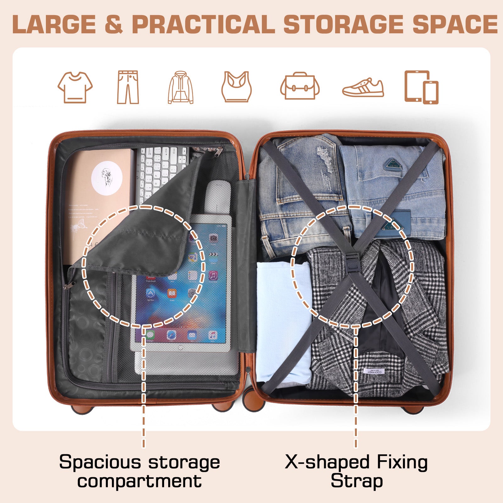 ✦ Smart Security System: TSA lock with instant reset + dual anti-pry zippers.