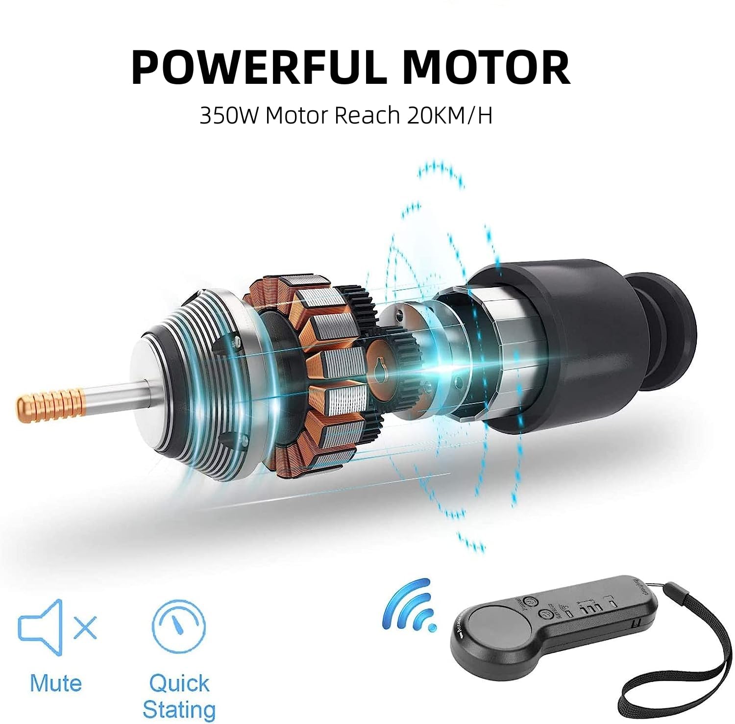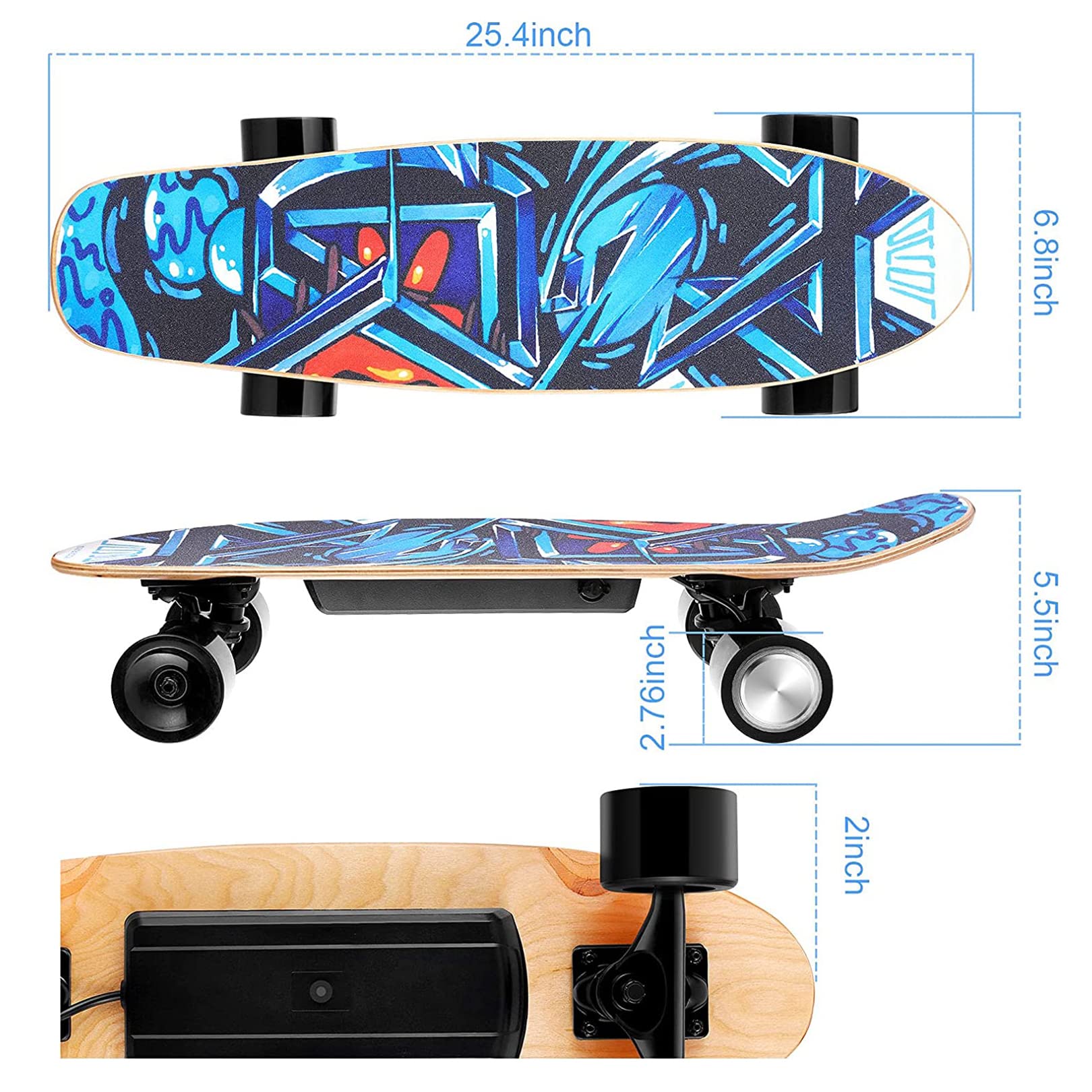 YUEBO Electric Skateboard with Wireless Remote Control, 350W, Max 12.4 MPH, 7 Layers Maple E-Skateboard, 3 Speed Adjustment for Adults, Teens, and Kids, Blue