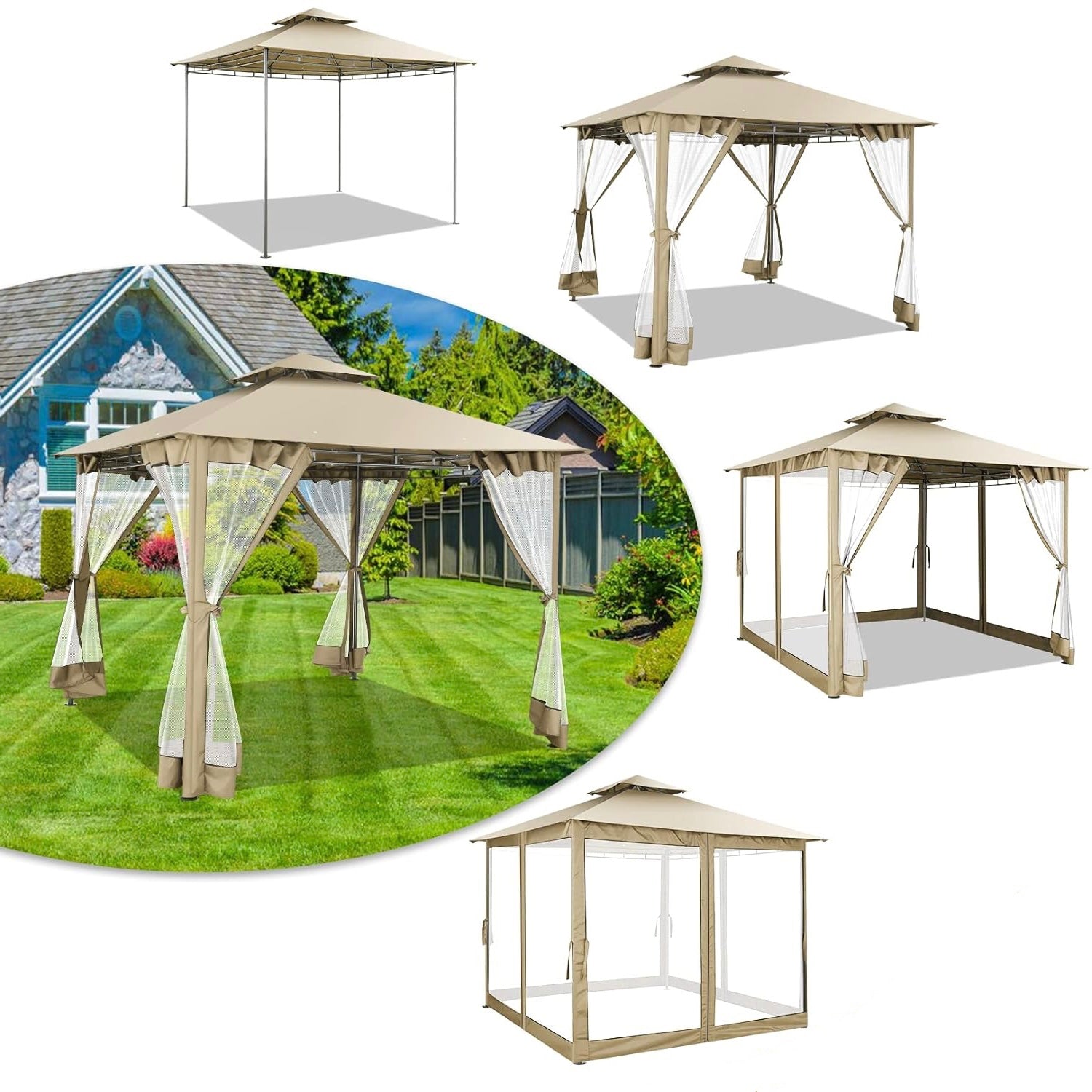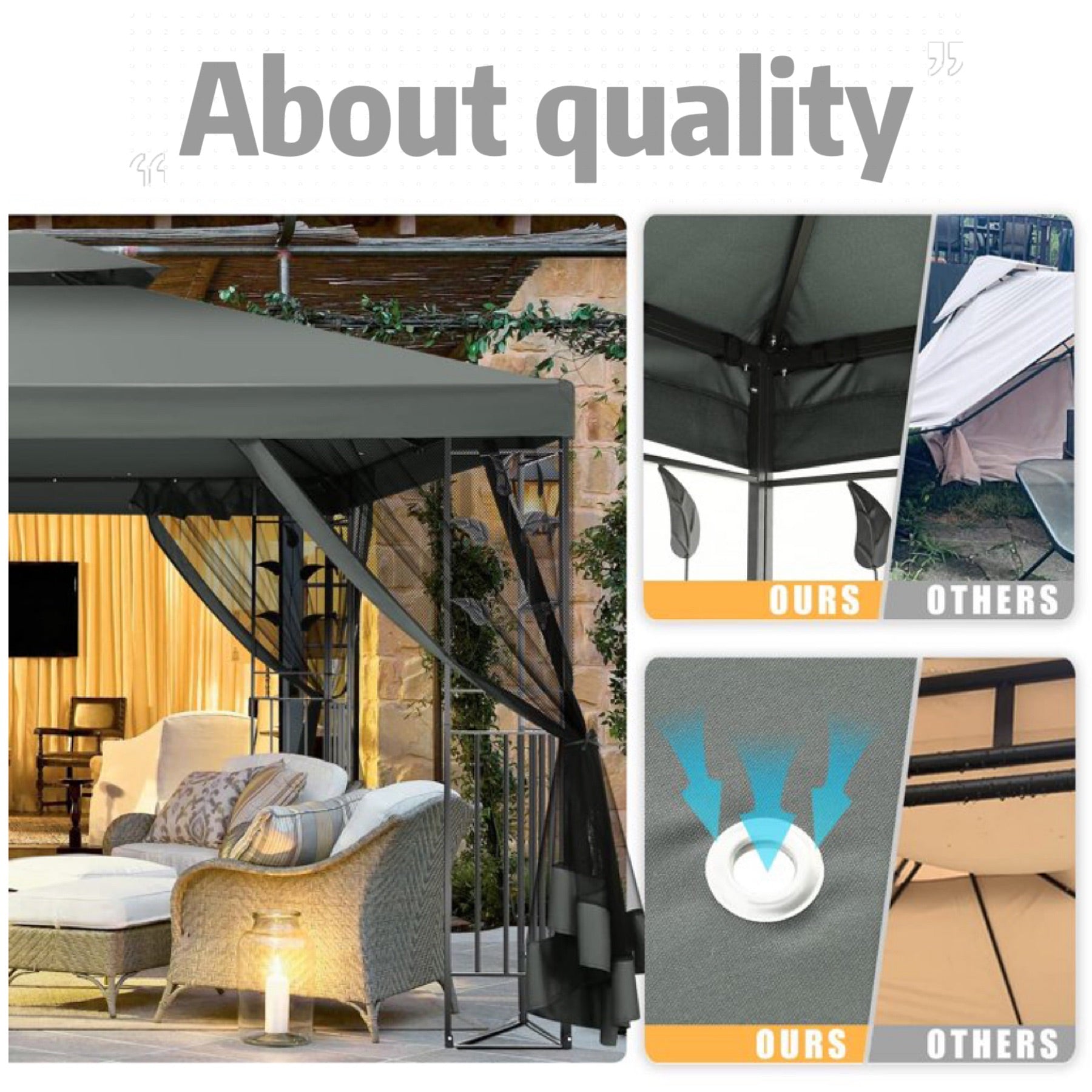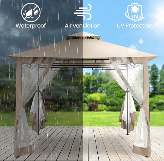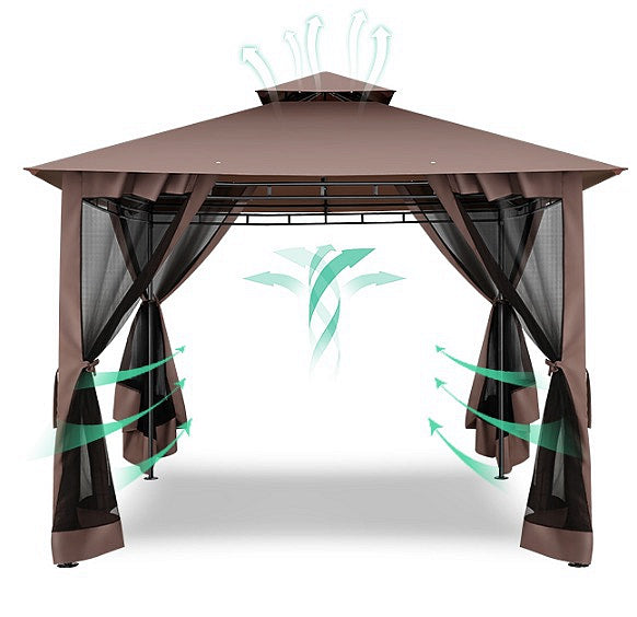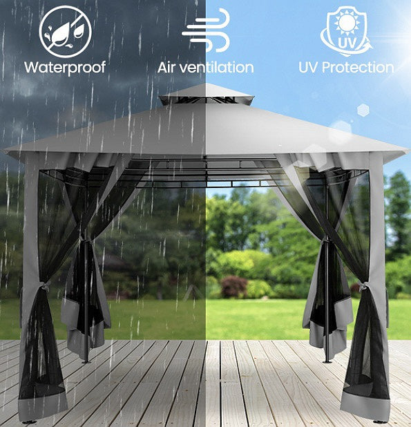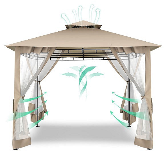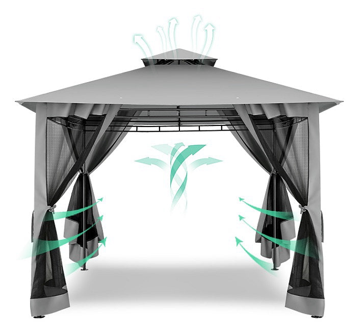 👍【Double tiered top】The design of double tiered top make better air circulation and air quality inside the gazebo.