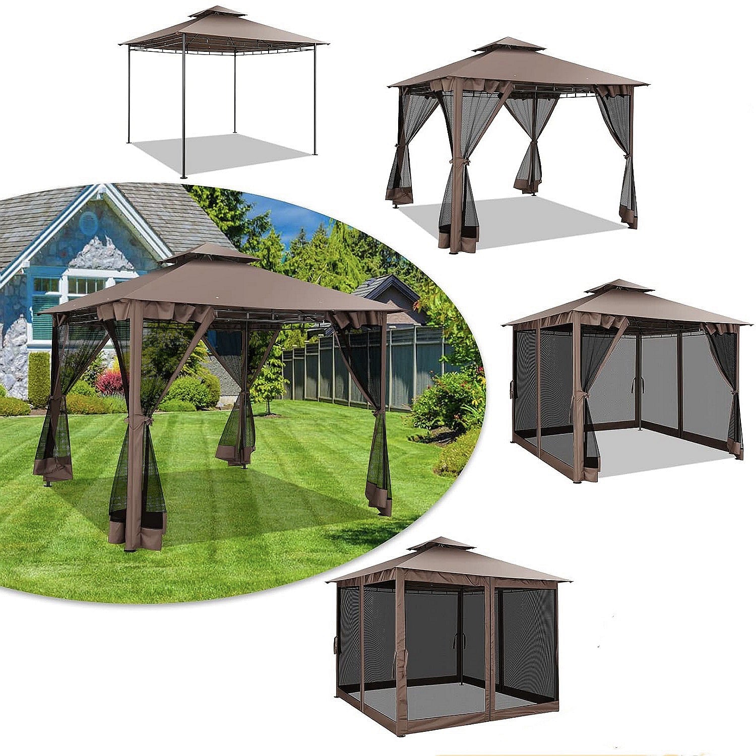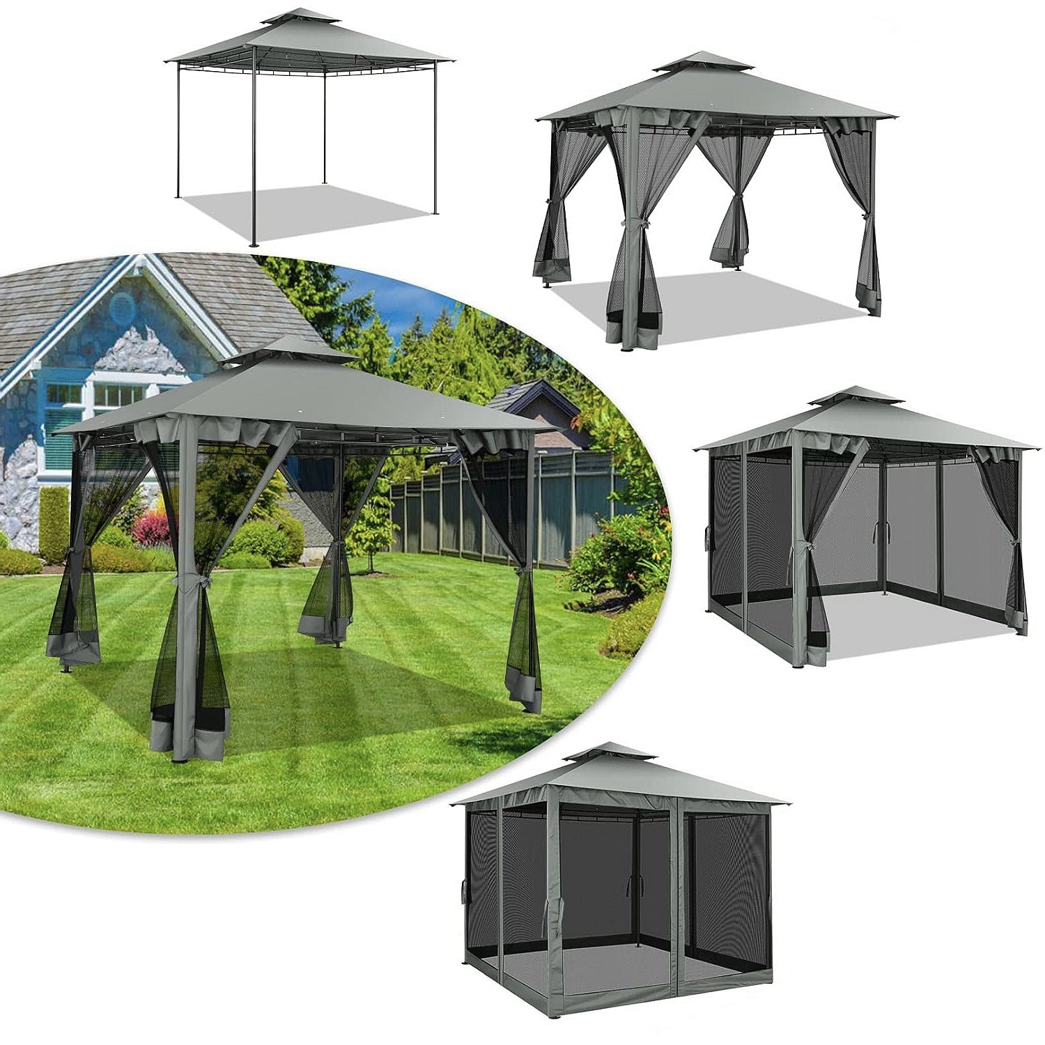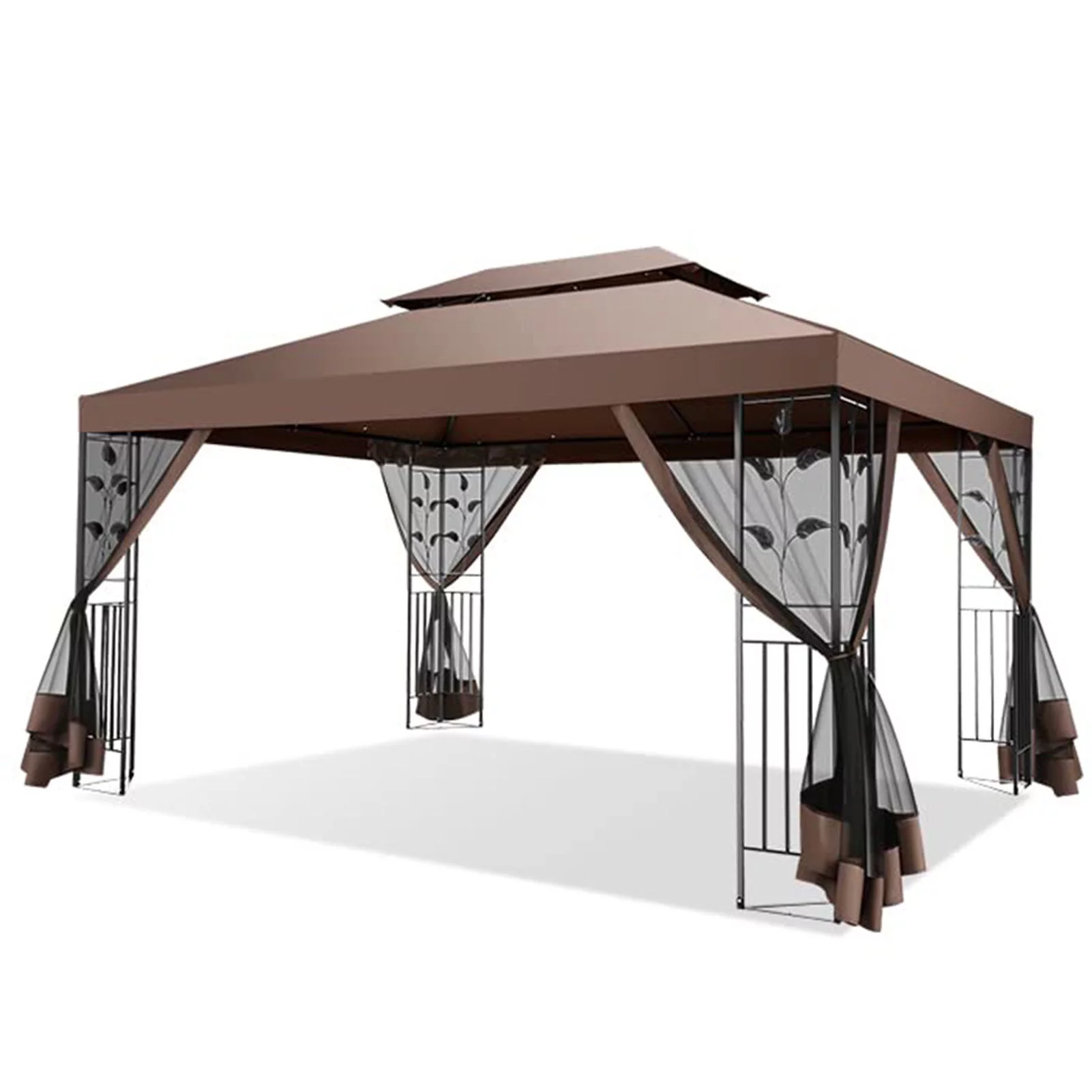 👍【Double tiered top】The design of double tiered top make better air circulation and air quality inside the gazebo.