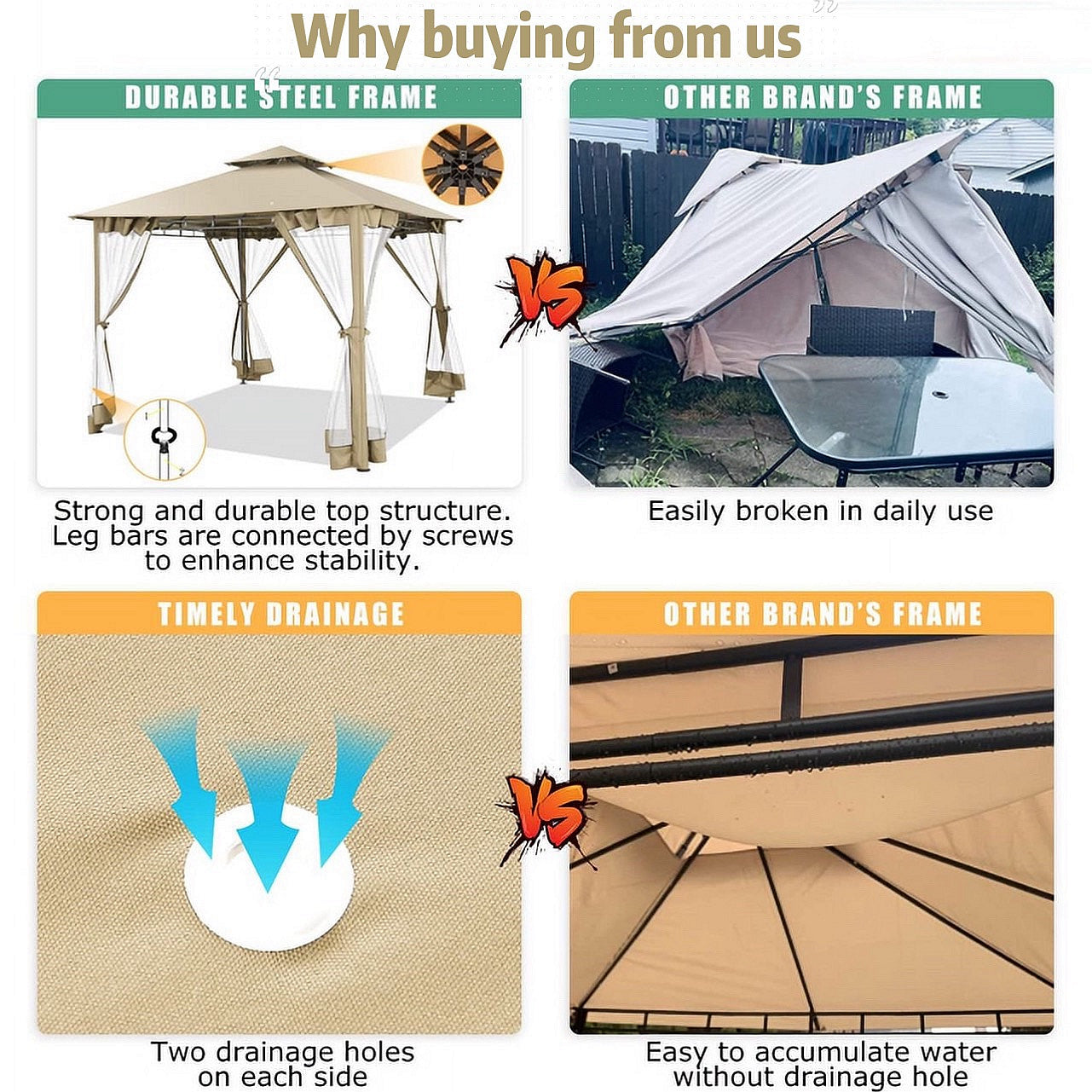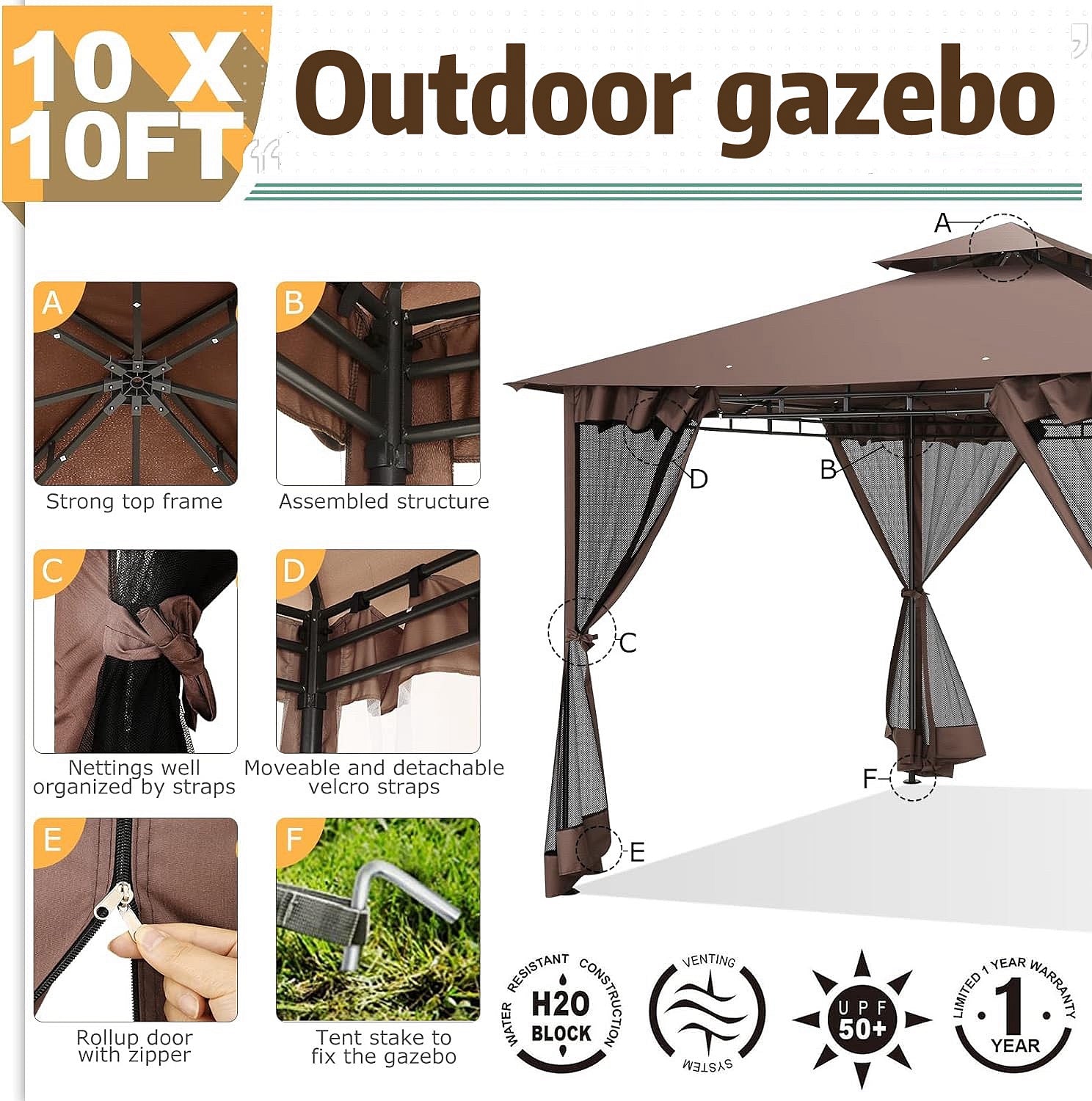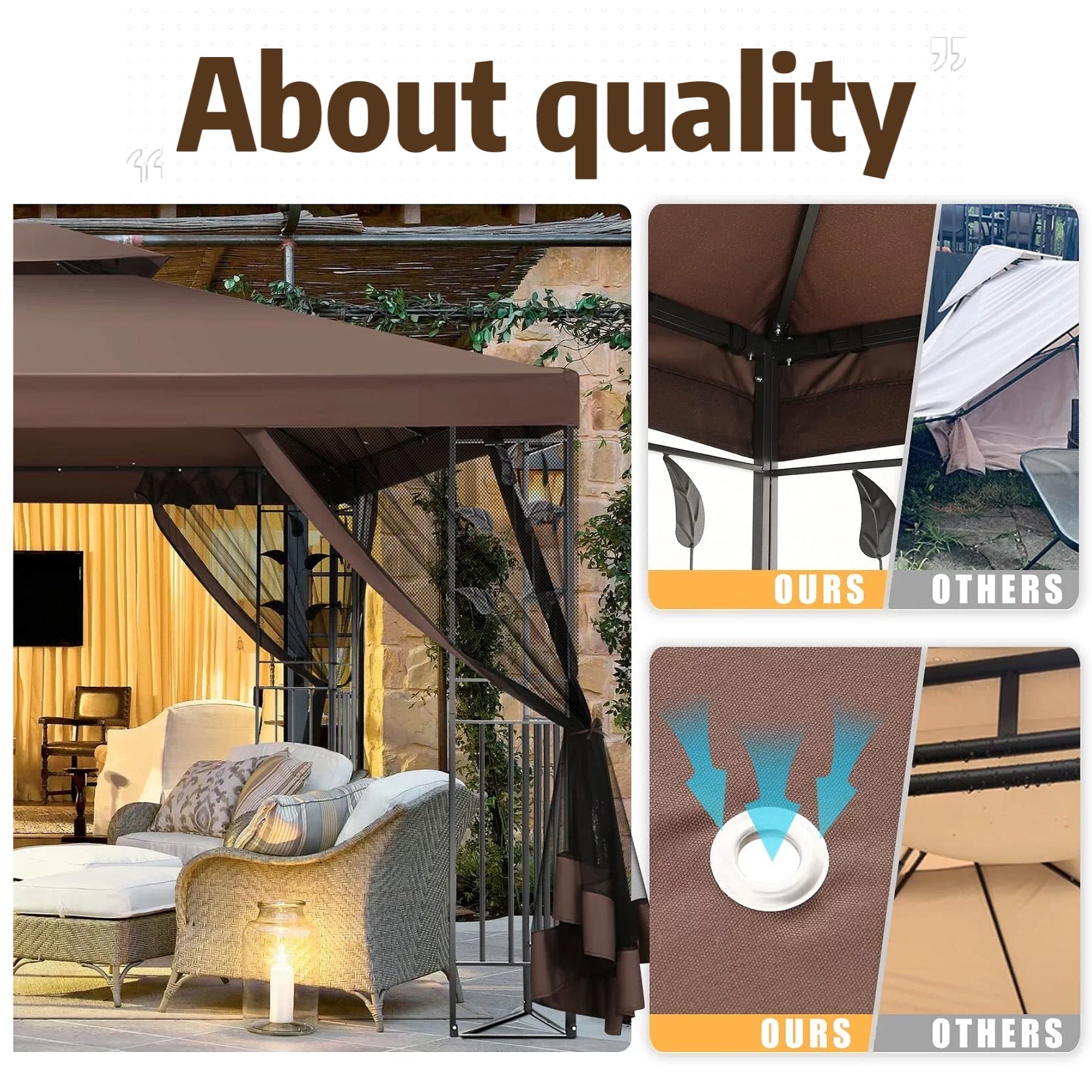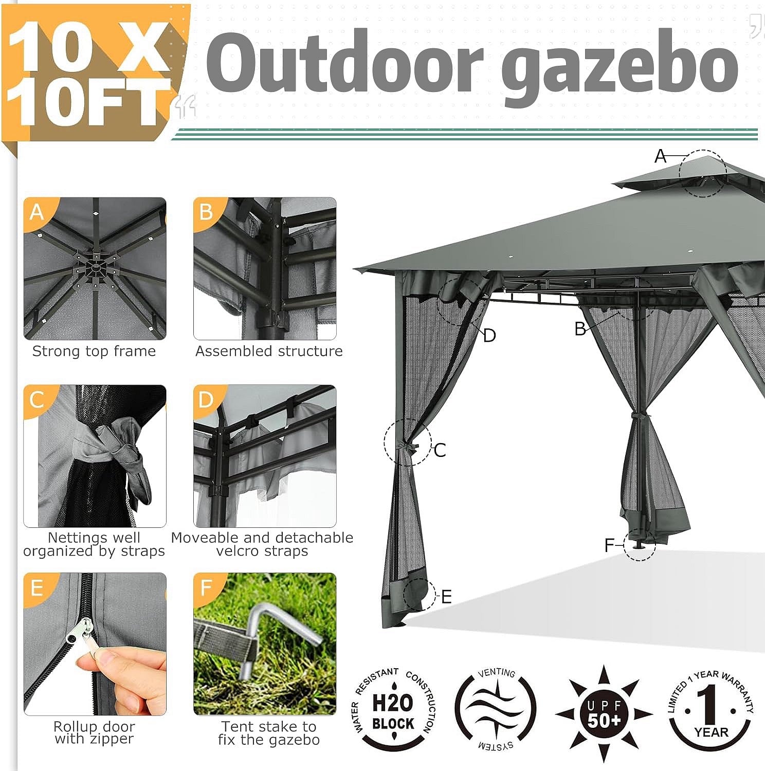 👍【Double tiered top】The design of double tiered top make better air circulation and air quality inside the gazebo.