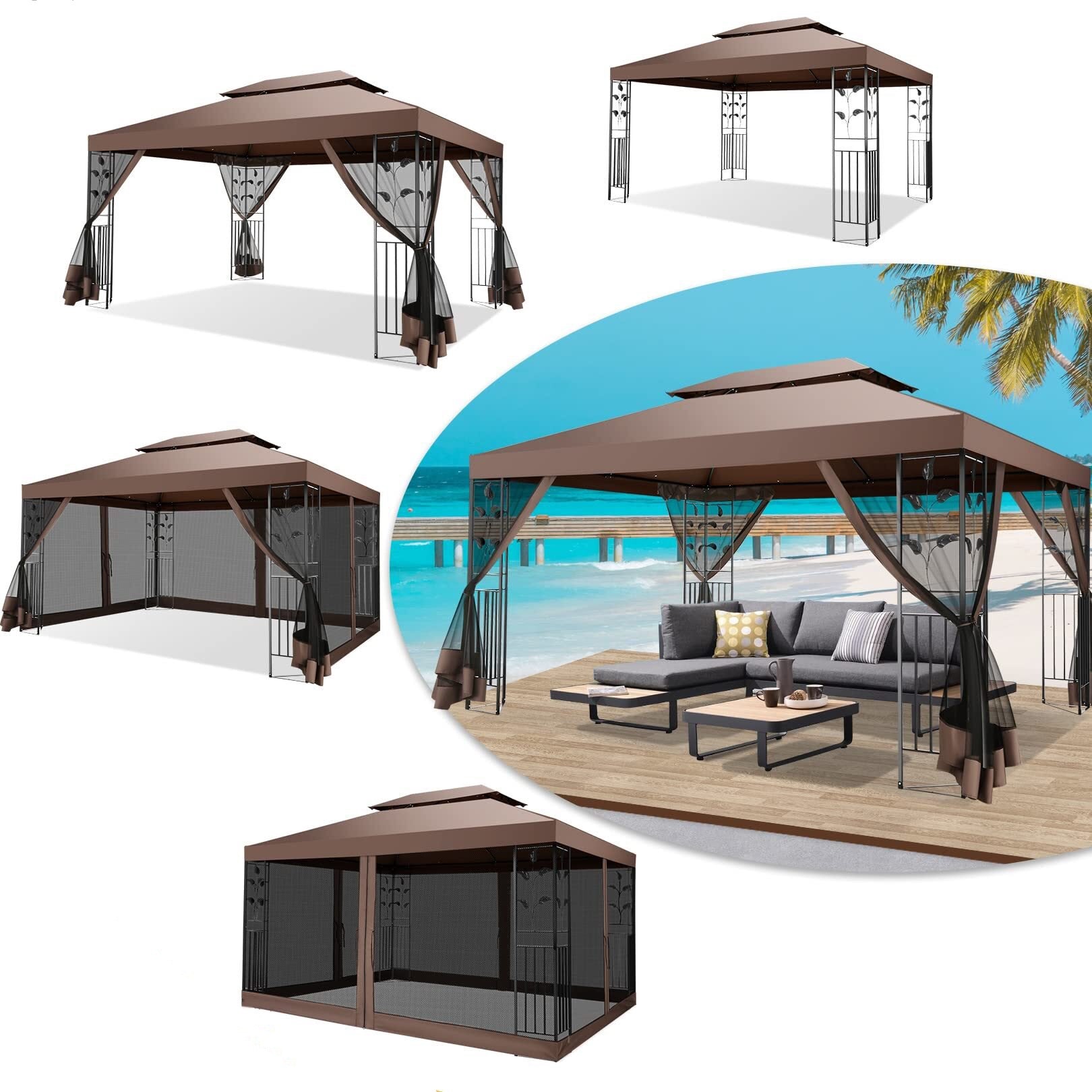 👍【Sturdy Steel Frame】The gazebo canopy is set up with wrought iron, triangular reinforcement is done under the screen column, with good structural stability.