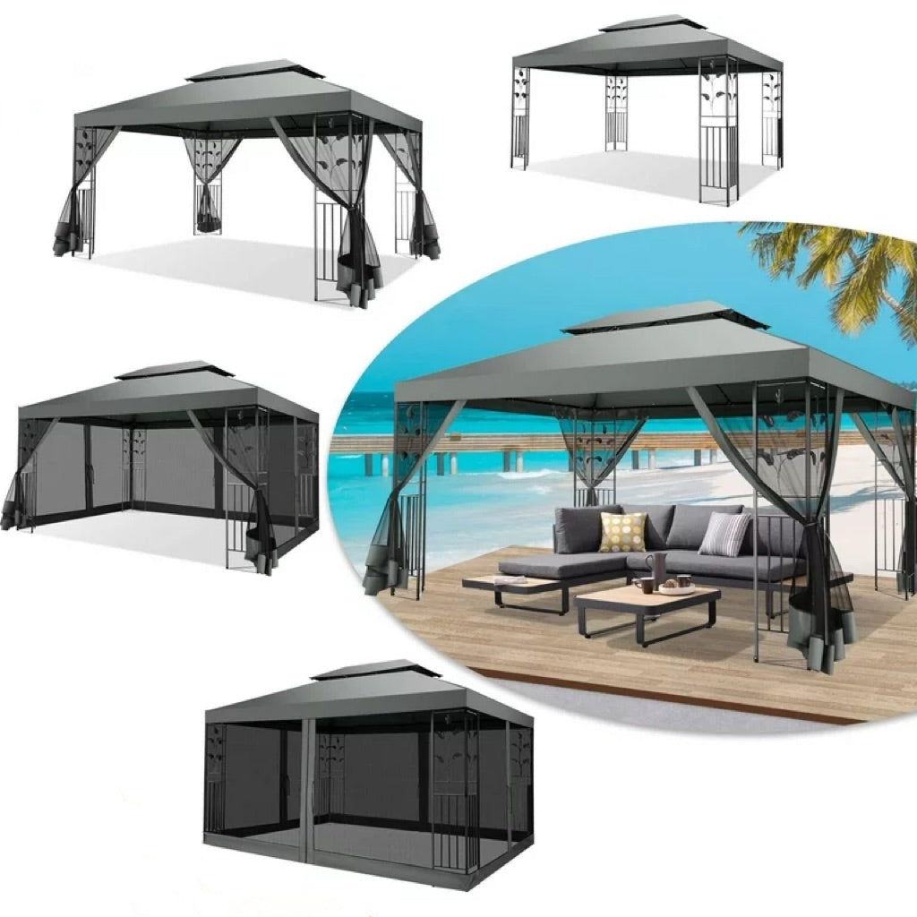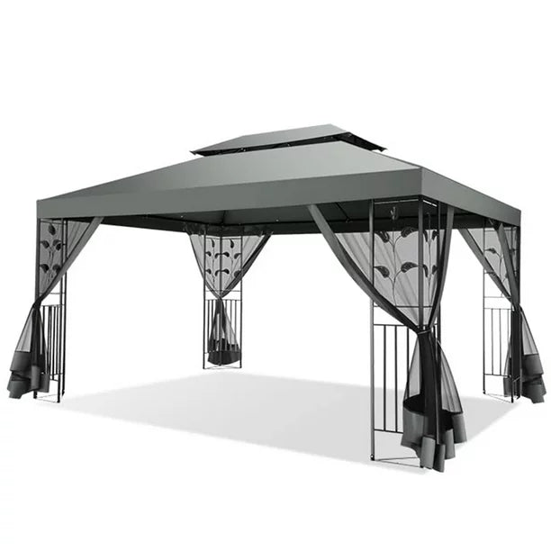 YUEBO 10'x 13' Metal Patio Gazebo, Outdoor Gazebo Canopy Tent for Backyard with Mosquito Netting, Gazebos Shelter with Steel Frame, Patio Covers for Sun and Rain, Gray