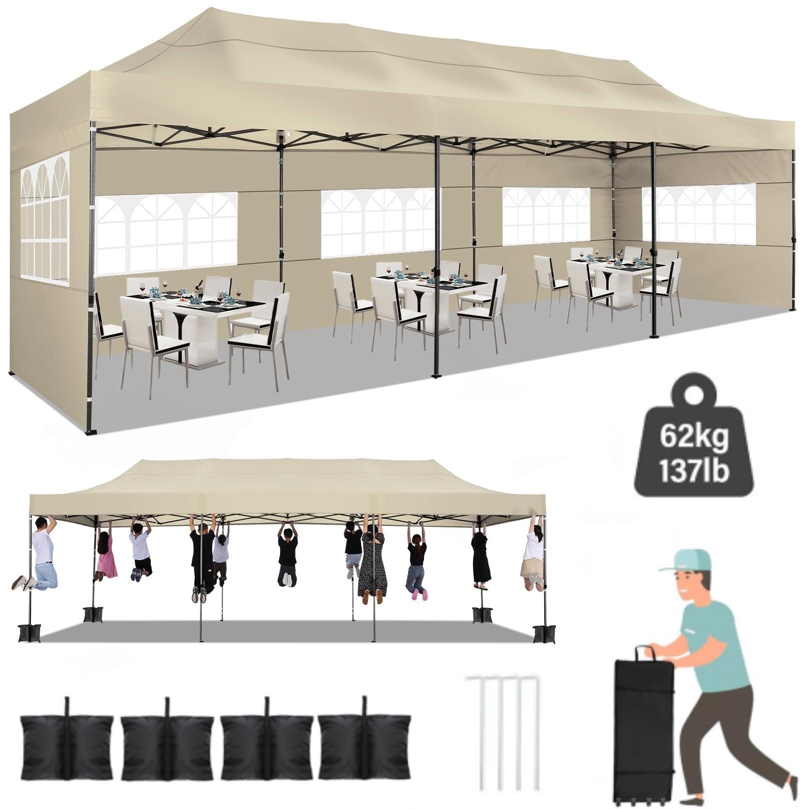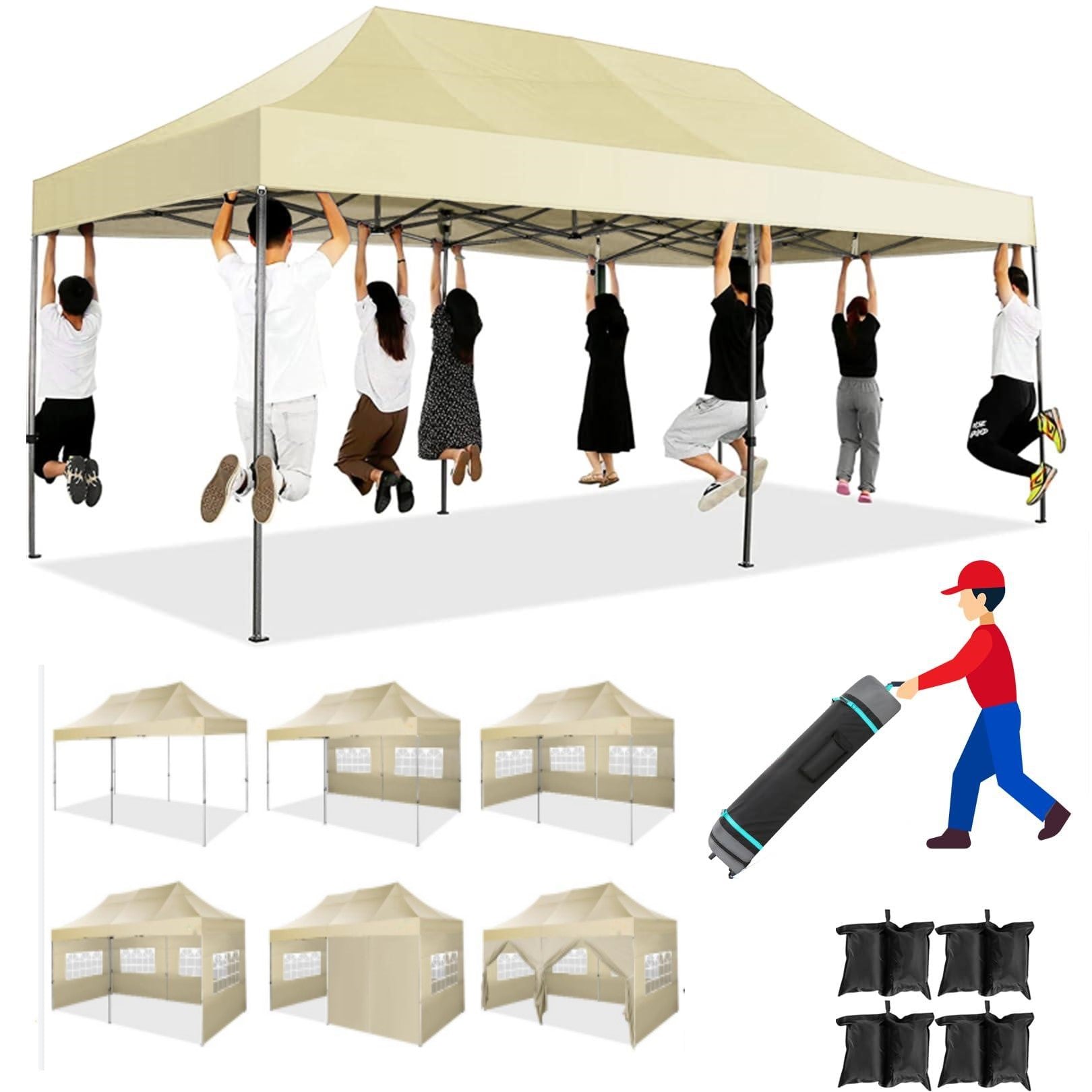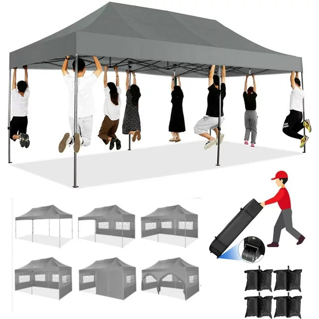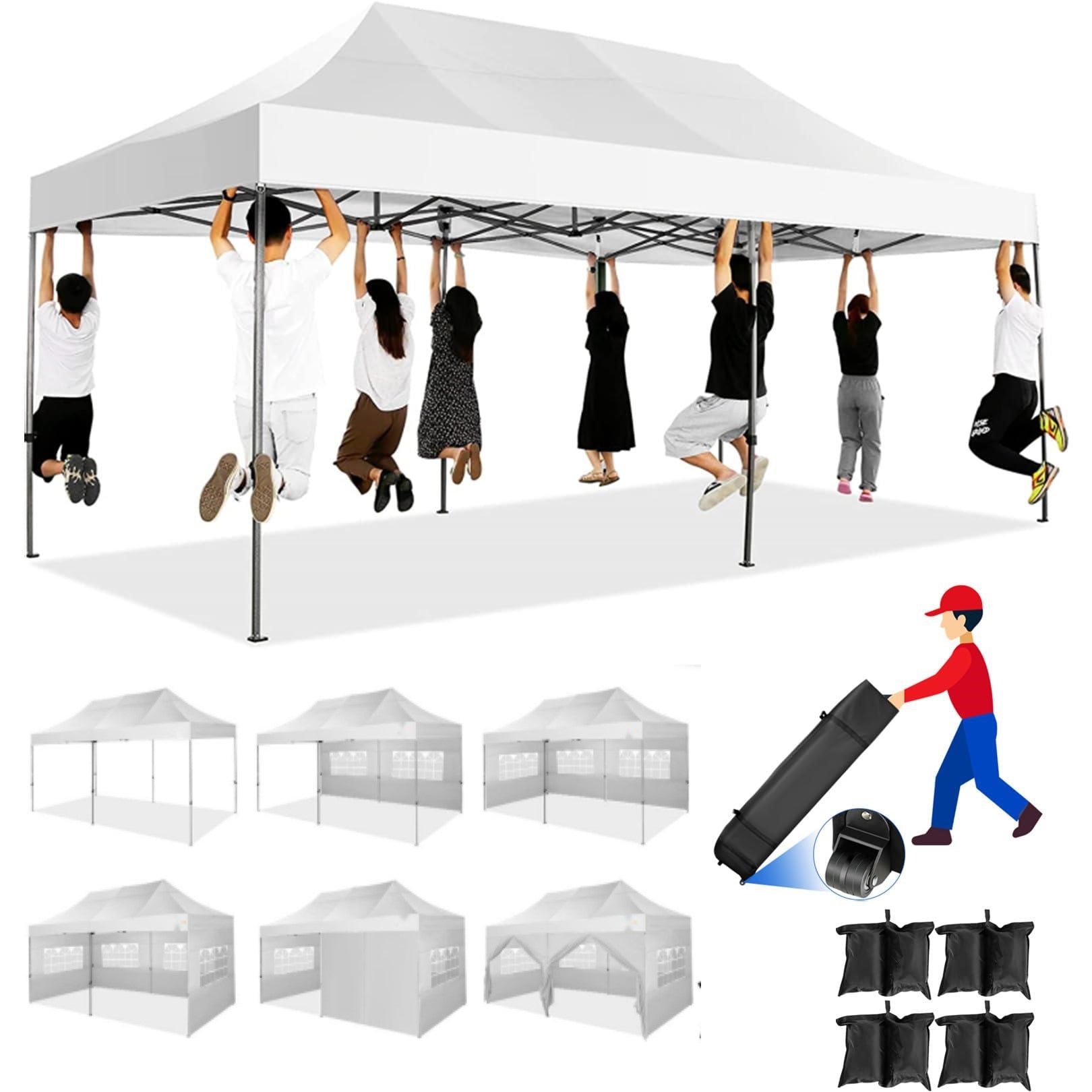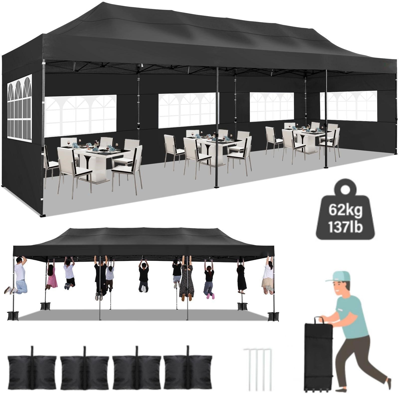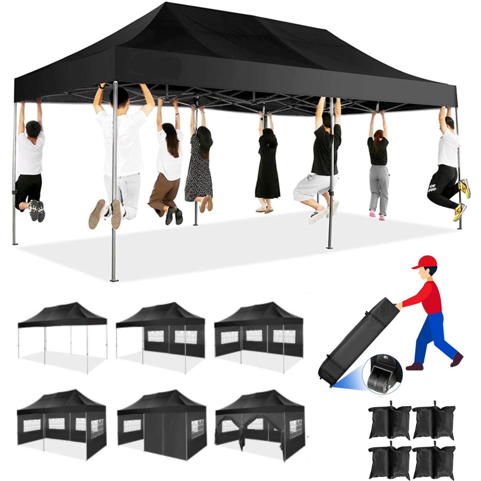 YUEBO 10x30 Heavy Duty Canopy with 8 Sidewalls,Outdoor Carport with Roller Bag,Pop up Tents for Parties,Wedding,Commercial,Black