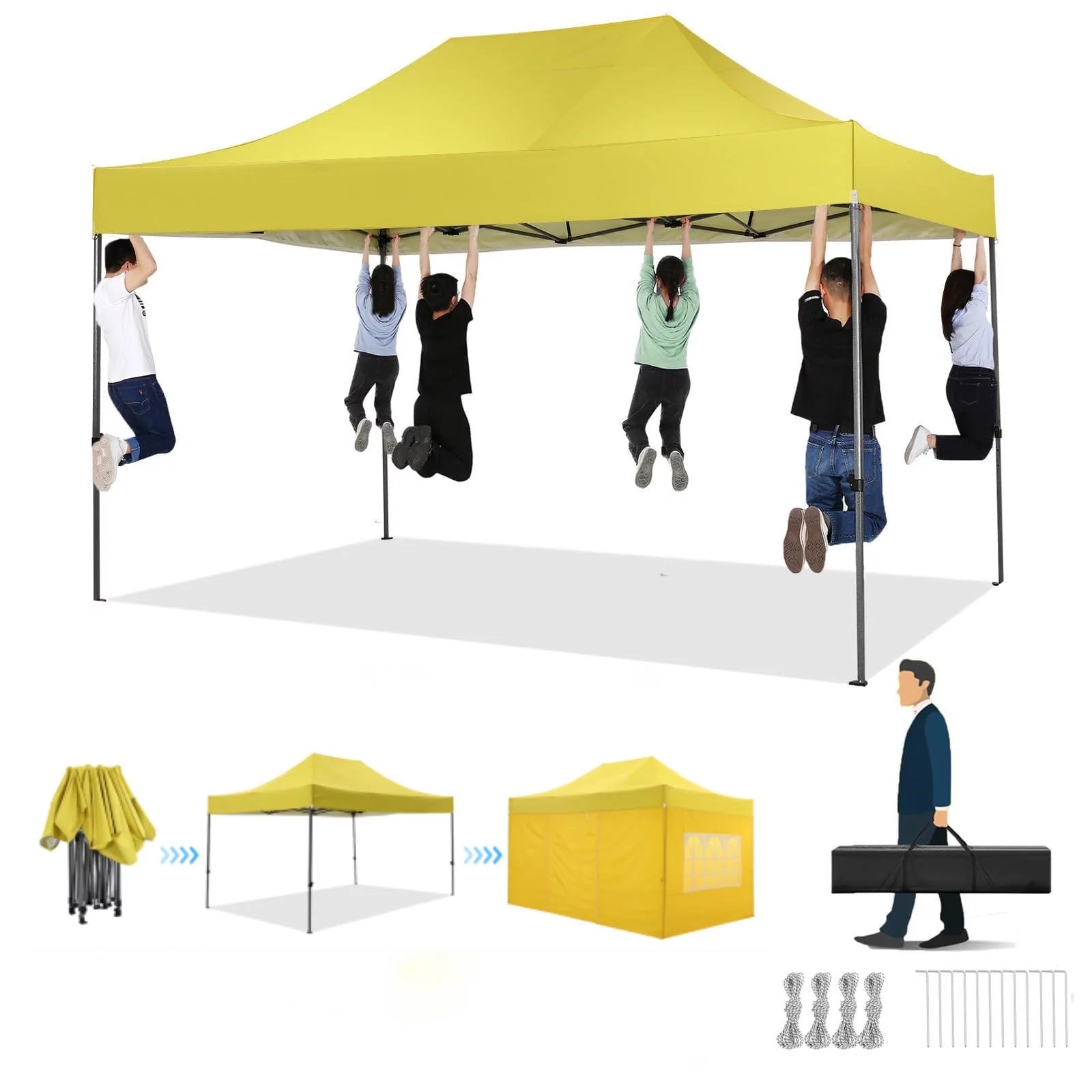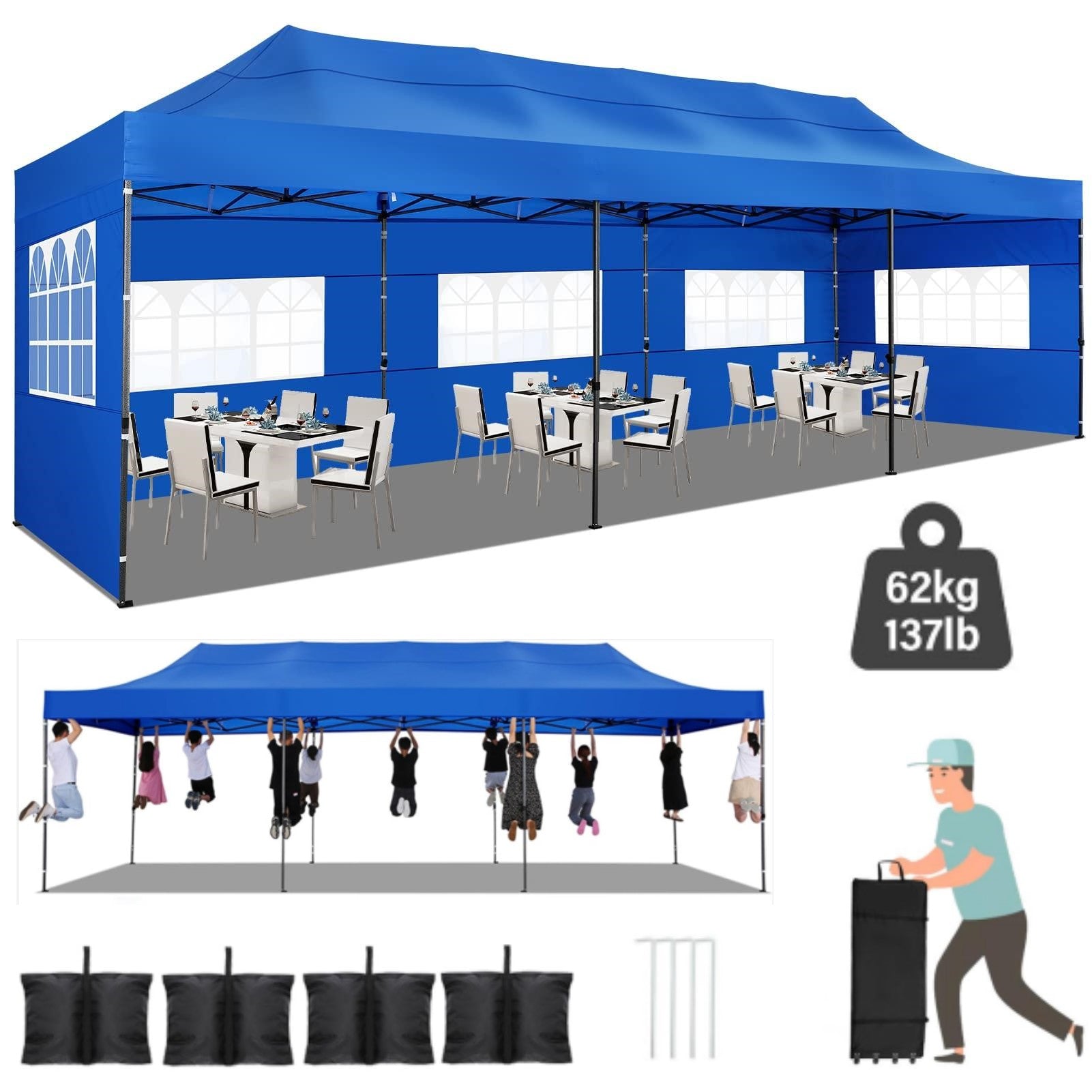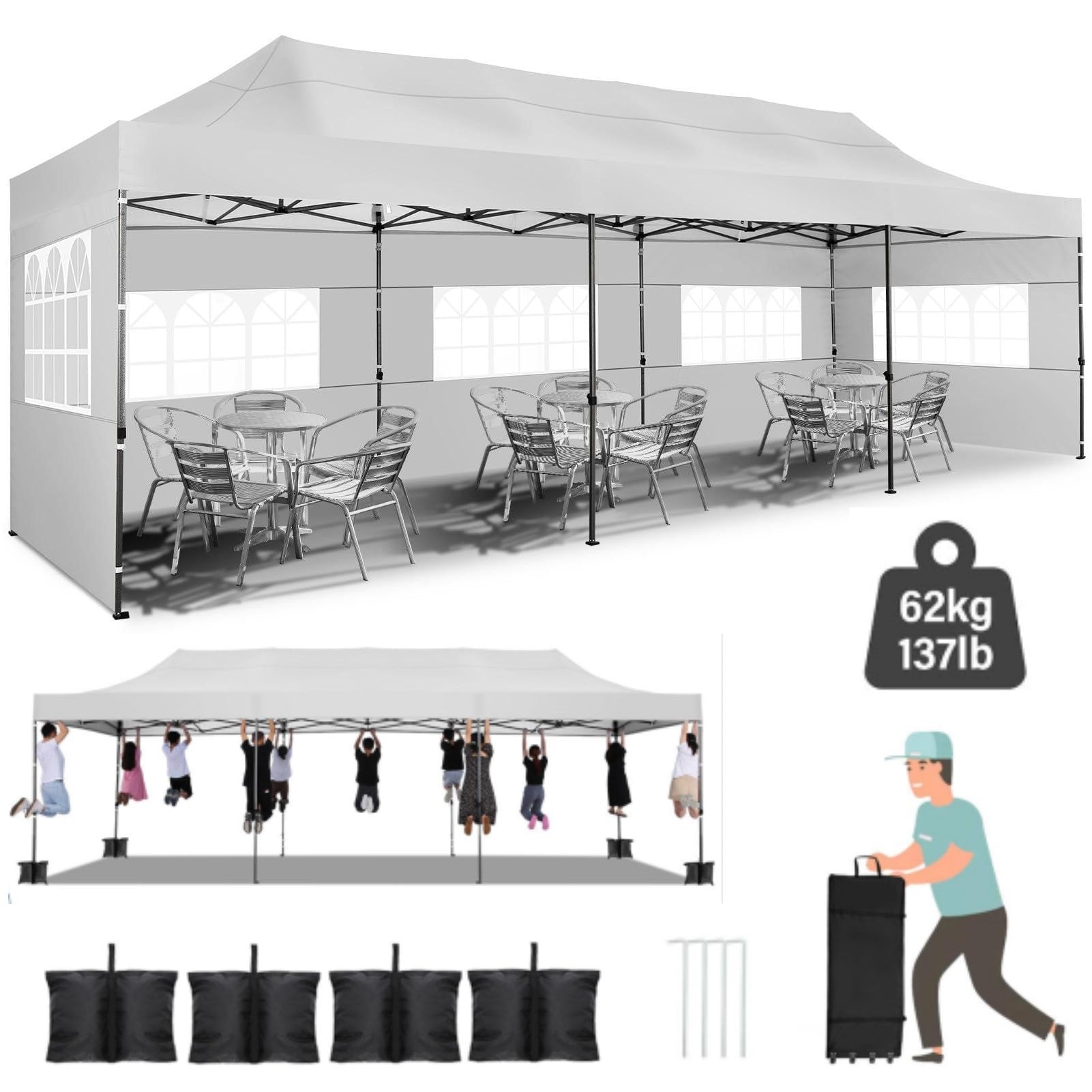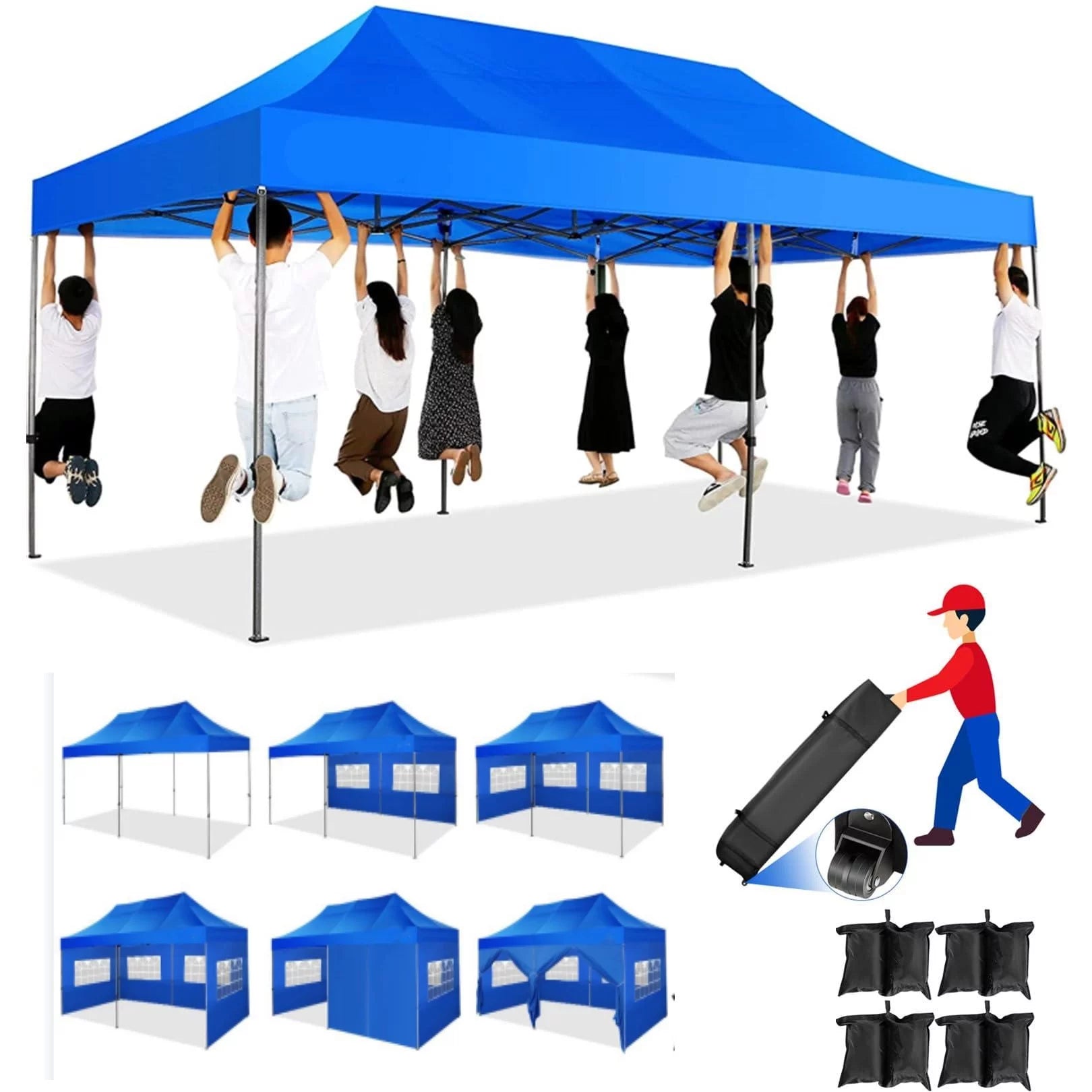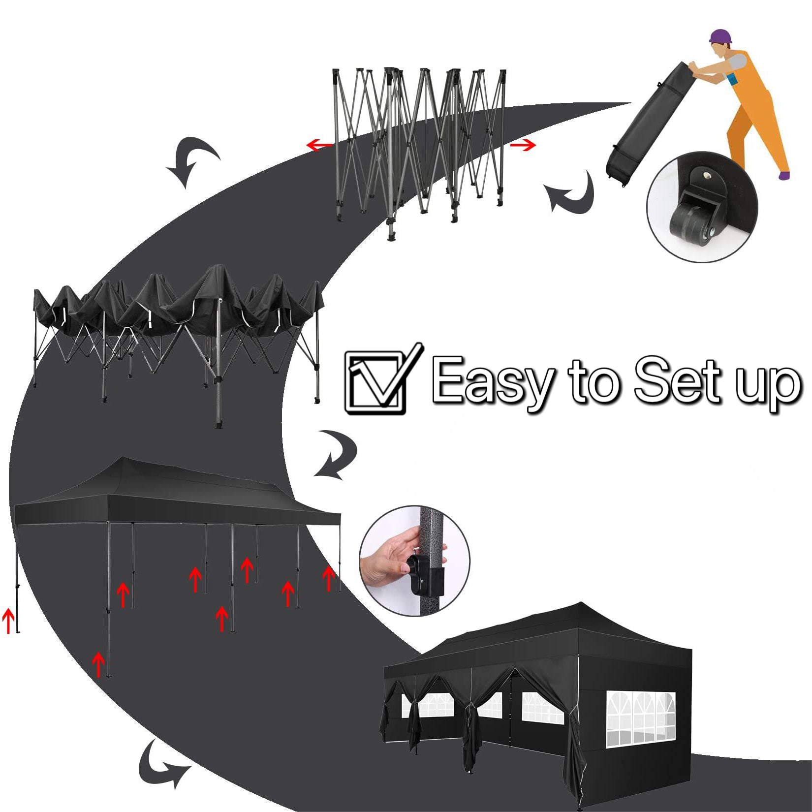 YUEBO 10x30 Heavy Duty Canopy with 8 Sidewalls,Outdoor Carport with Roller Bag,Pop up Tents for Parties,Wedding,Commercial,Black