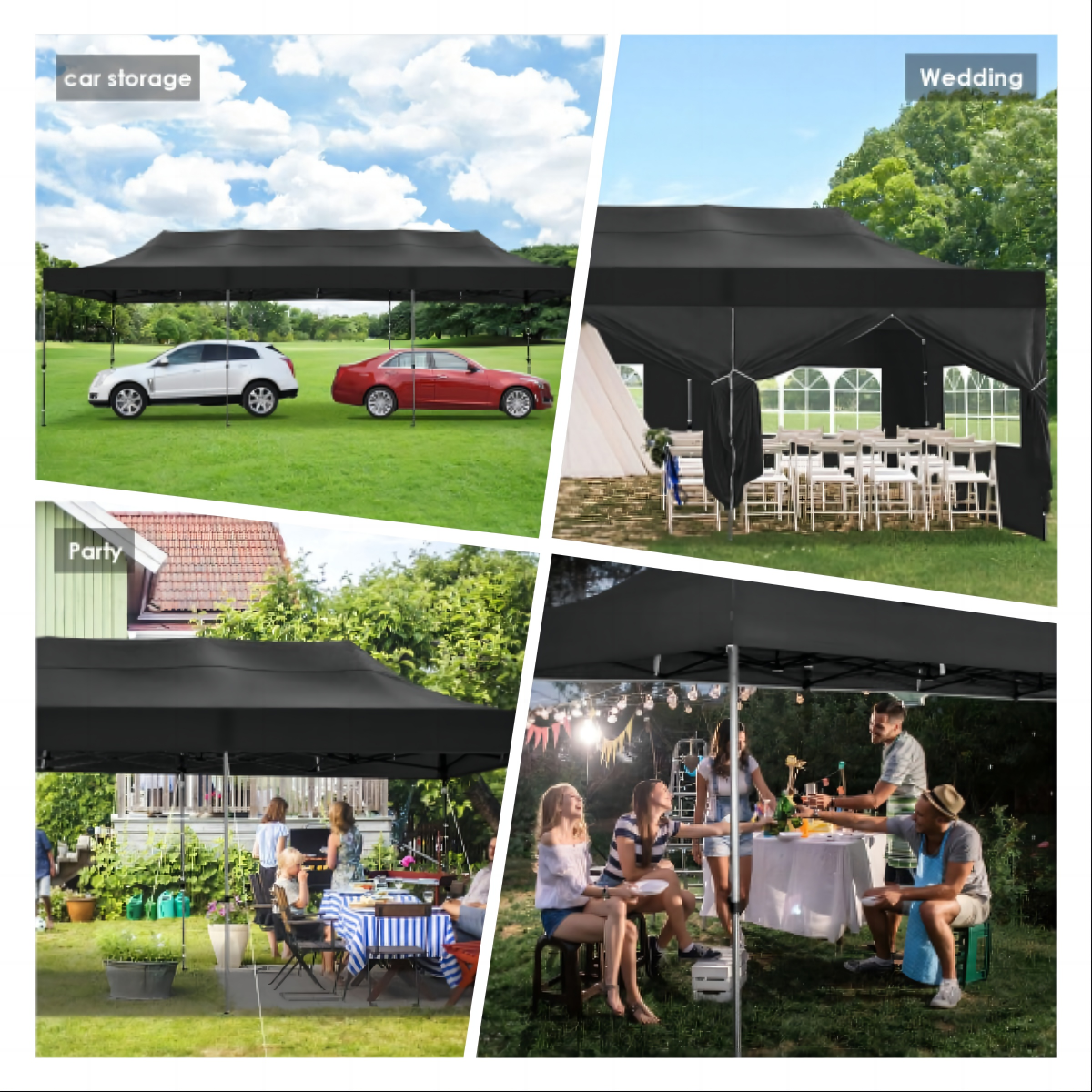 Tents for parties, weddings, BBQ, trade shows, sporting events, disaster relief or any outdoor event. Waterproof canopy gazebo are commonly used in commercial areas, playgrounds, patios, beaches, farms, gyms, etc.