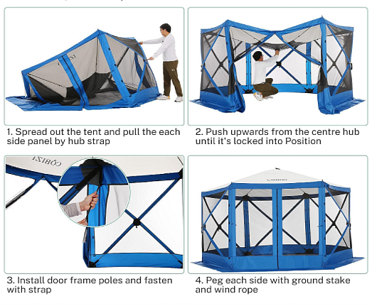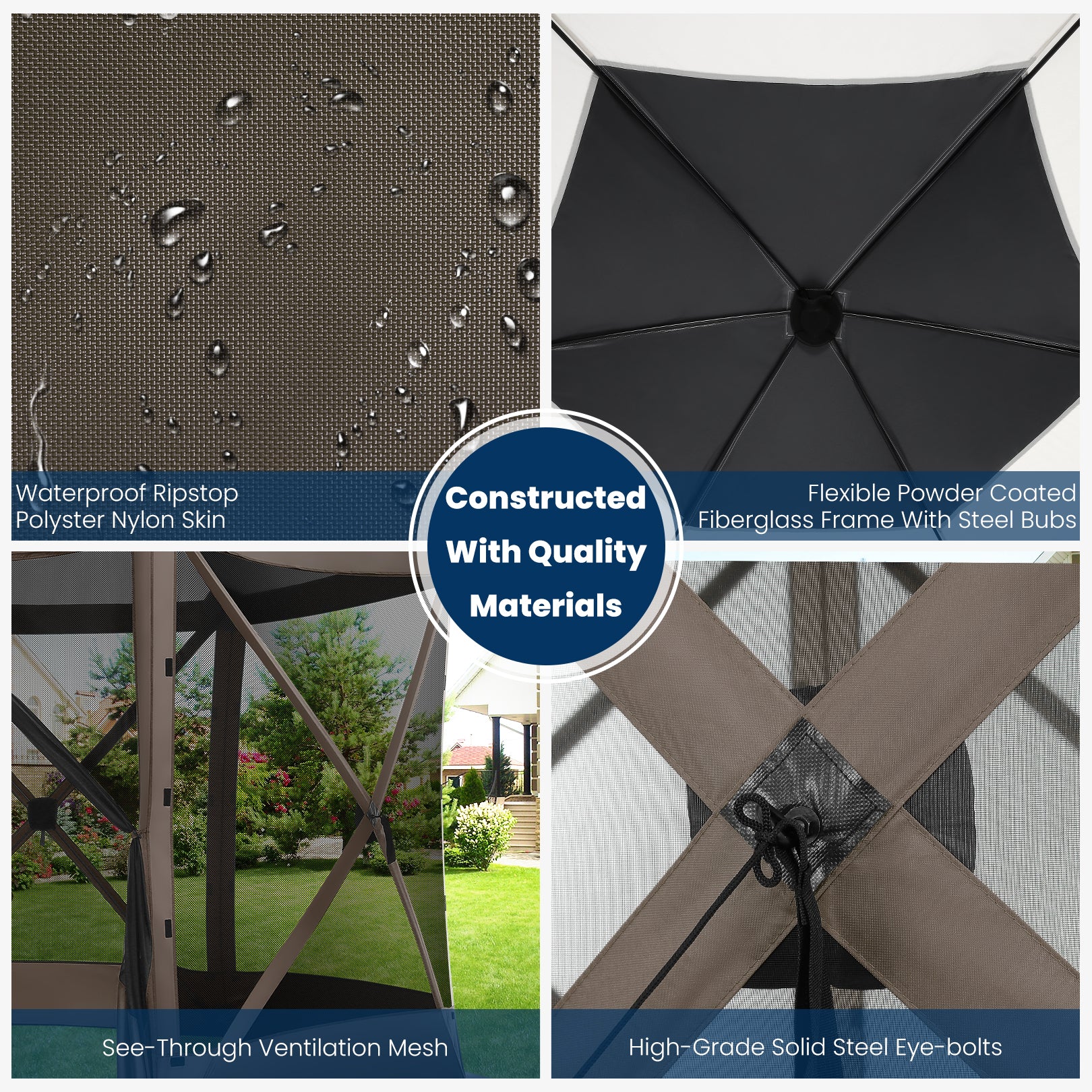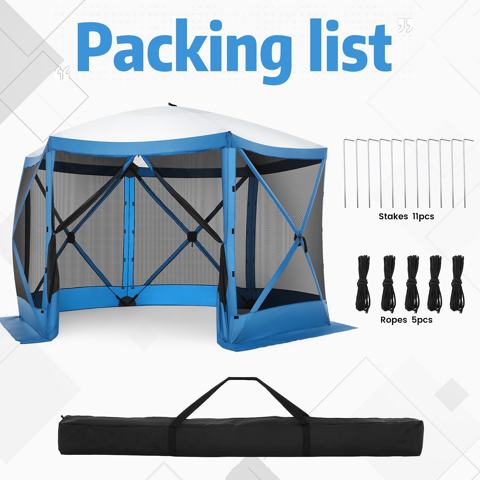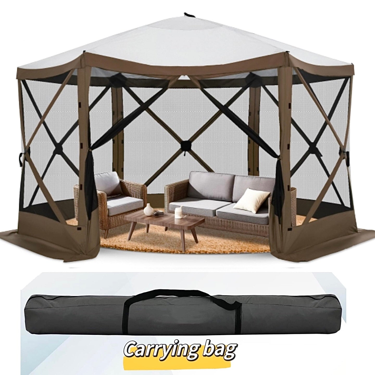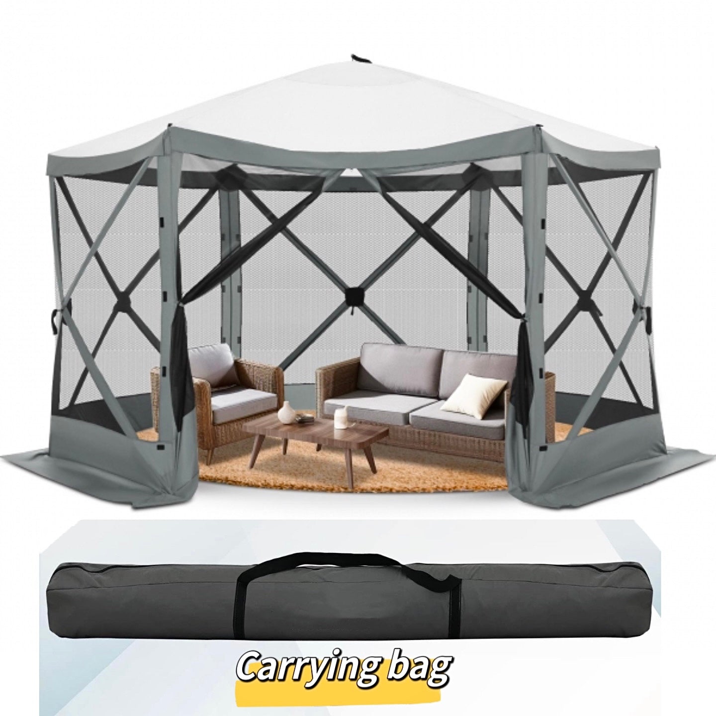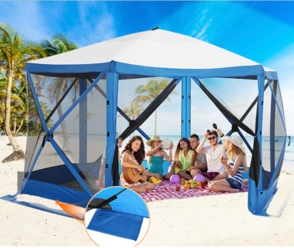 Huge Space & VentilatedRoom for up to 8-10 people - measures 90.6" high and 140" hub-to-hub. Huge interior space for patio furniture and BBQ grills inside. Provides ample space to meet and gather in the wild.Best Space in garden, backyard or during outdoor travels for party, afternoon tea time or picnic.