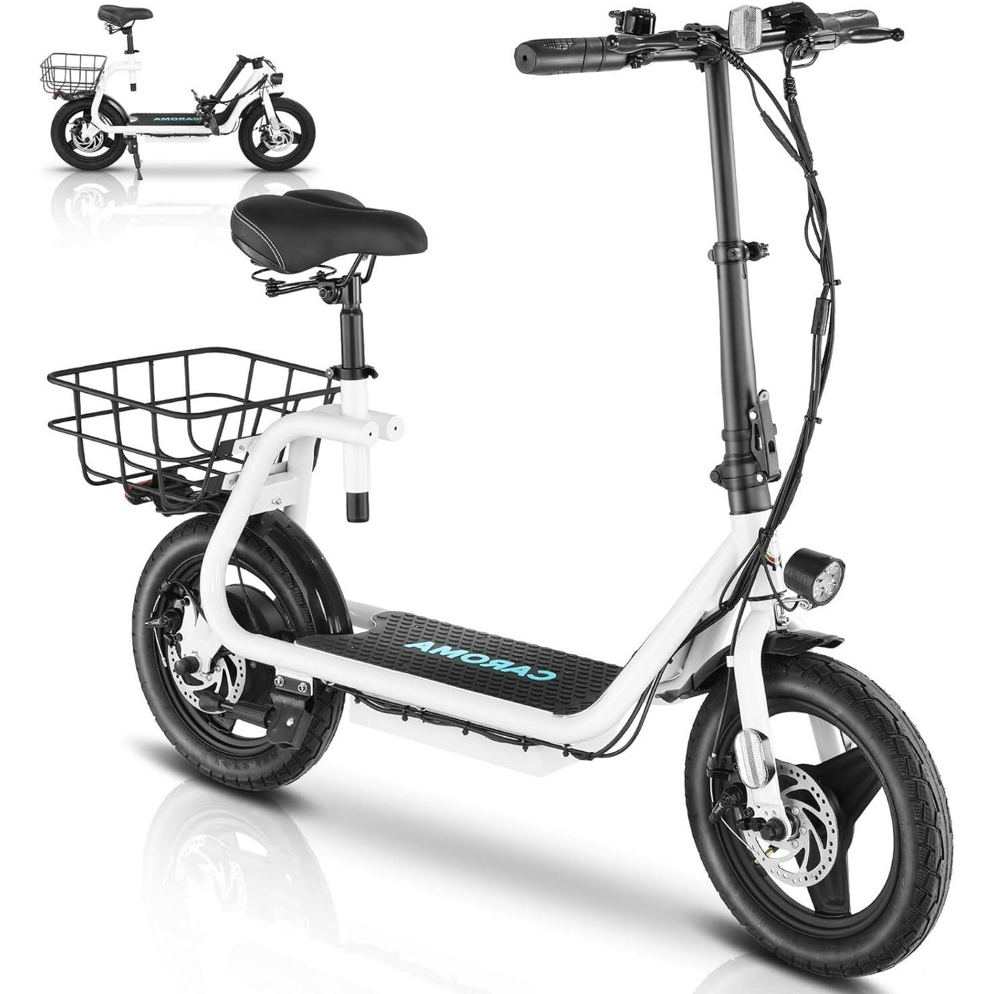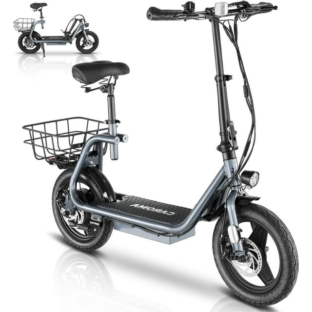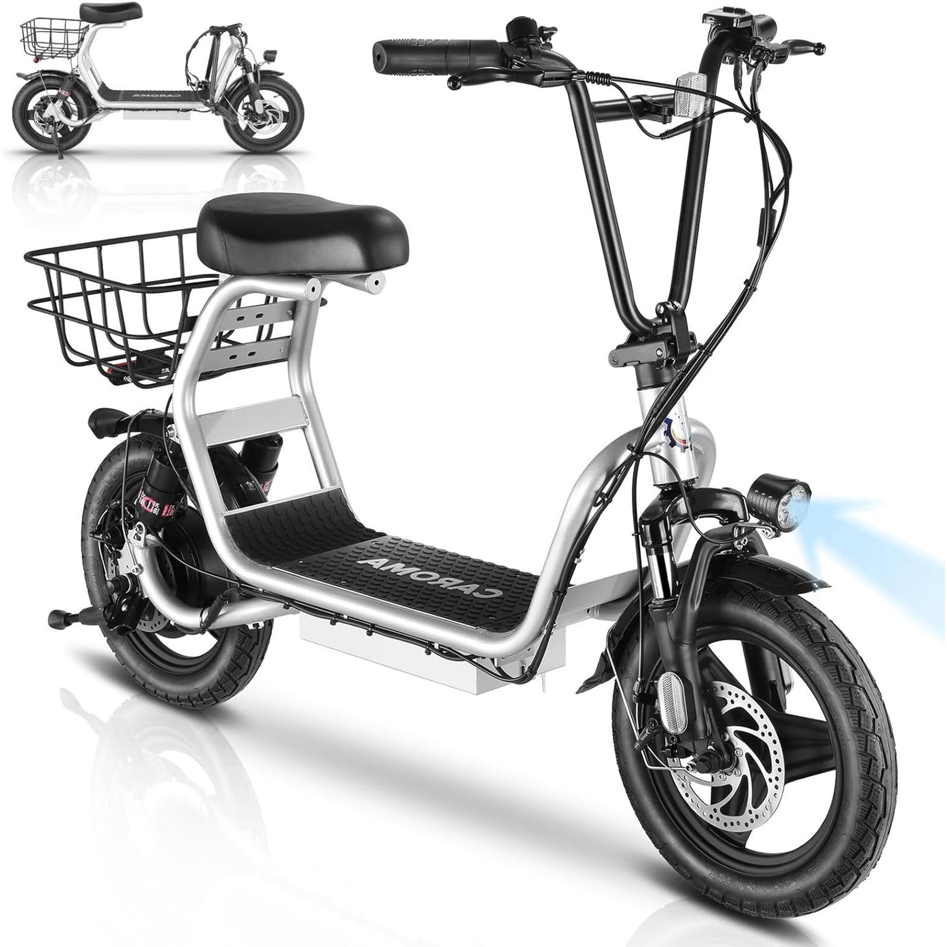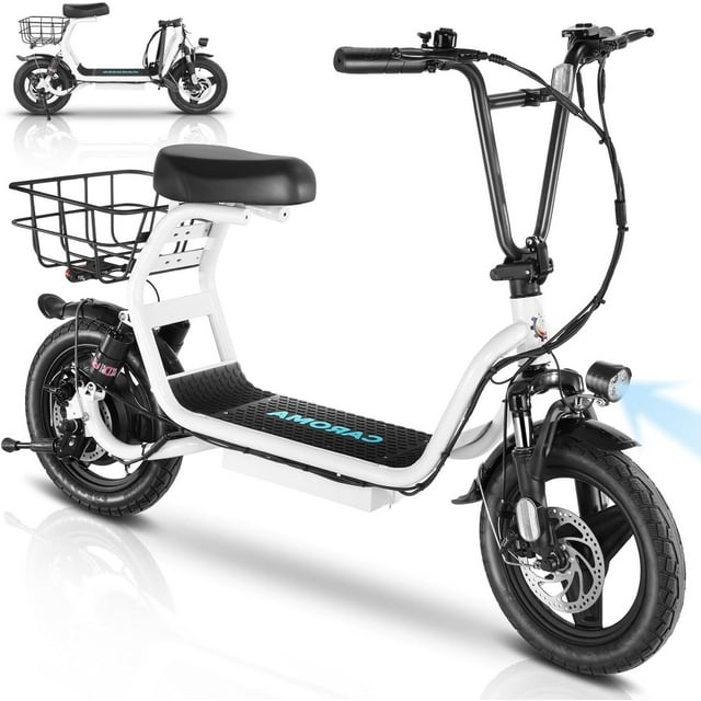 The Caroma P1 is our new fun-to-ride short commute e-scooter. This electric bike for adults and Teens ages 14 and up is capable of speeds up to 20 MPH and has a 25-mile range on a full charge. It is designed to provide a comfortable and convenient mode of transportation for adults, this scooter is perfect for daily commutes and short trips around town.