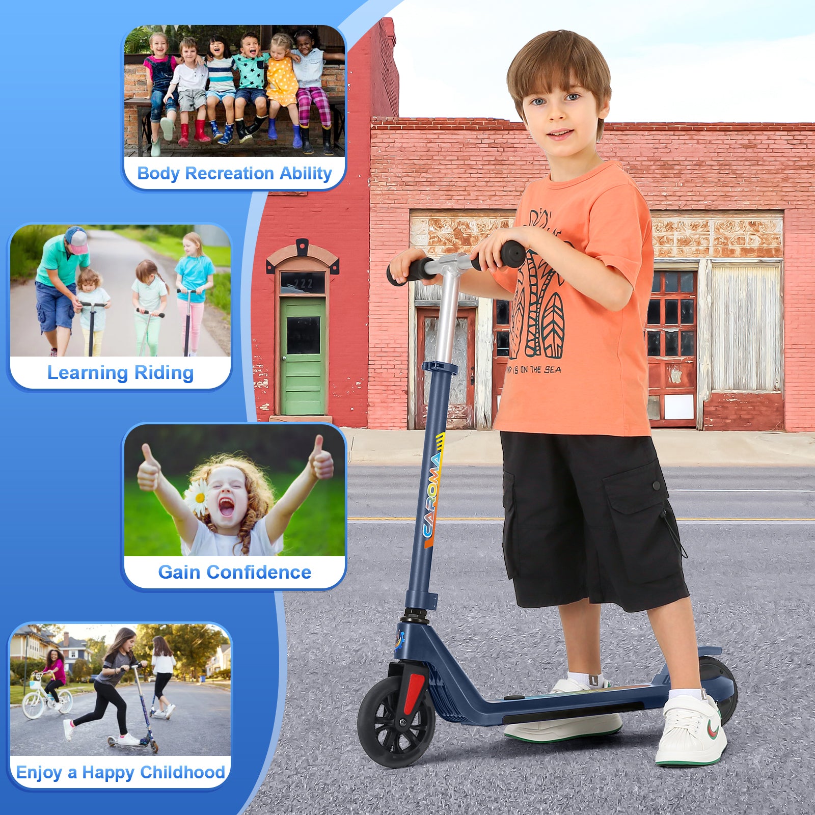 Caroma Electric Scooter , 120W Motor, 10 mph, 80 mins Ride Time, Adjustable Speed & Height, Colorful Lights, LED Display,Ideal Gifts for Kids Ages 6-14