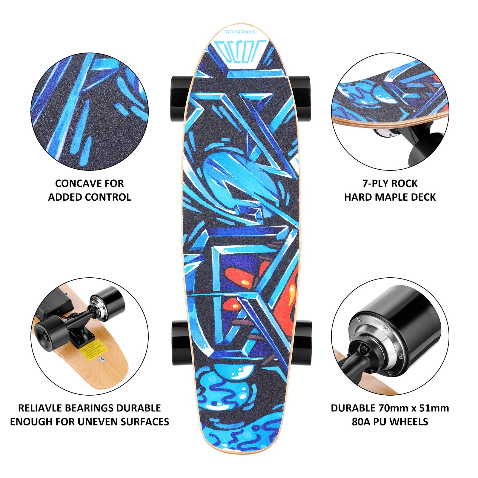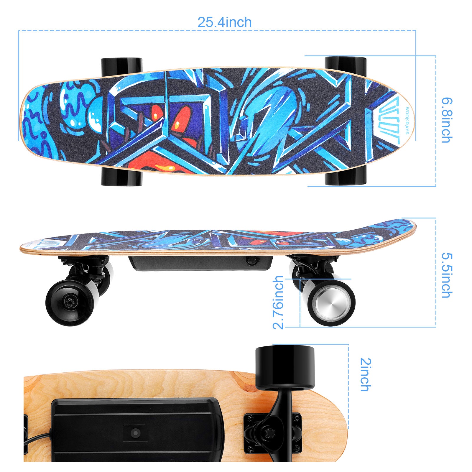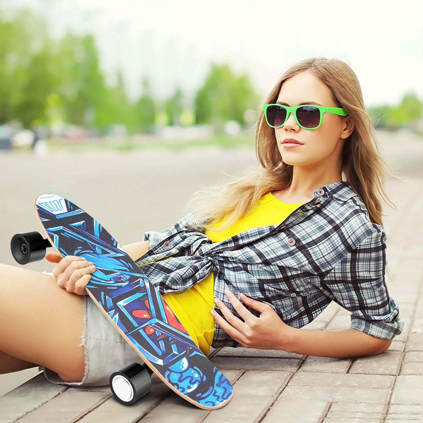 Caroma Electric Skateboard with Wireless Remote Control, 350W, Max 12.4 MPH, 7 Layers Maple E-Skateboard, 3 Speed Adjustment for Adult, Teens, and Kids - Blue