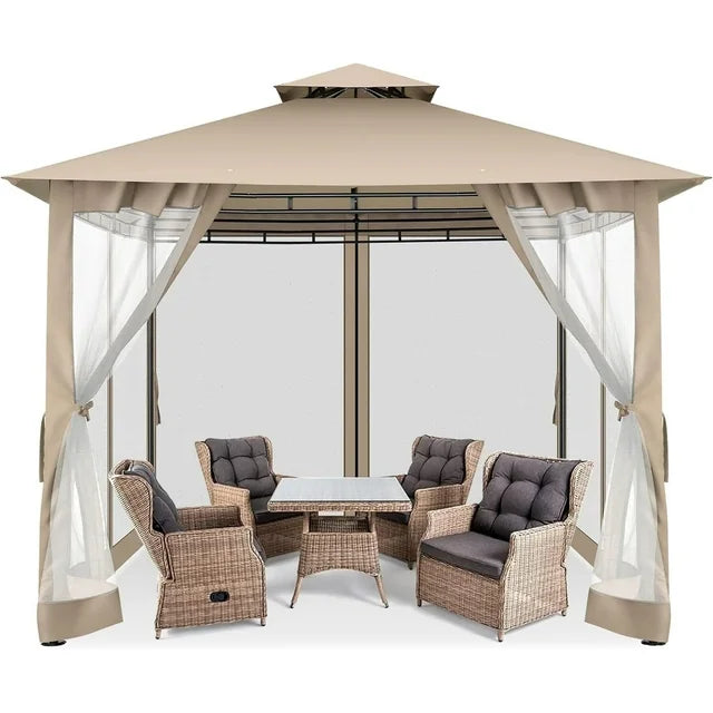 COBIZI 10'x10' Outdoor Gazebo Canopy, Canopy Tent with Mosquito Netting,Screened Gazebo with Corner Shelf Stable Steel Frame Double Roof Tops,