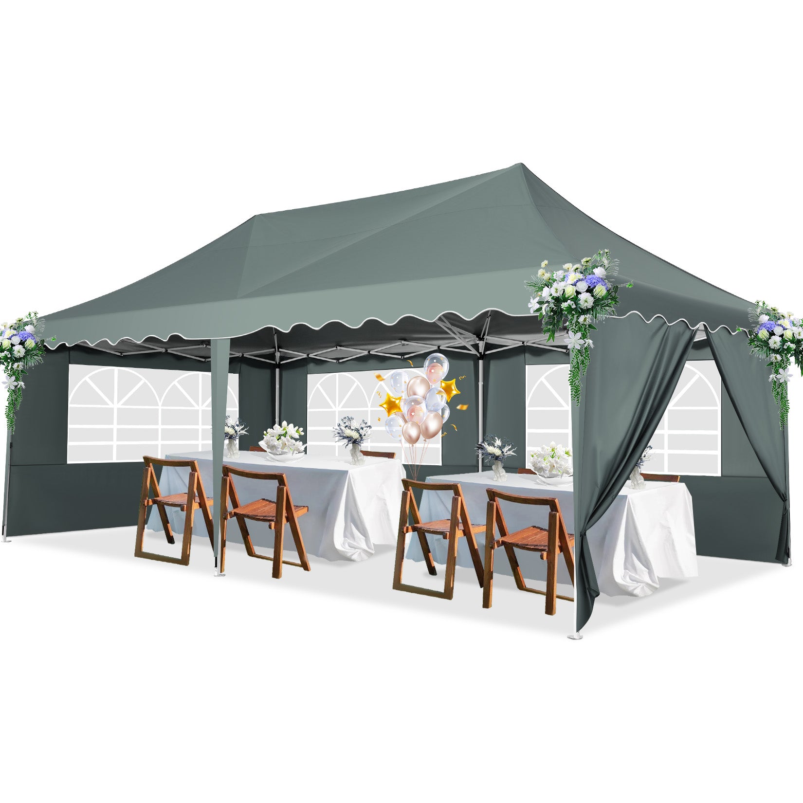 HOTEEL Canopy Tent 10X20 Pop Up Hollow Tent with 6 Removable Side Walls,Outdoor Event Party Canopy,Instant Portable,Suitable for Parties,Weddings,Camping and Beaches,with Wheeled Bag,Grey Green