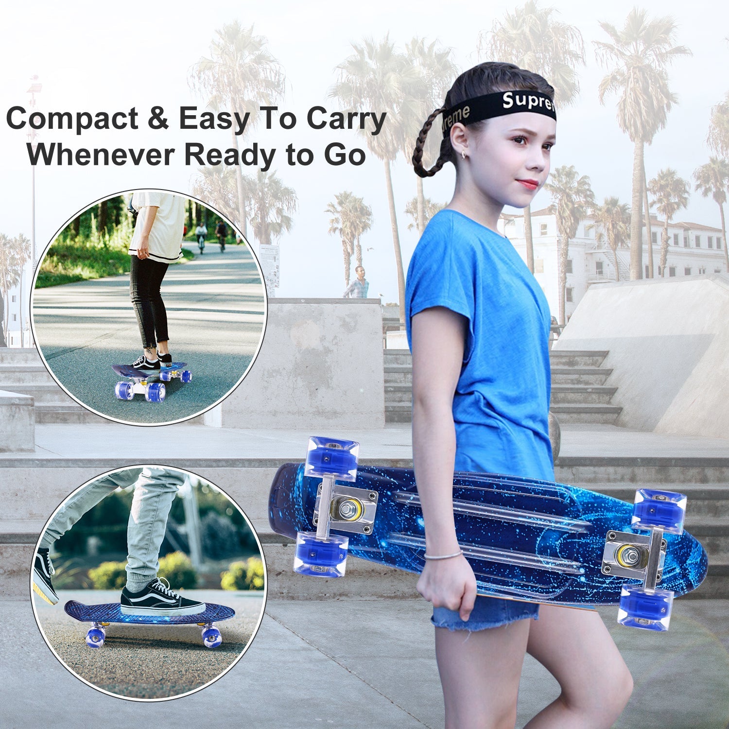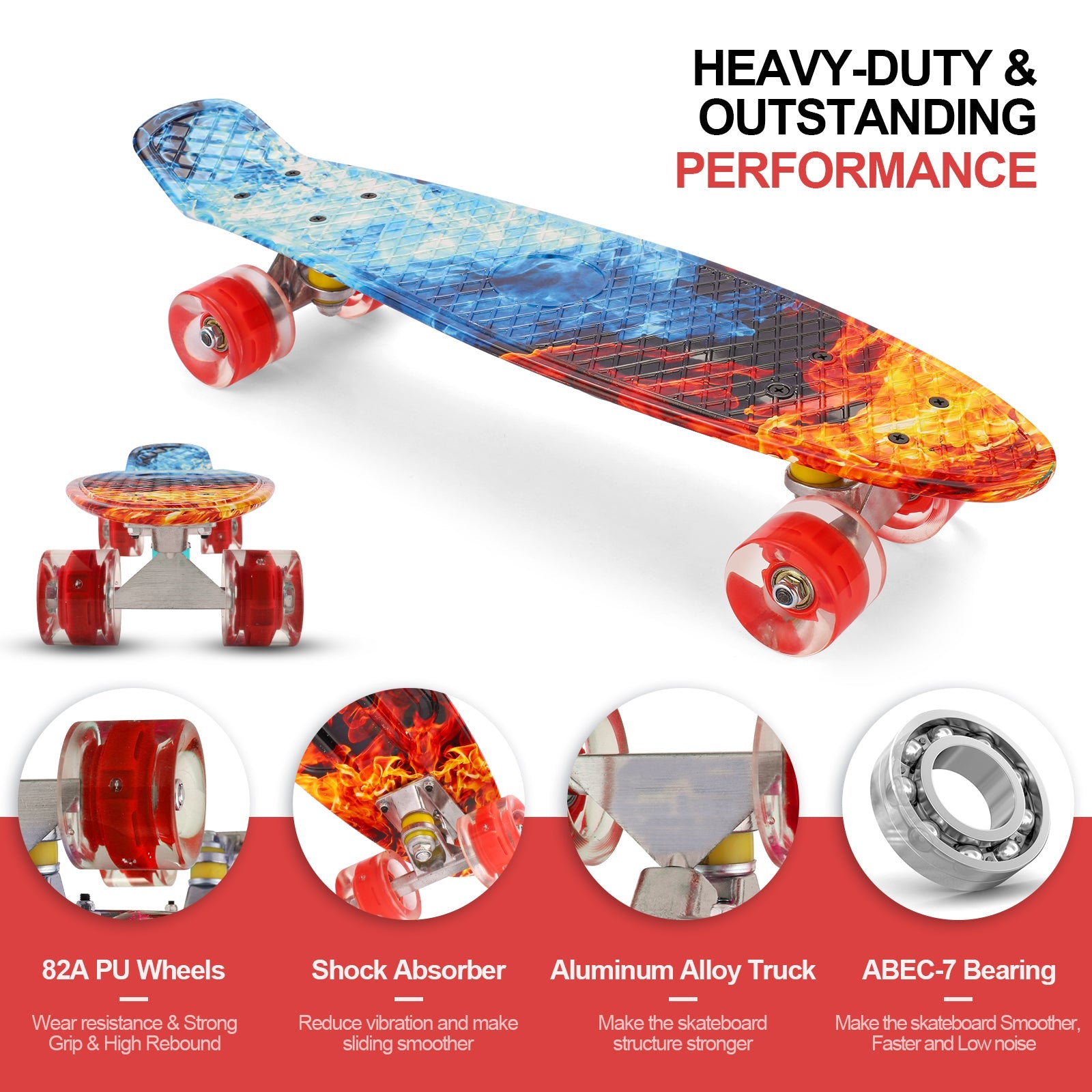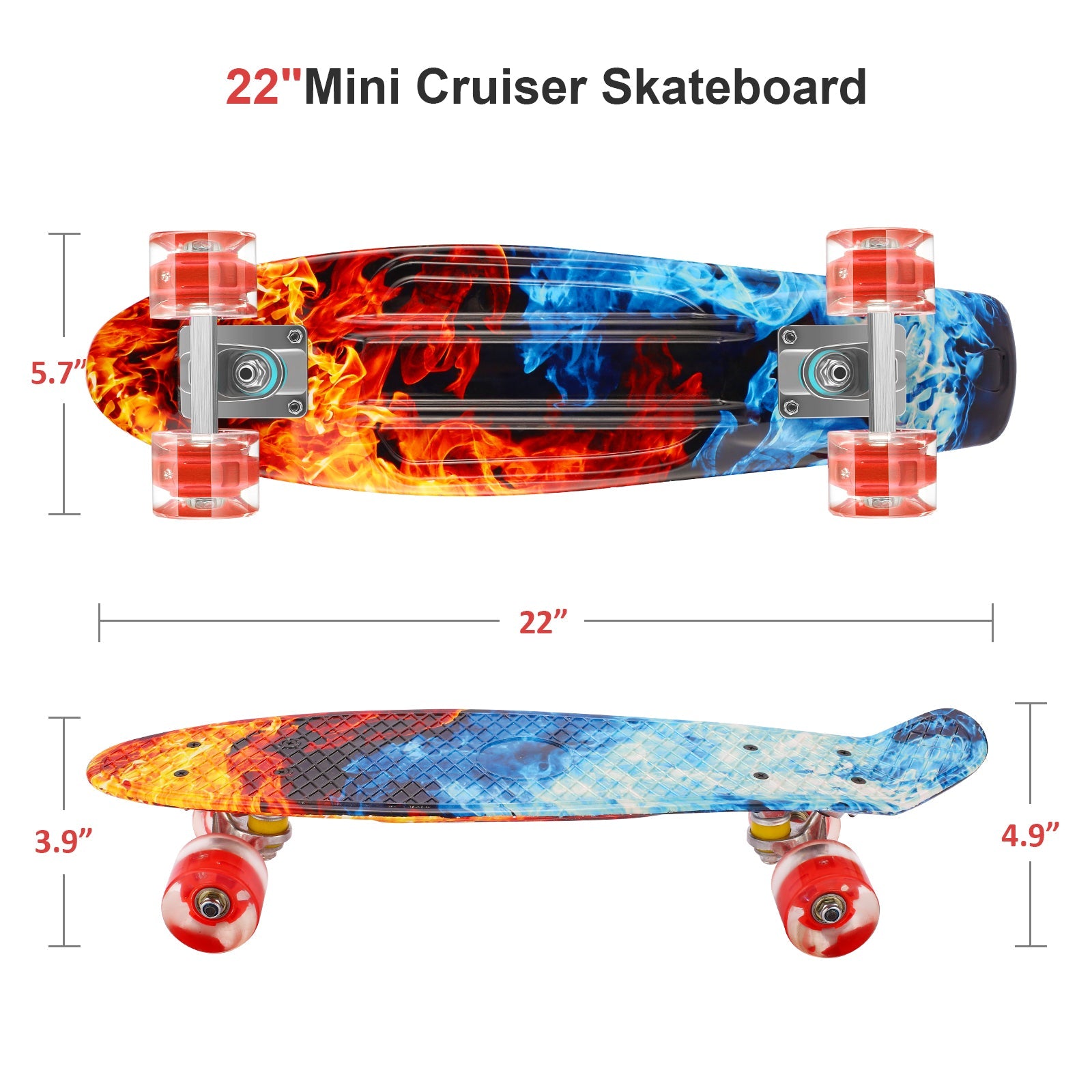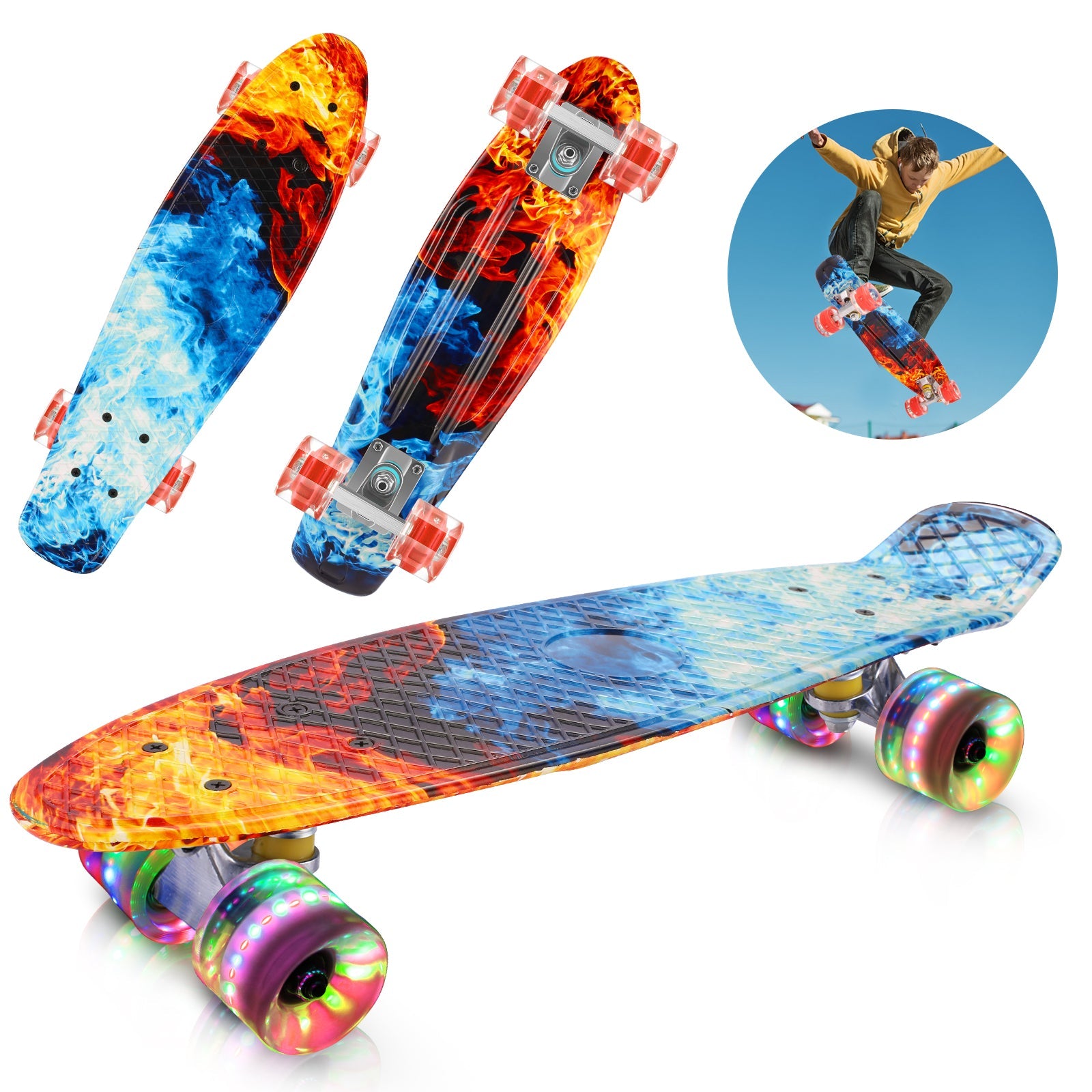 Caroma 22 Inch high-Speed 4 LED Flashing Wheels Cruiser Skateboard