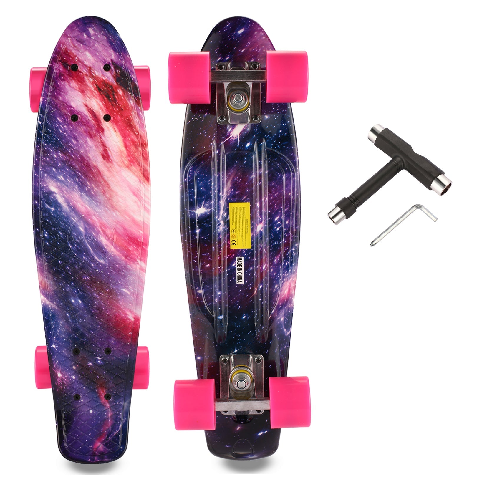 - The 6 inch plastic board assemble with aluminum alloy trucks, adding stability and comfort to your riding experience, anyone is able to ride this board, and perform your skateboarding tricks with ease.