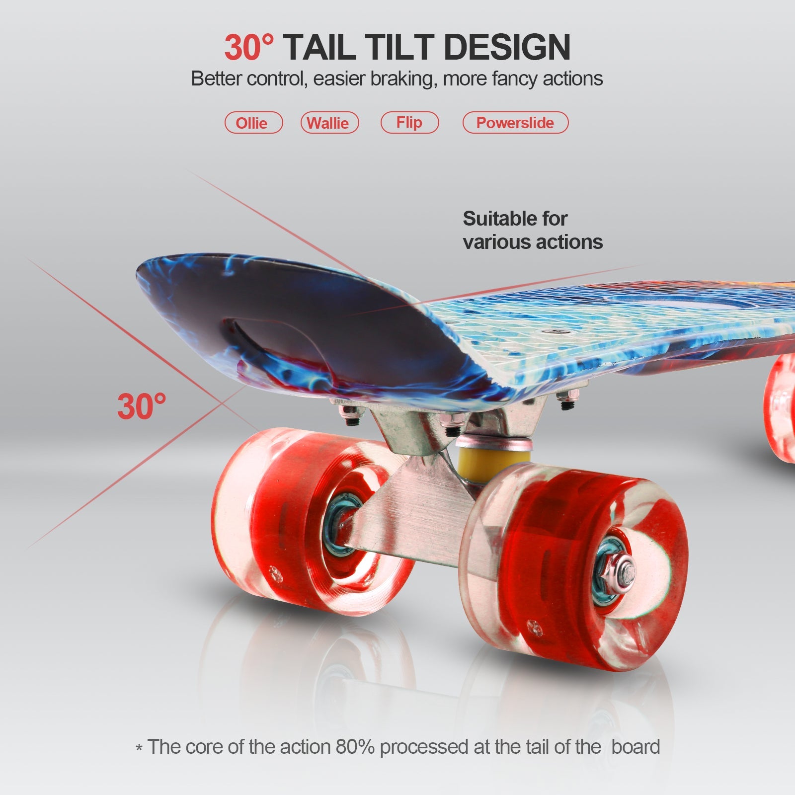 - The deck is constructed with durable and bendable polypropylene to last long, adding stability and comfort to your riding experience,max support weight up to 220lbs.