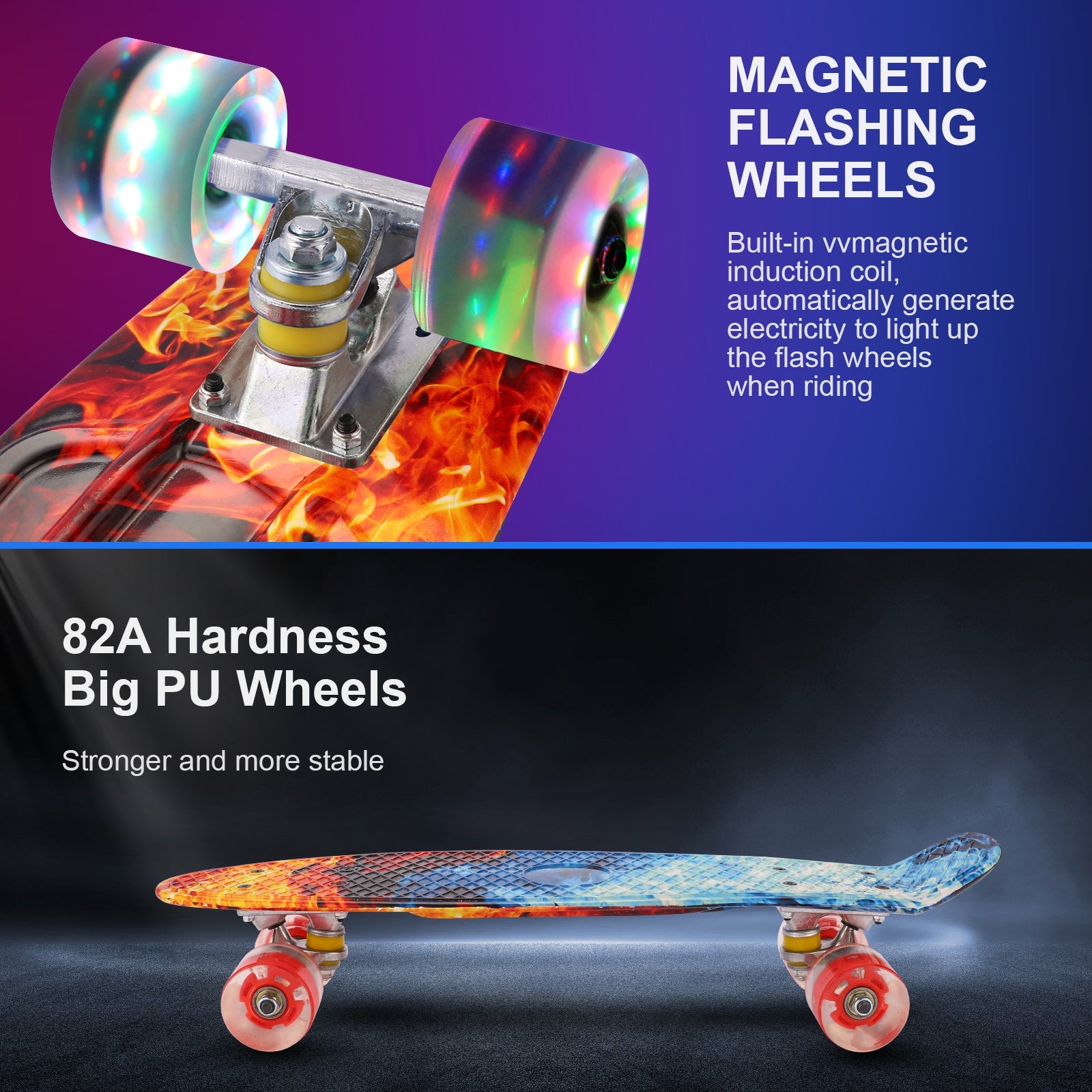 - PU flash wheels make riders safer in dark places.