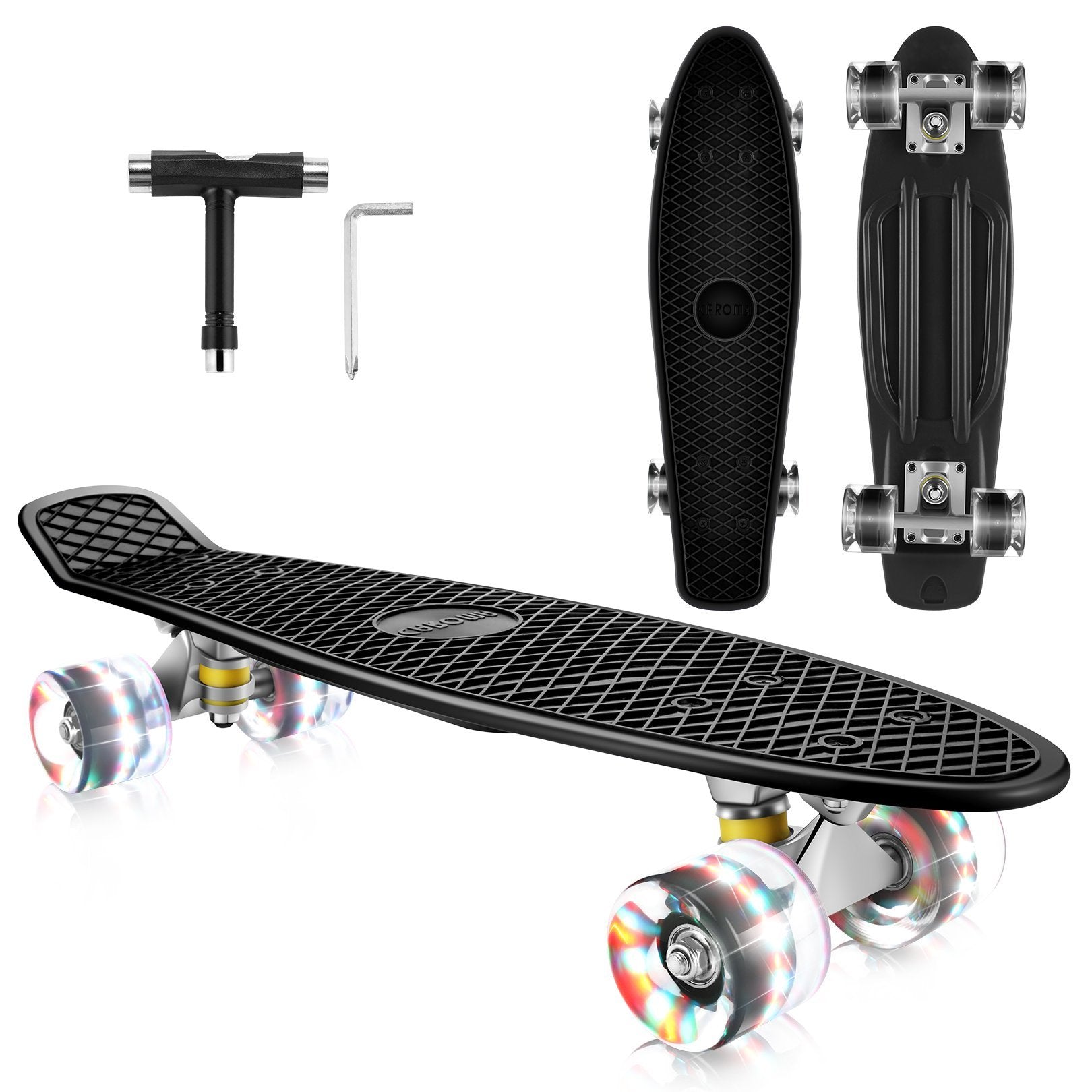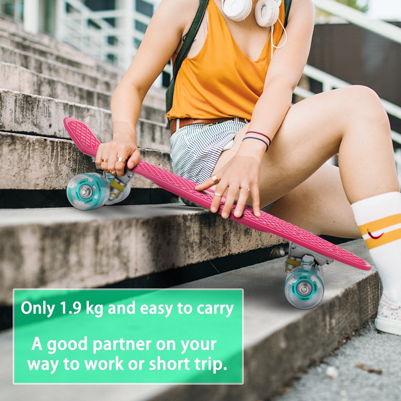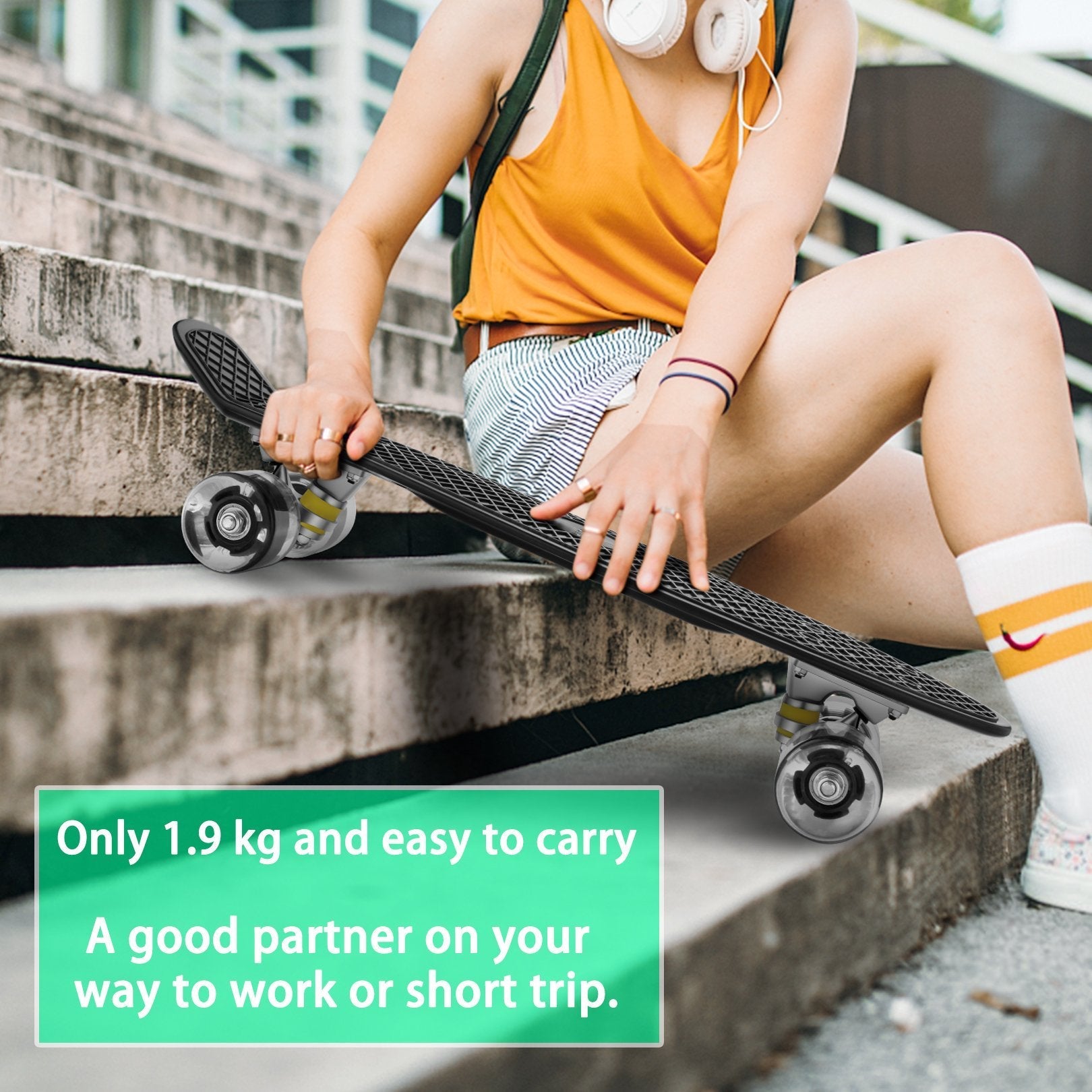 Caroma 22 Inch LED Flashing Wheels Retro Complete Cruiser Skateboard