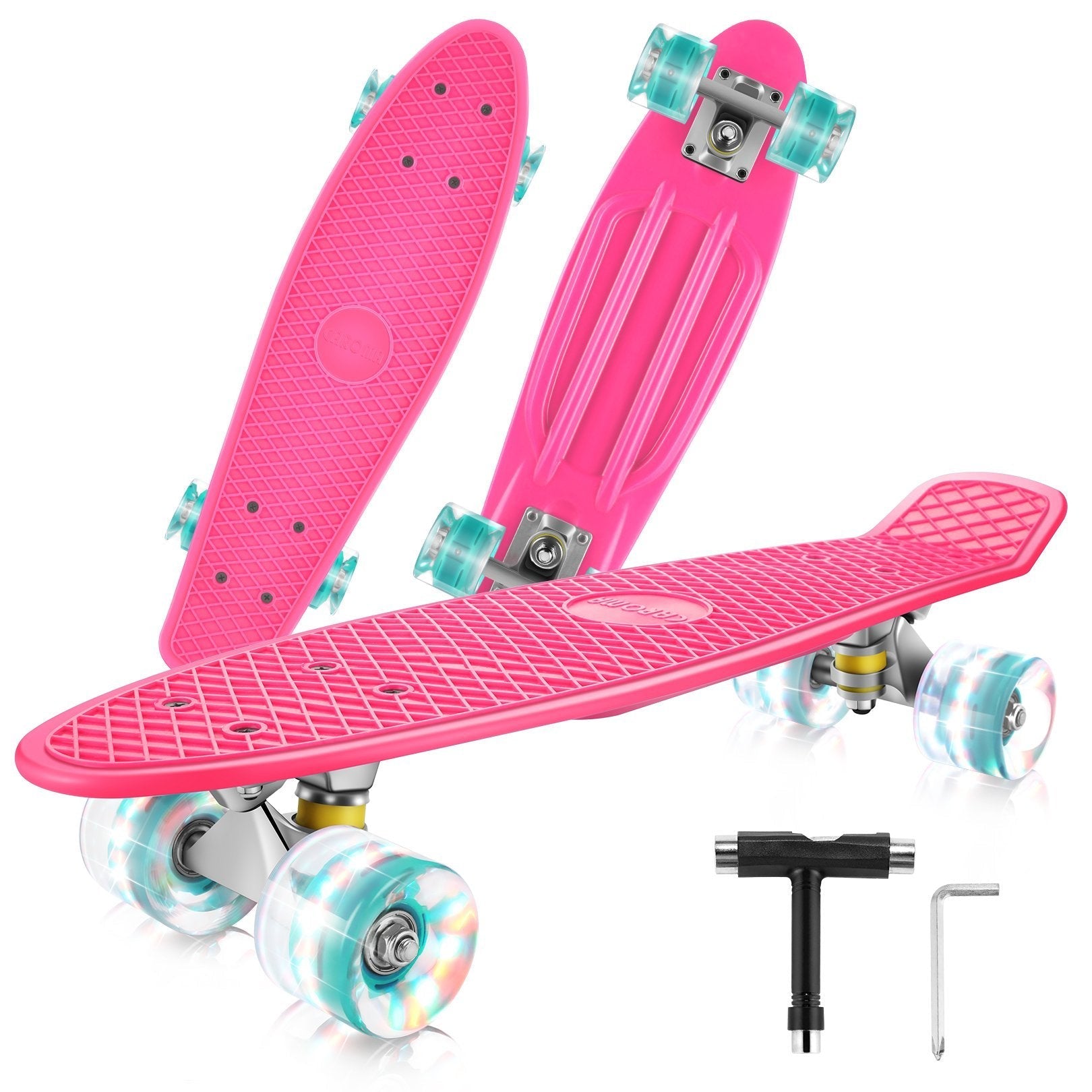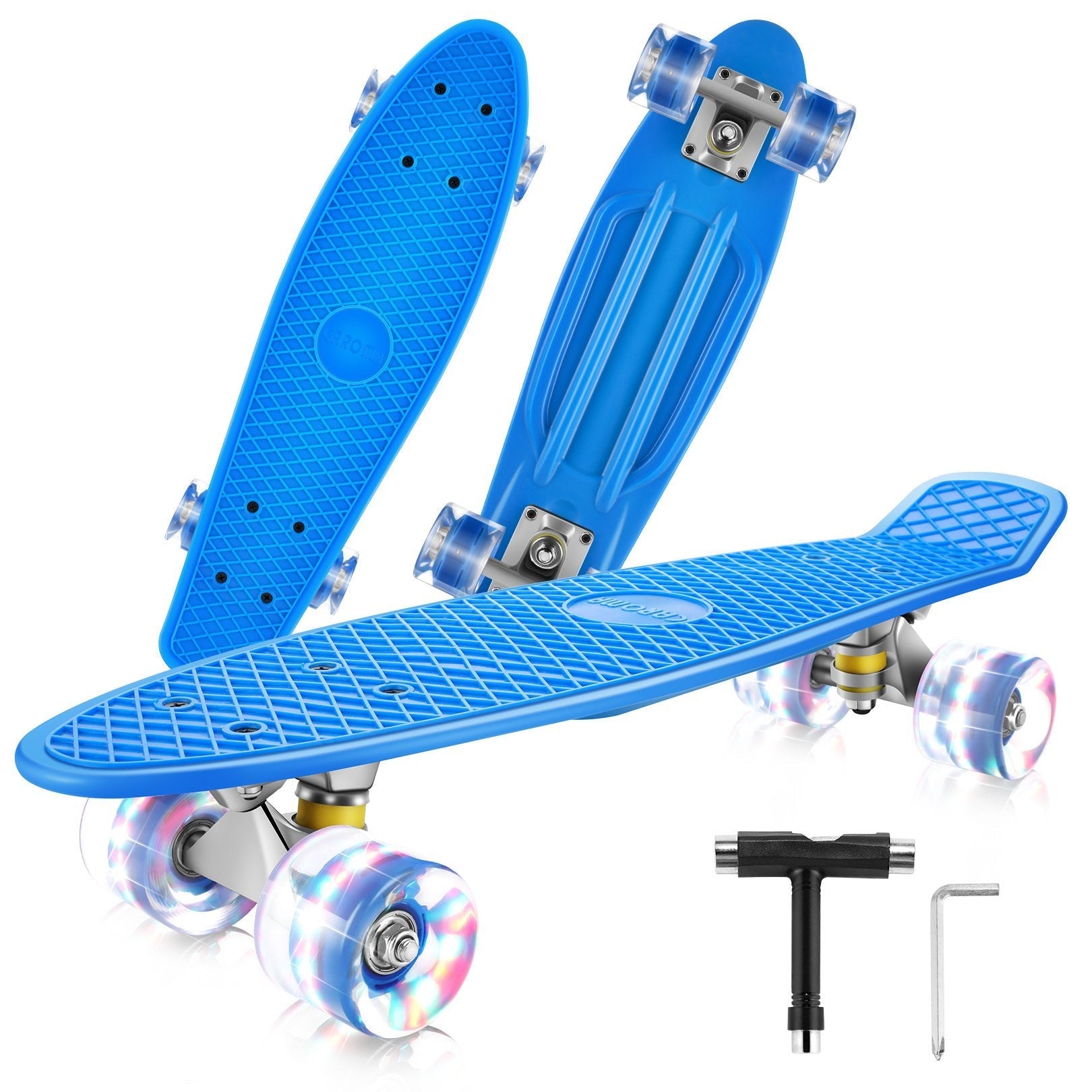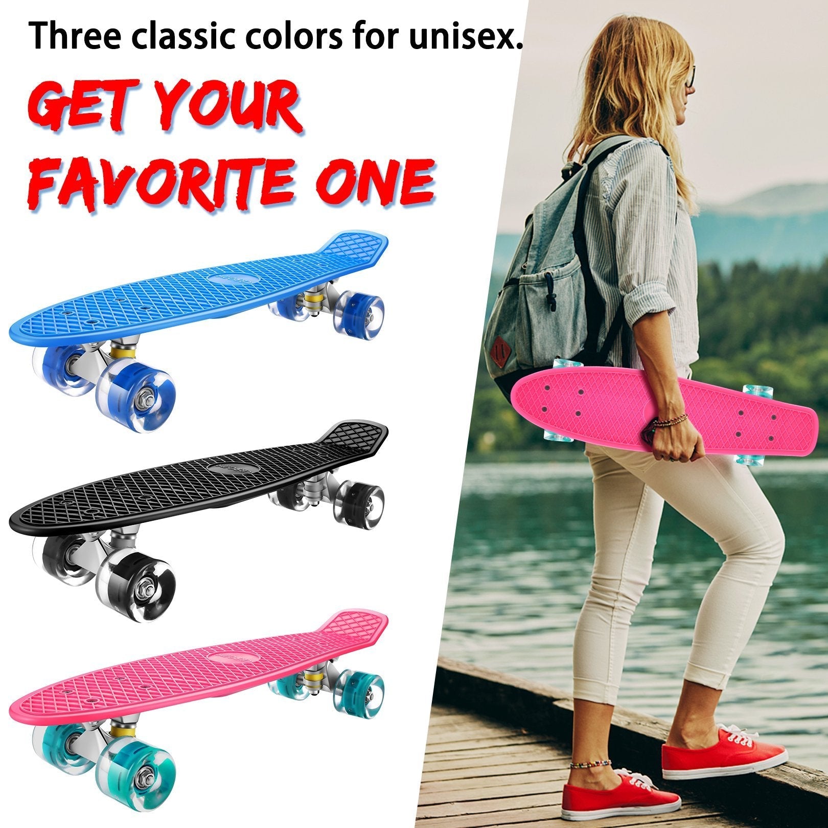 Caroma 22 Inch LED Flashing Wheels Retro Complete Cruiser Skateboard