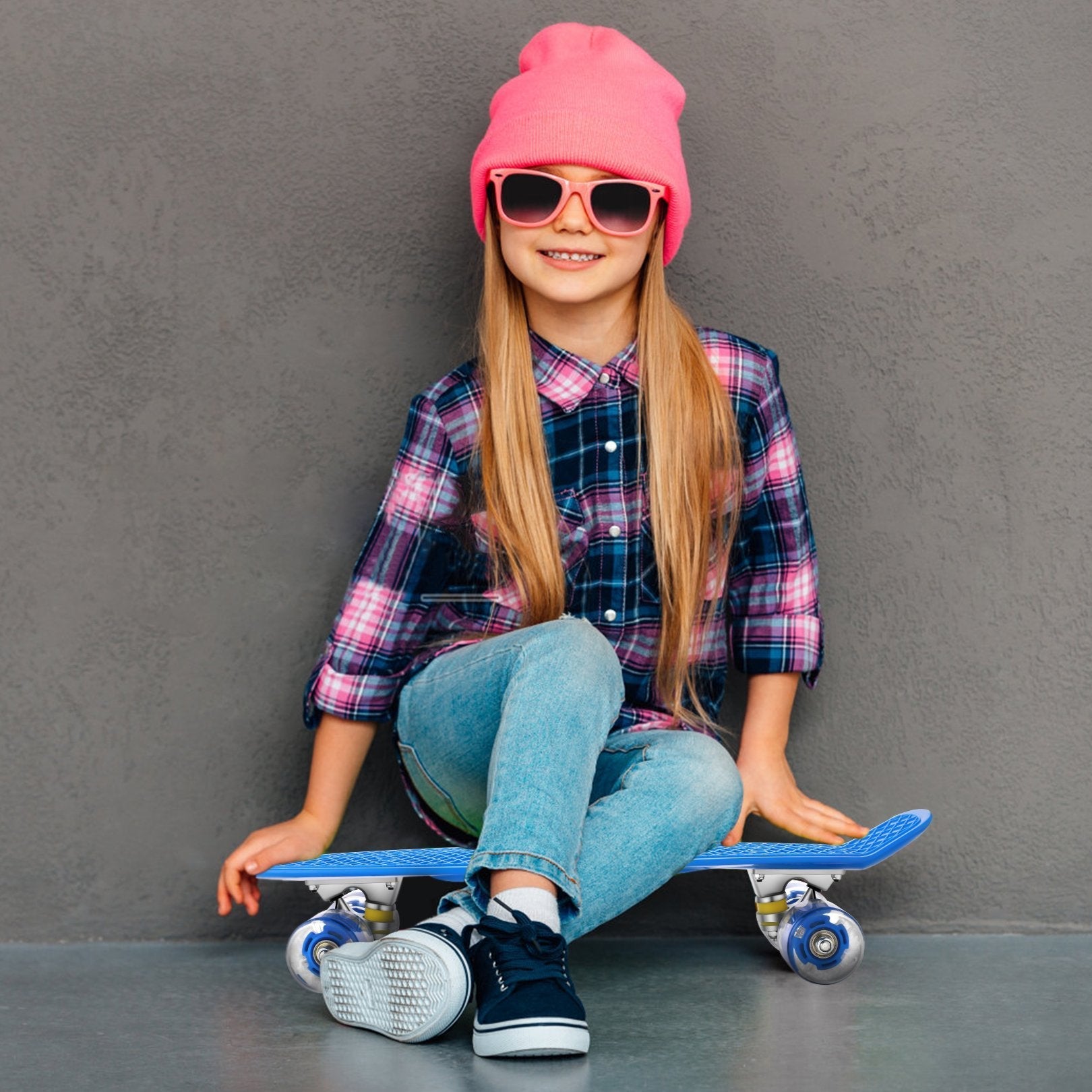 - The 22 inch plastic board assemble with aluminum alloy trucks, adding stability and comfort to your riding experience, anyone is able to ride this board, and perform your skateboarding tricks with ease.