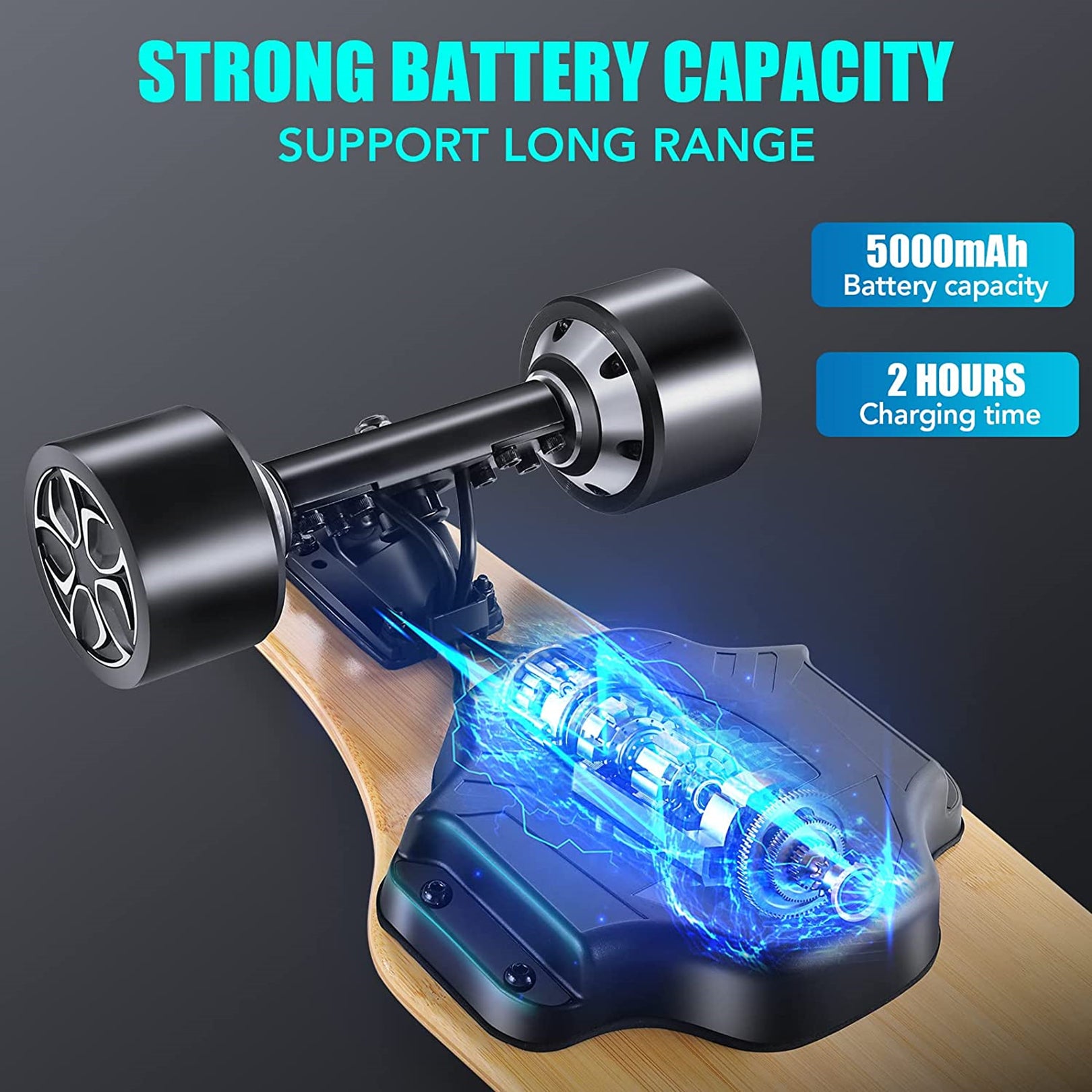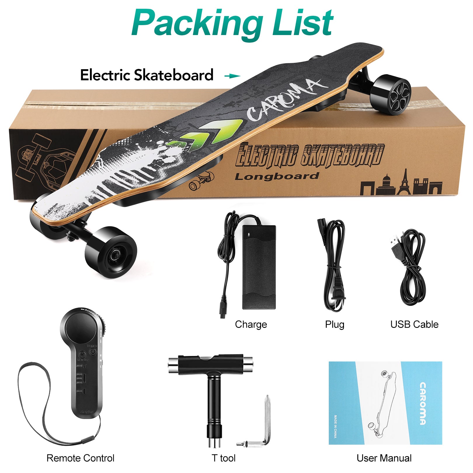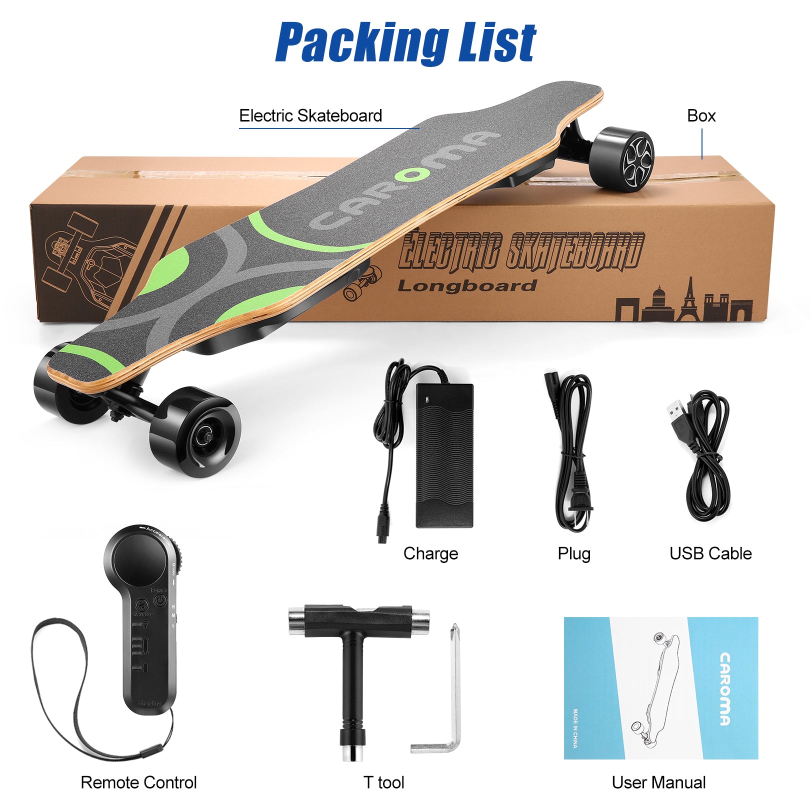 - [Certified 5000mAH Long-Range Battery ] : Caroma electric skateboards adopted UL 2272 certified battery with a max range of 16 miles; A secured 36V, 5000Ah Lithium-Ion battery pack (battery included) which can be fully charged within two hours.