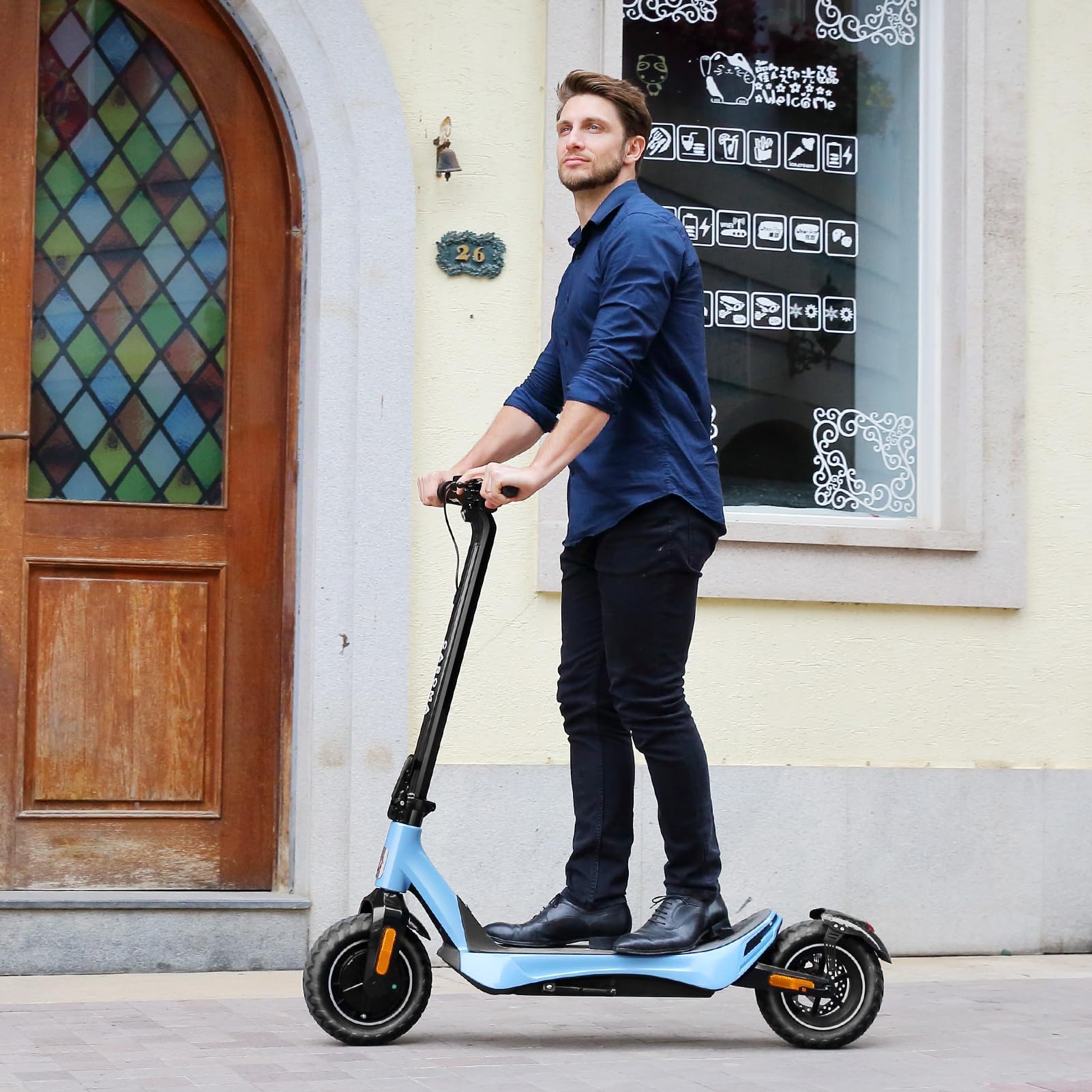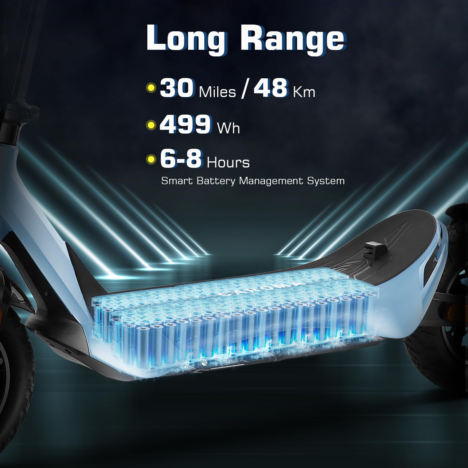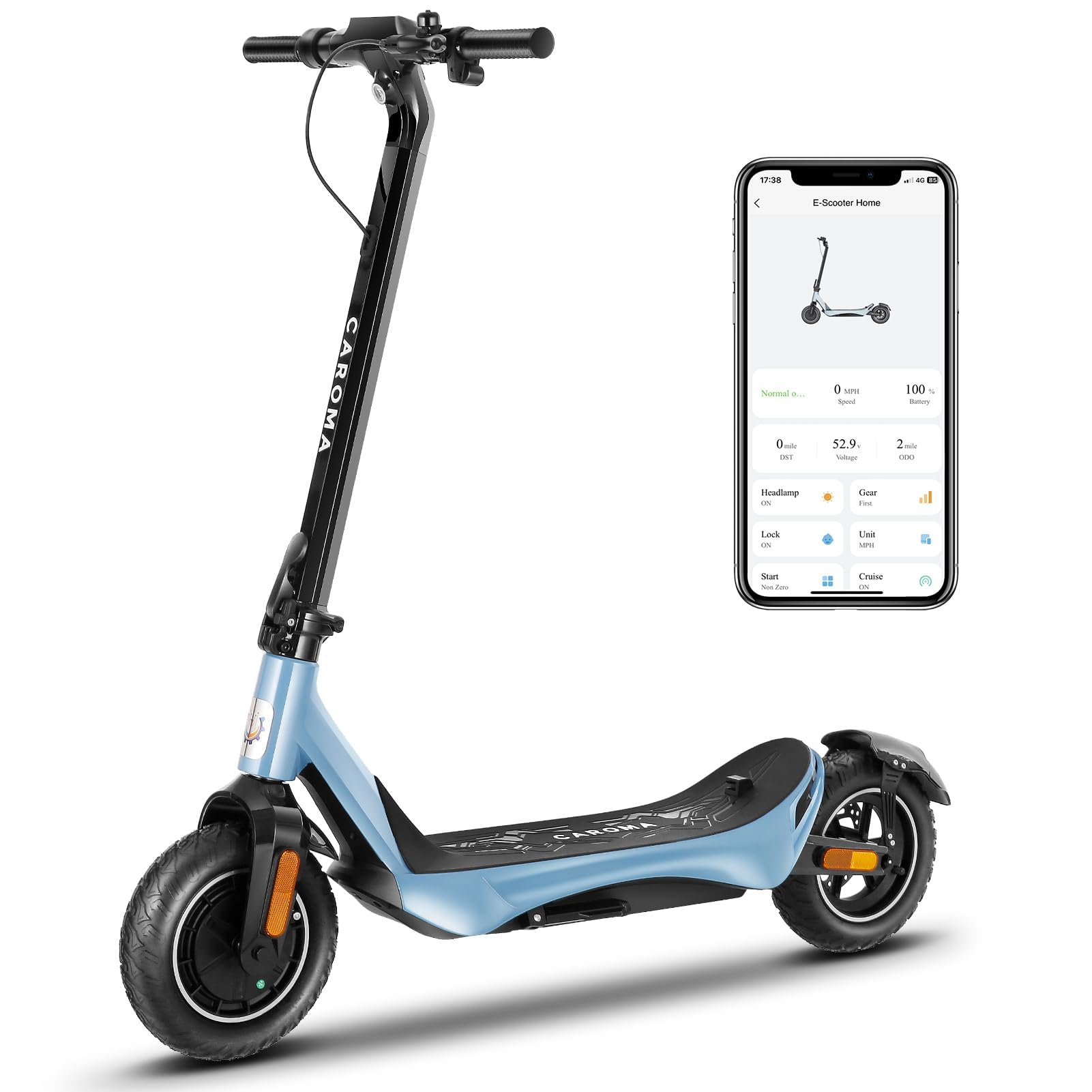 【Upgraded 500W Powerful Brushless Motor】 Caroma C1 electric scooter adults is equipped with a 500W(Peak 800W) powerful motor, which ensures a smooth and comfortable ride, delivers high torque with low power consumption, reaching a top speed of 25 MPH and conquering slopes of up to 30% .
