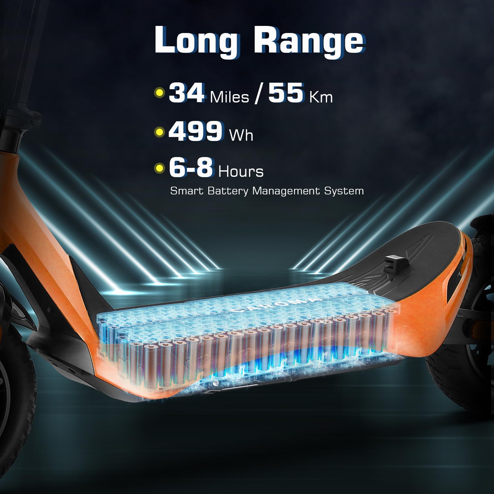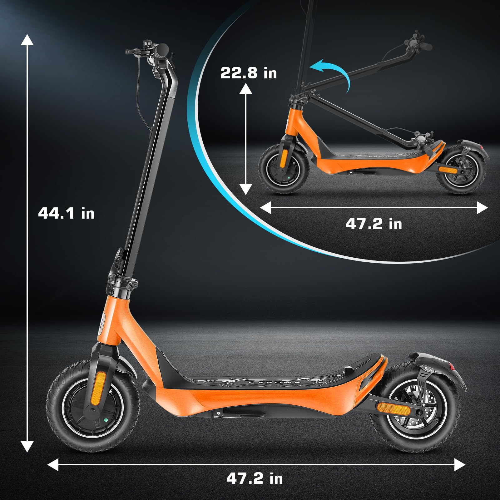 【Upgraded 500W Powerful Brushless Motor】 Caroma C1 electric scooter adults is equipped with a 500W(Peak 800W) powerful motor, which ensures a smooth and comfortable ride, delivers high torque with low power consumption, reaching a top speed of 25 MPH and conquering slopes of up to 30% .