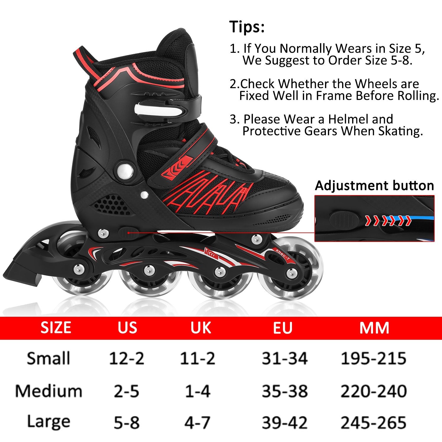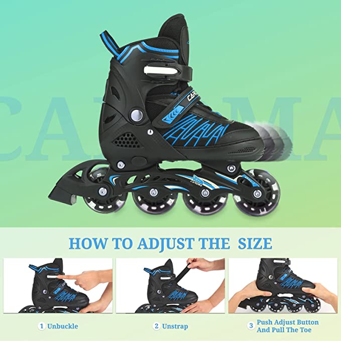 Caroma Adjustable Inline Skates for Girls Boys with Illuminating Wheel