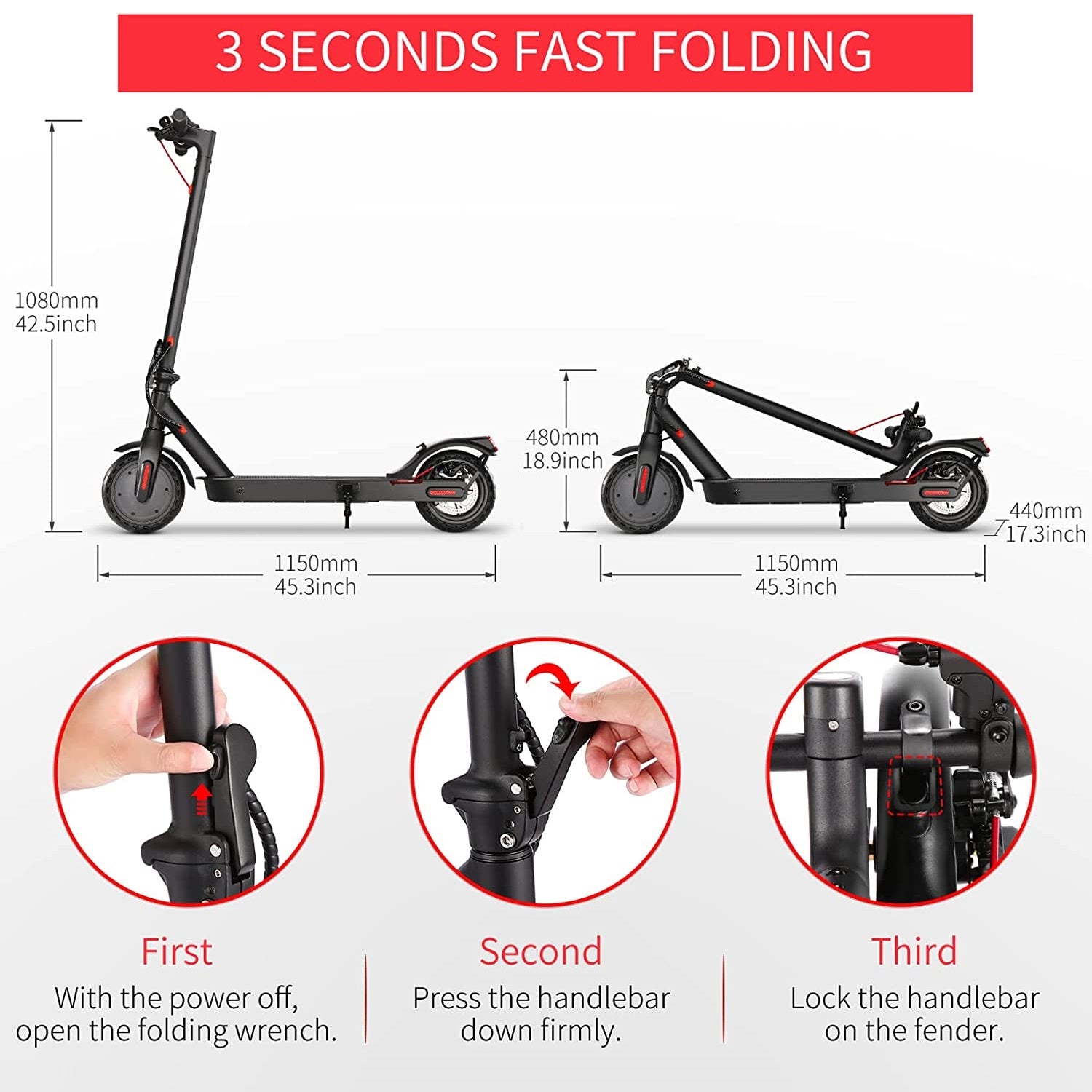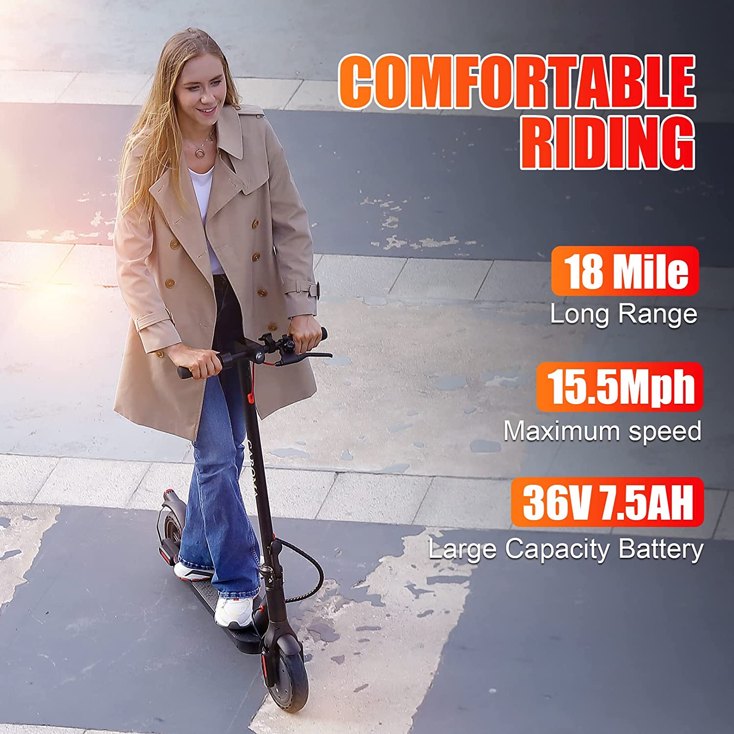 Caroma electric scooter can be folded in 3 steps and can be easily placed in the trunk of your car.
