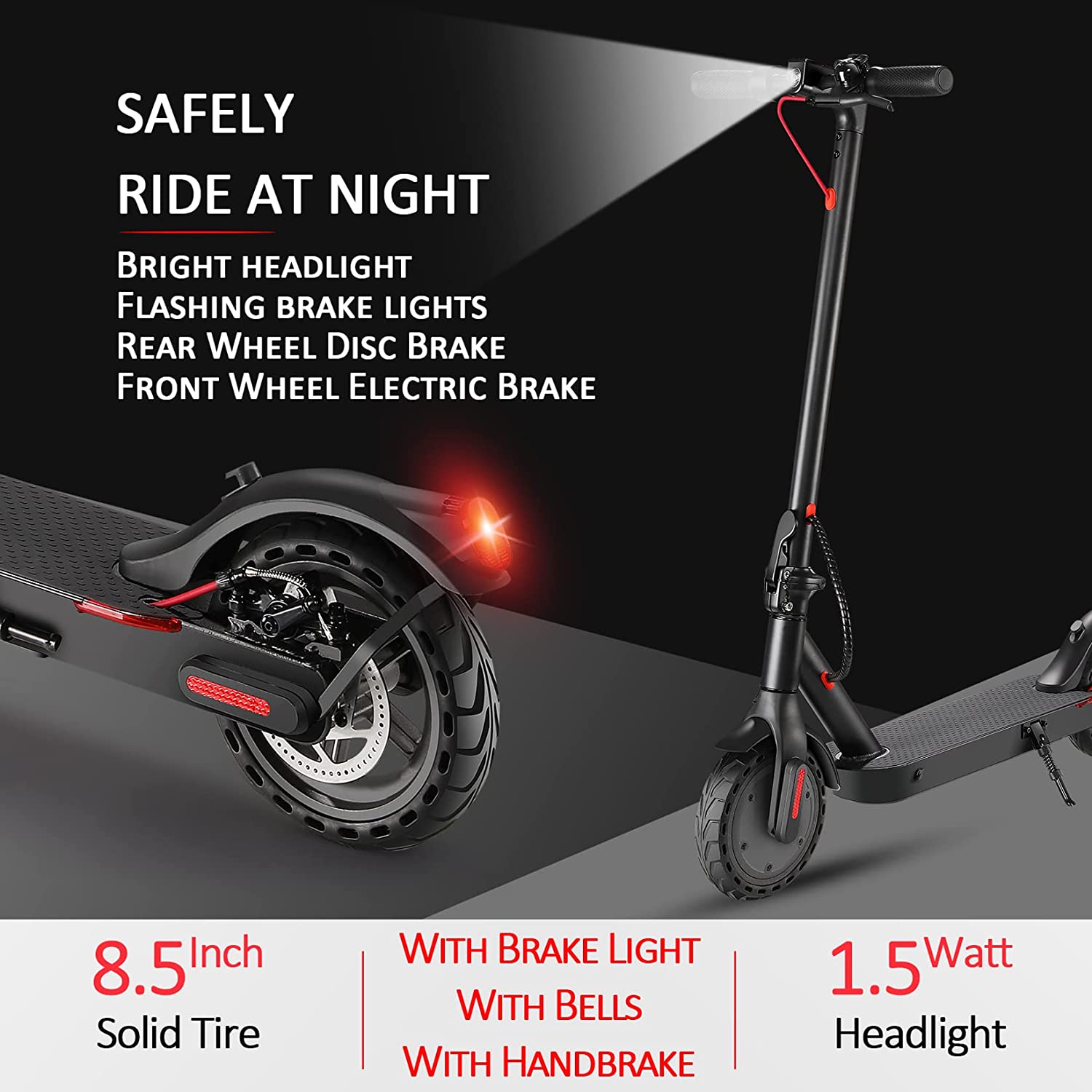 8.5-inch honeycomb tires have great shock absorption, deliver more stability and comfort.