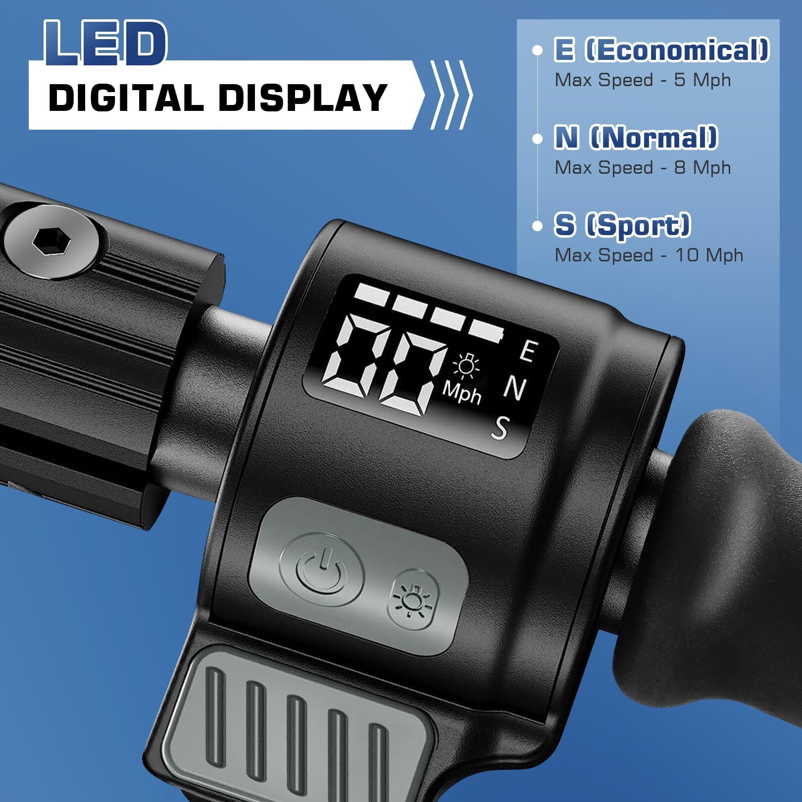 • LED Display: to Show Battery Level, Ride Mode and Speed