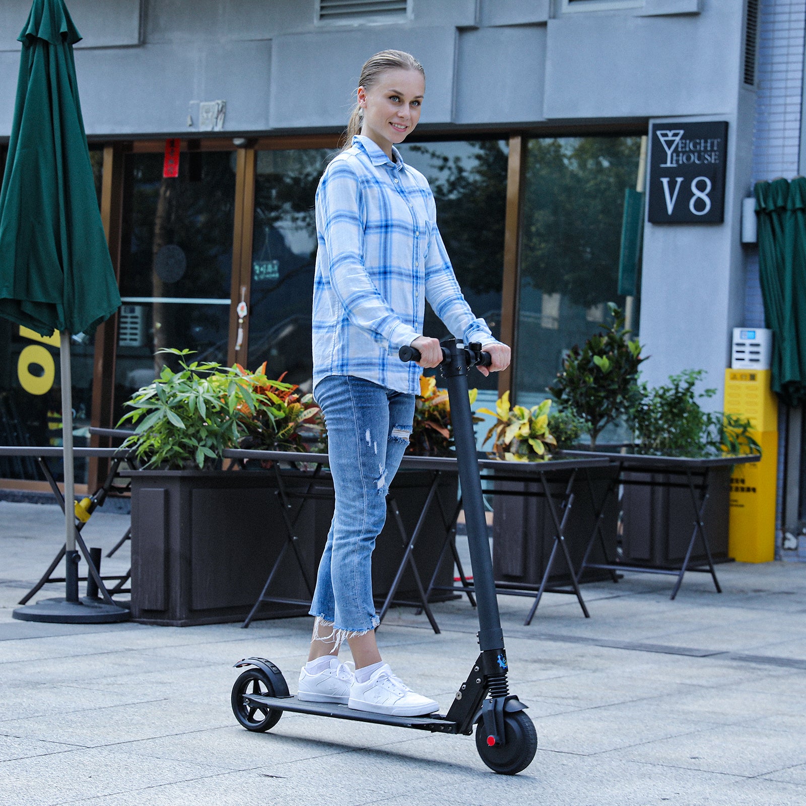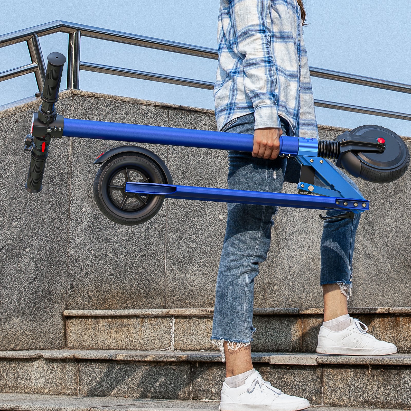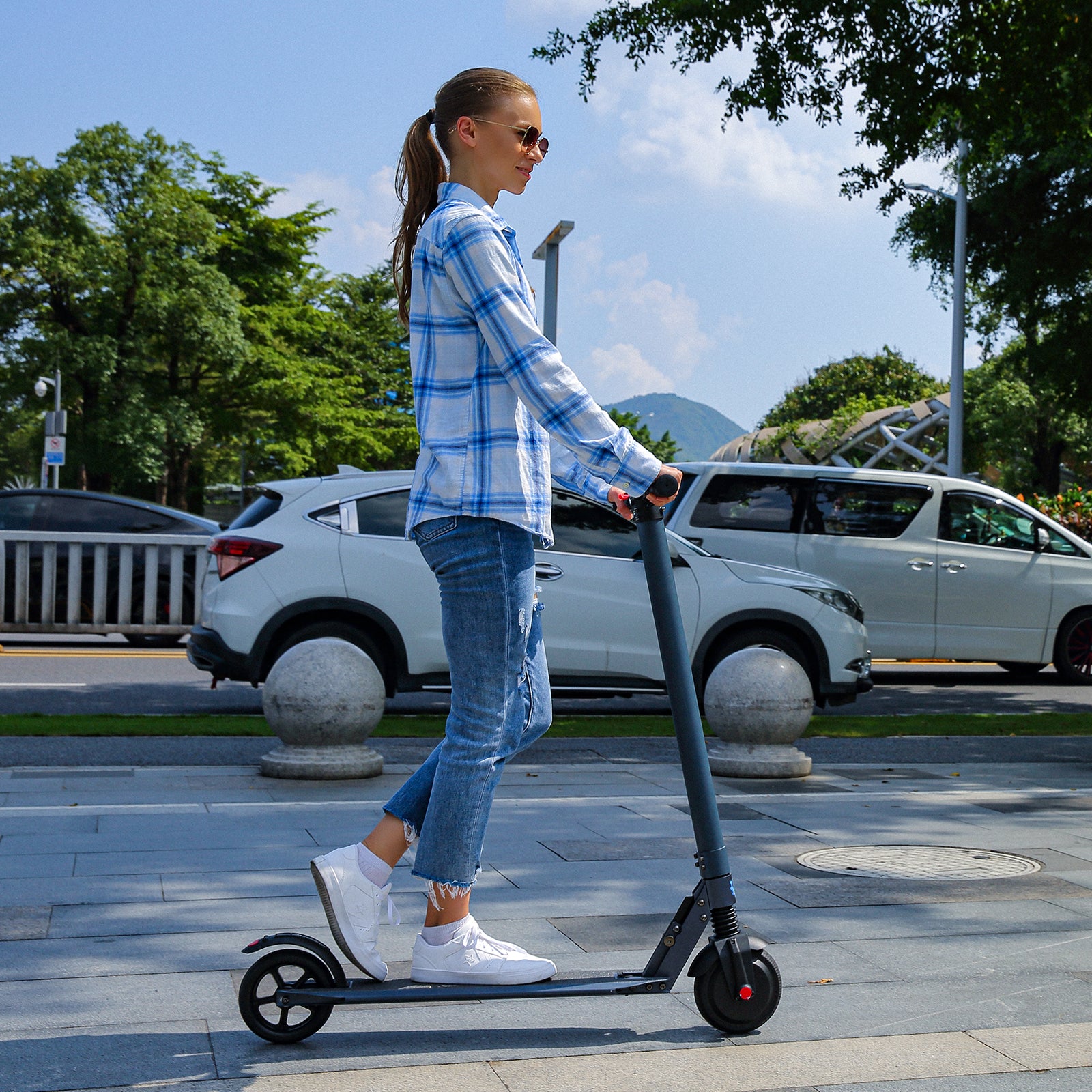 🛴【Foldable & Portable Scooter】E5B is a sleek and light weight teenage electric scooter. Features a one-step folding system, it weighs only 23lbs, can be folded down to 41.7"x15"x12.6" and make it easy to store in a car, also can be conveniently used for going up and down stairs.