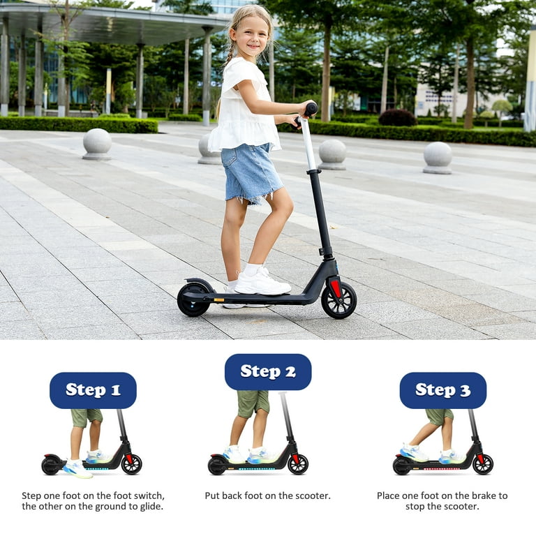 Caroma Kids Electric Scooter, 6+ Boys and Girls Safe Kick Scooter, Adjustable Speed and Handlebar