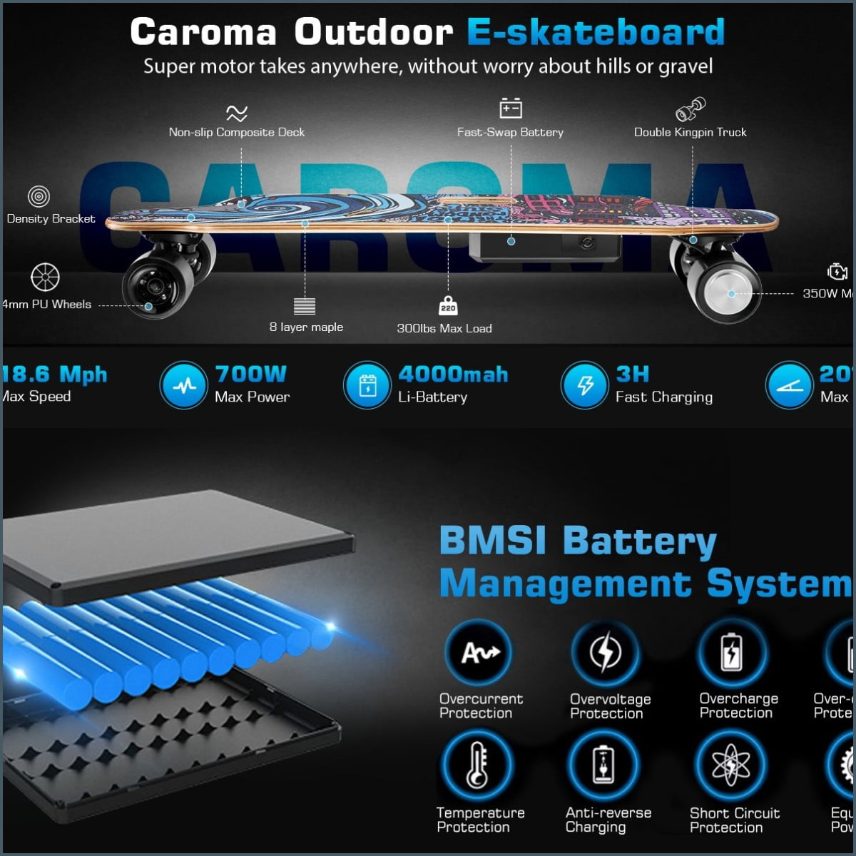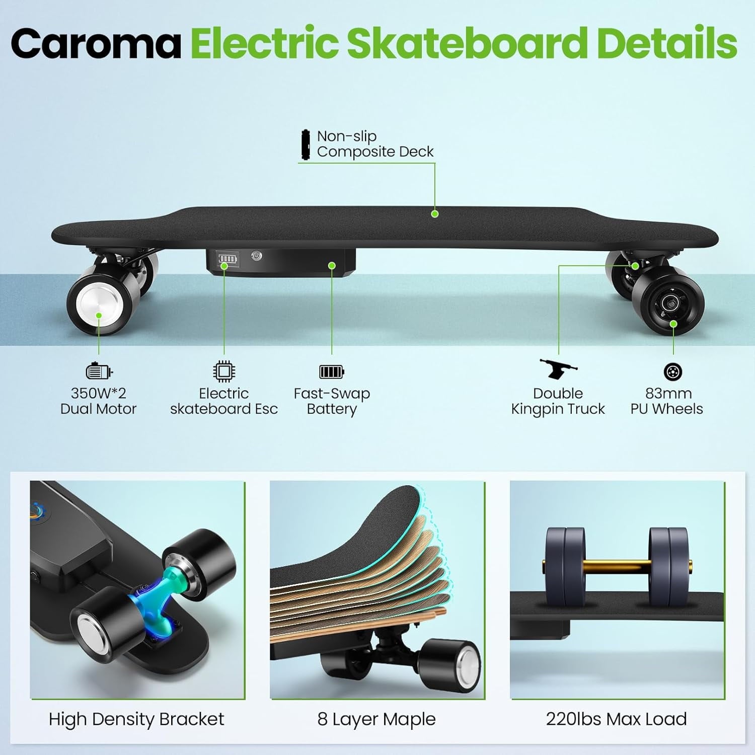 Caroma Electric Skateboards with Remote, 700W Dual Motor, 12 Miles Range for Adults Multicolor