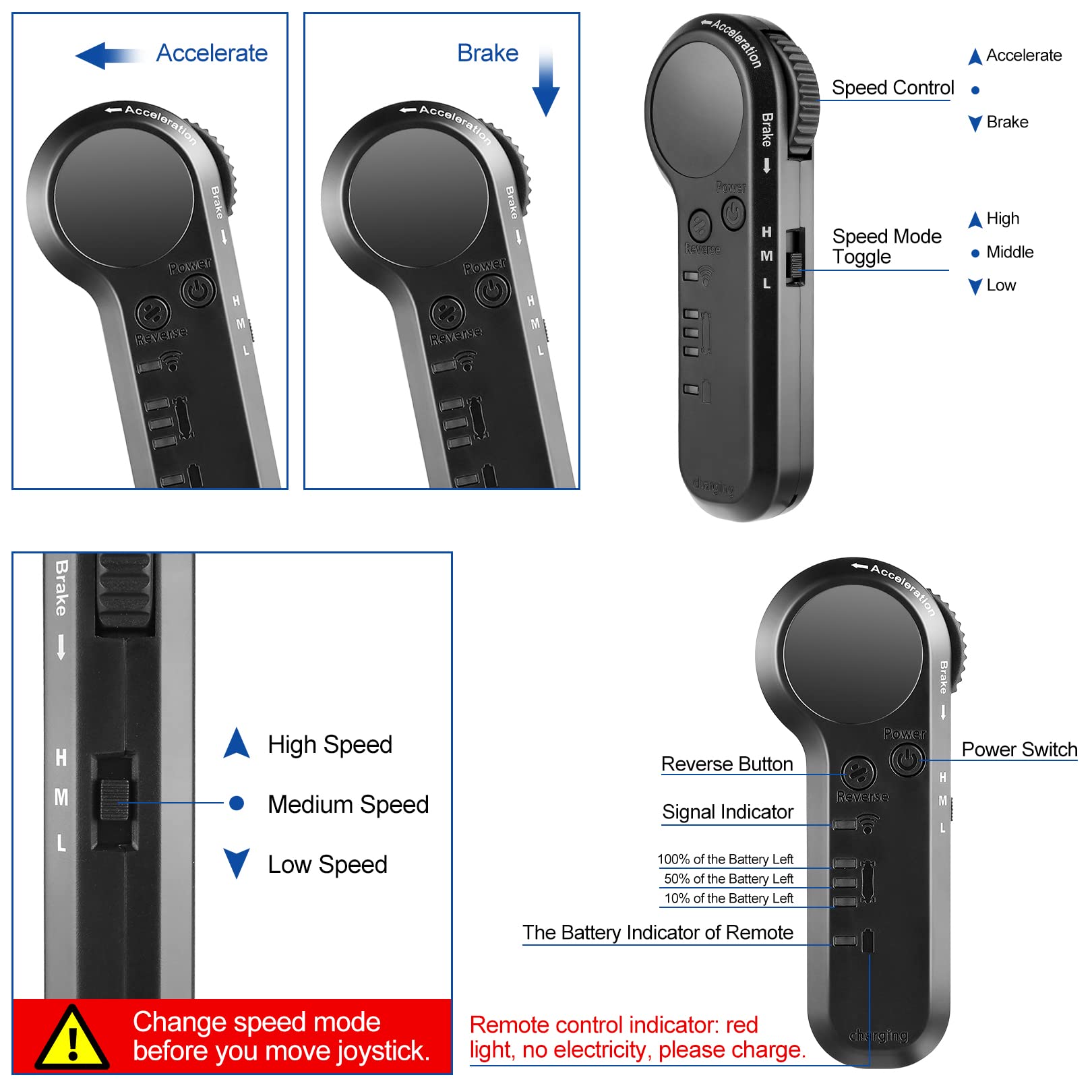 [3 Speed Modes Optional Wireless Remote]: Portable electric skateboards with intelligent wireless remote, switch freely-accelerate, brake, forward and backward, 3 modes and speed (H-M-L) for different needs. The wireless remote control can be quickly and easily paired with the skateboard, so you can start your journey right away.