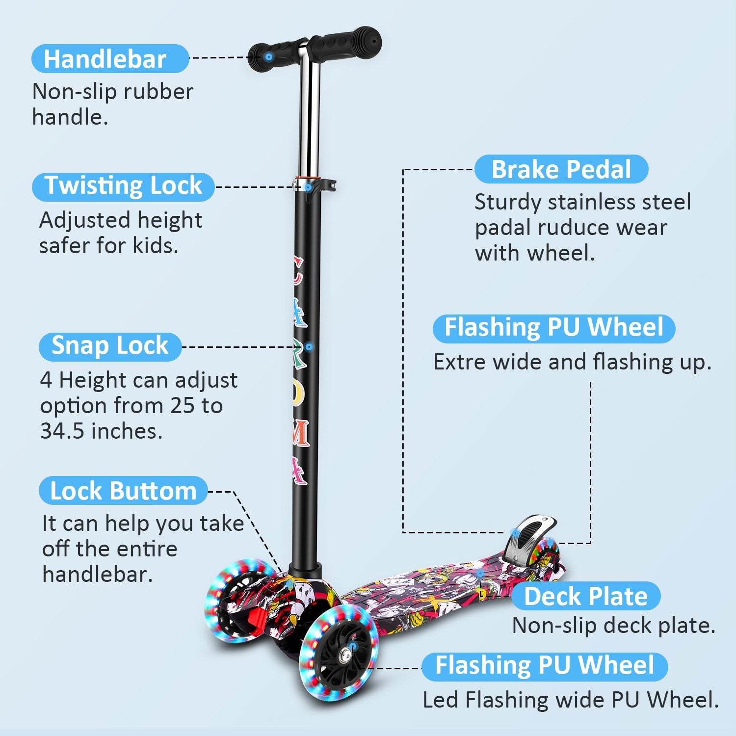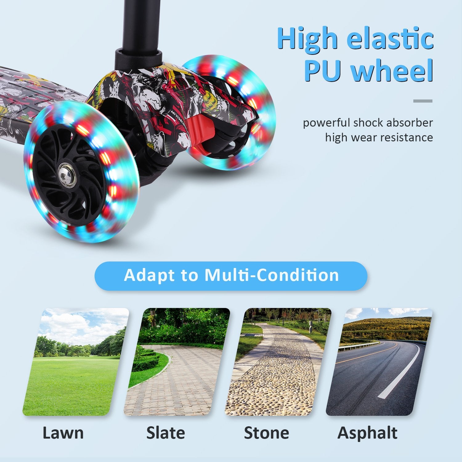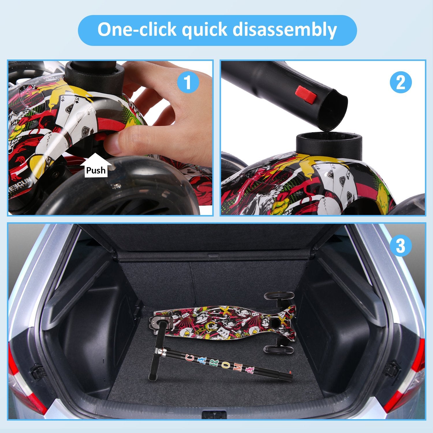 - The light up scooters easy detachable design quickly disassemble or install in 3 seconds. Save space and perfect for quick storage.