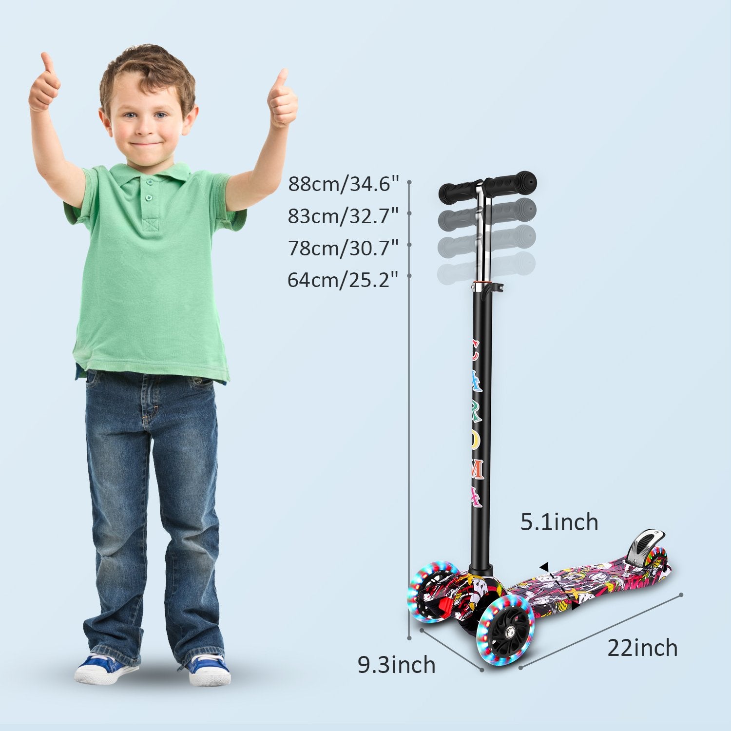 Caroma Kids 4 Levels Adjustable Height Kick Scooter PU Flashing Wheels